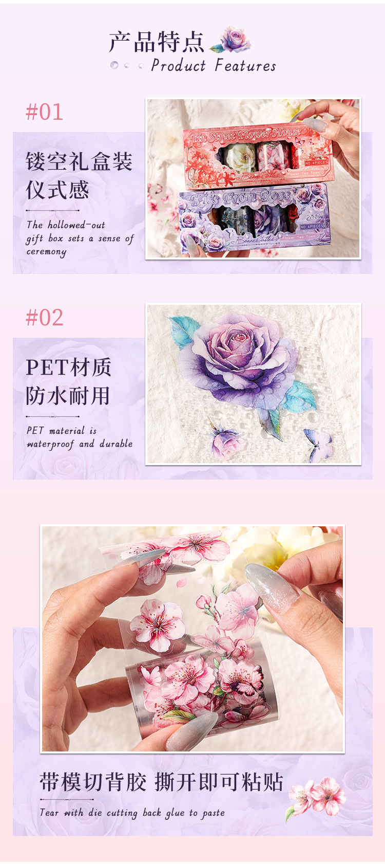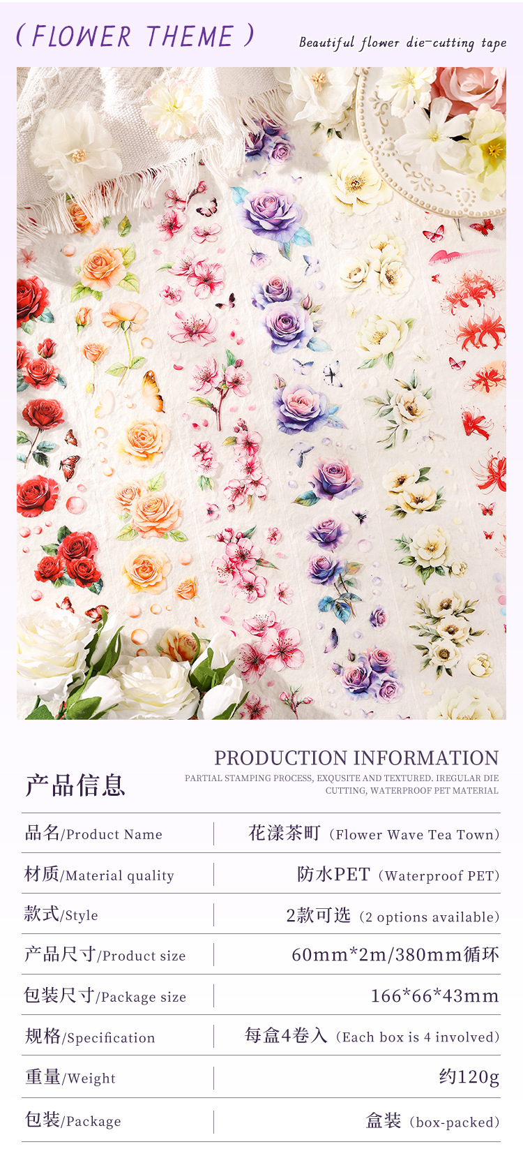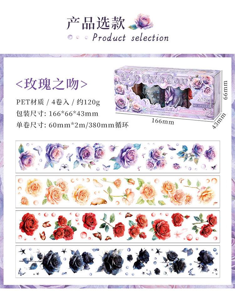 Huayang Chacho Transparente Pet Impermeable Flower Adhesivo Caja de cinta adhesiva Diy Material de cuenta manual Caja de cinta de collage decorativa