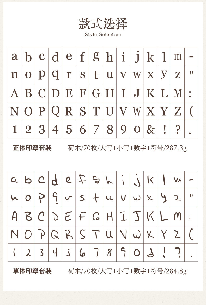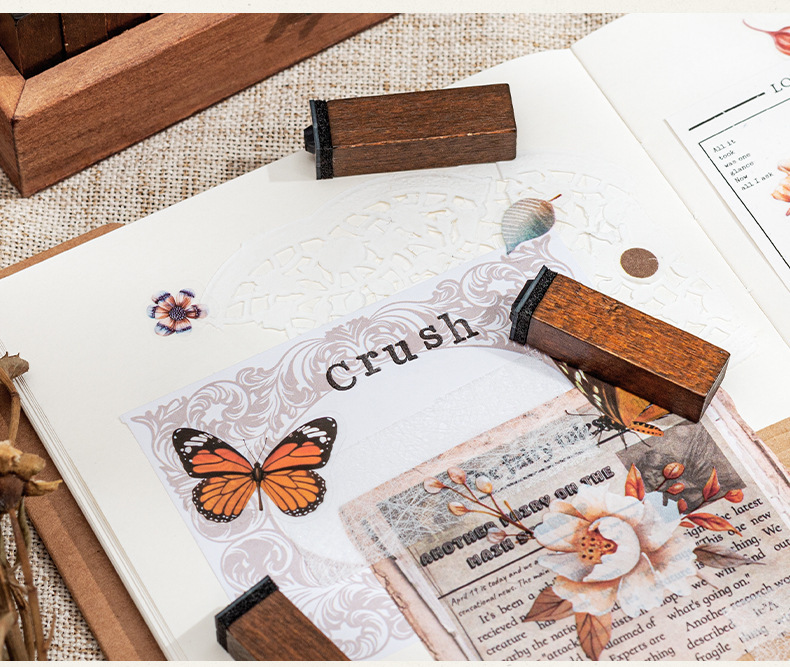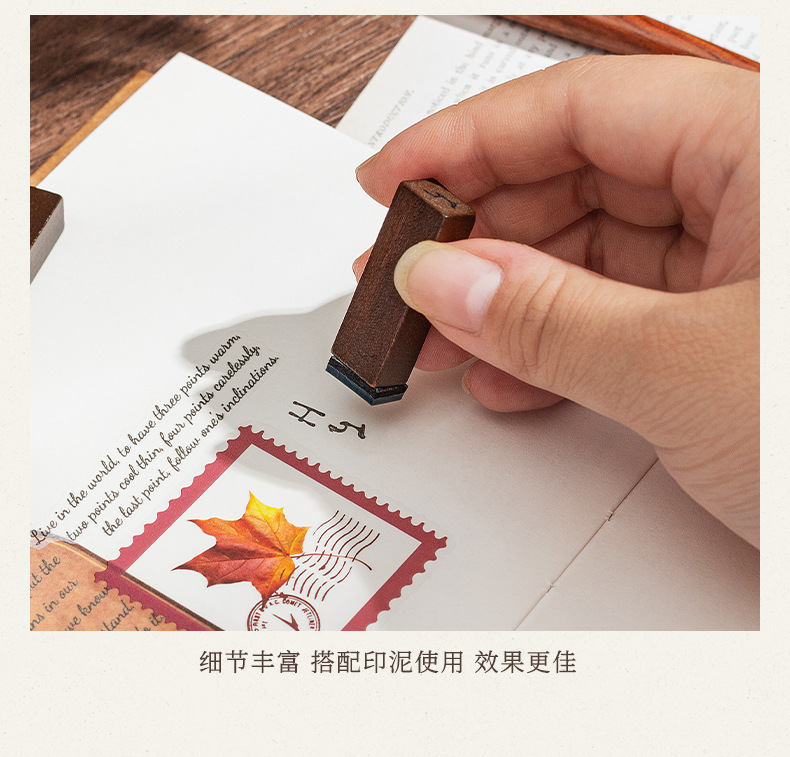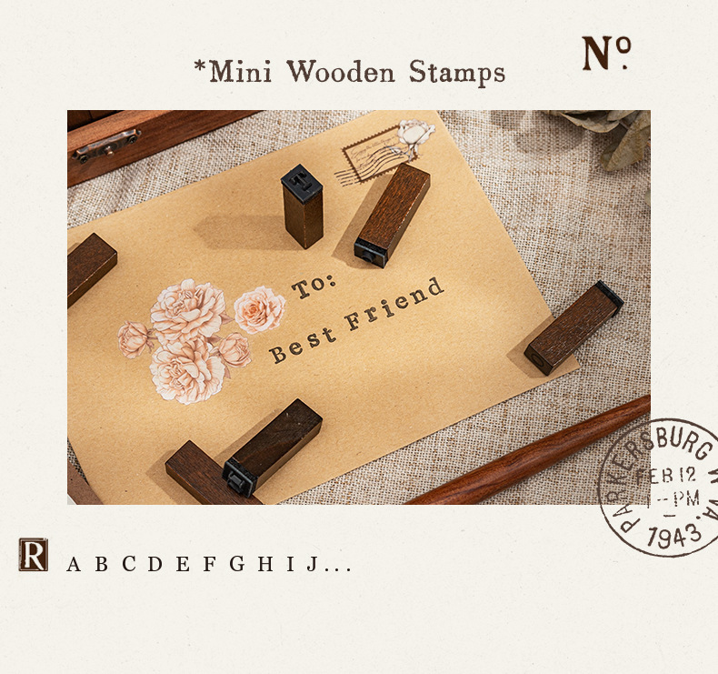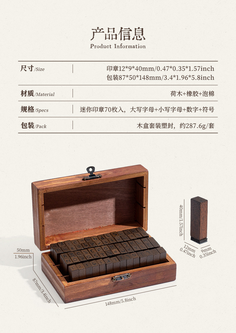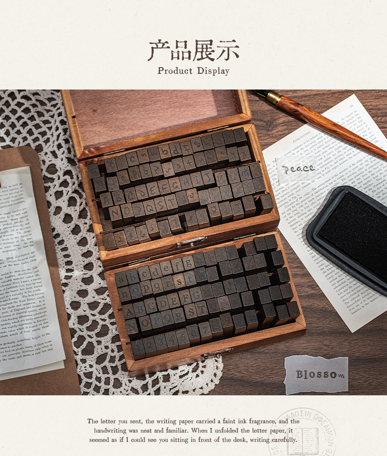 70 retro alfanuméricos caja de madera sello caja caja de letras mayúsculas y minúsculas cuerpo de hierba verdadero sello de libro de mano transfronterizo