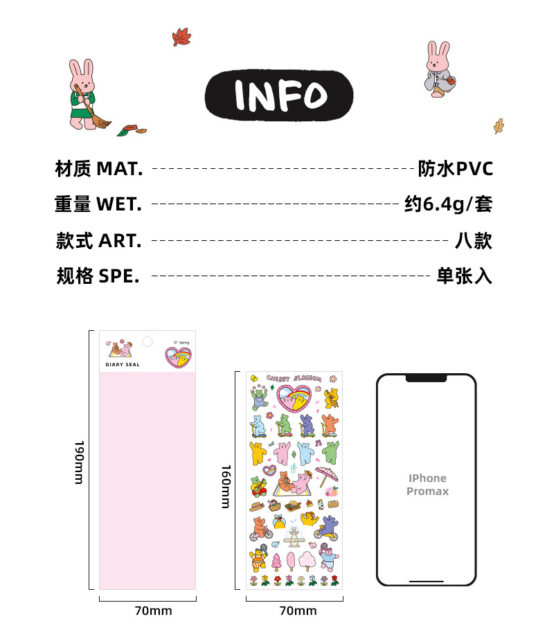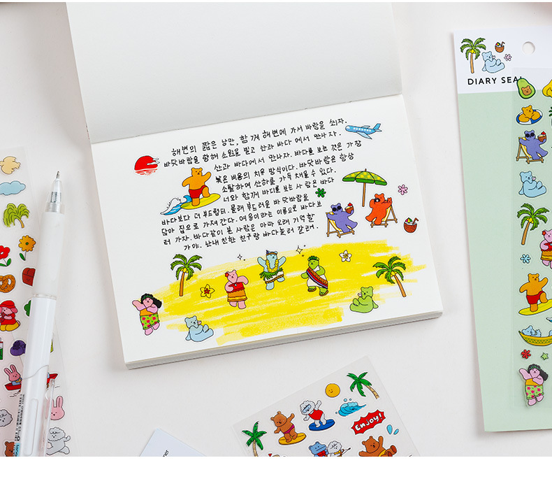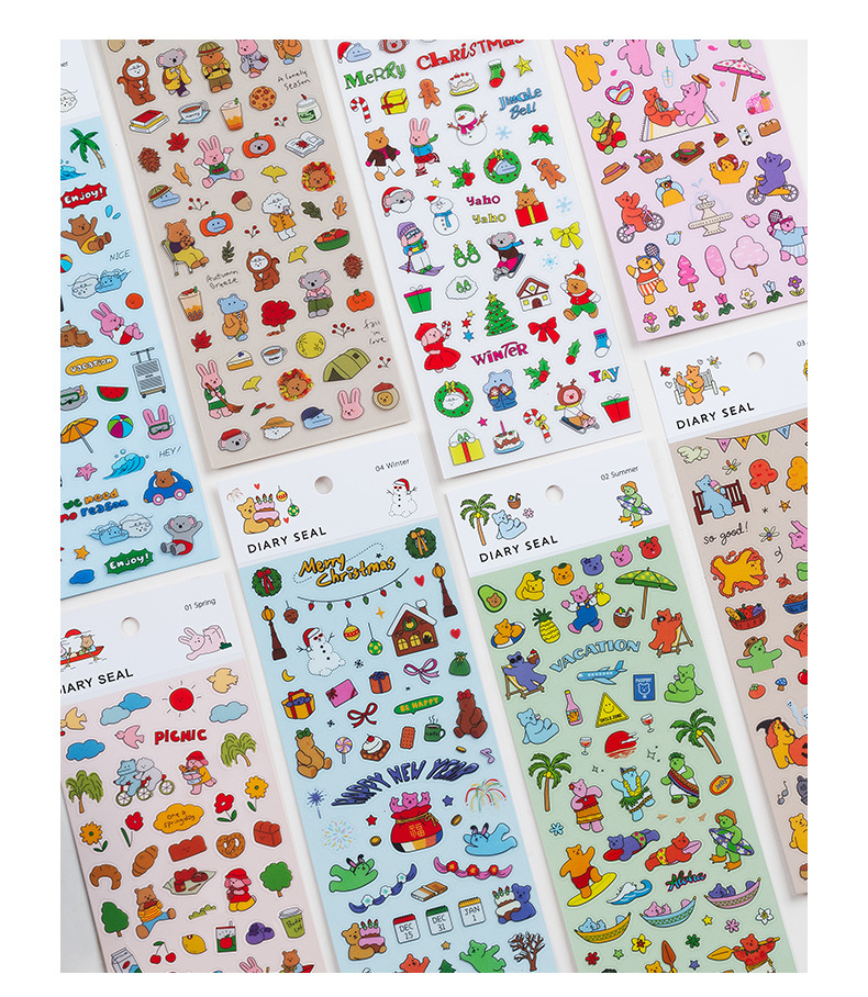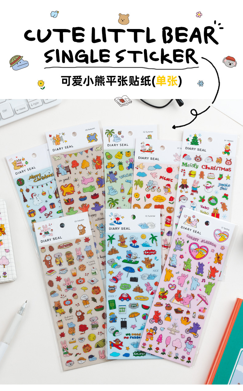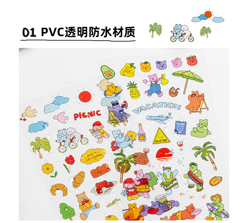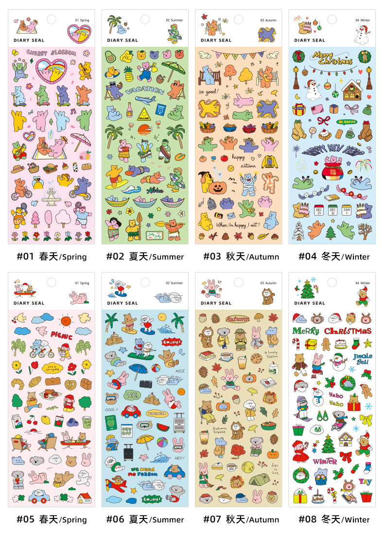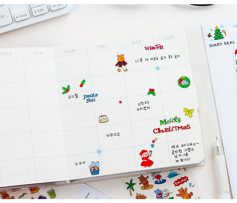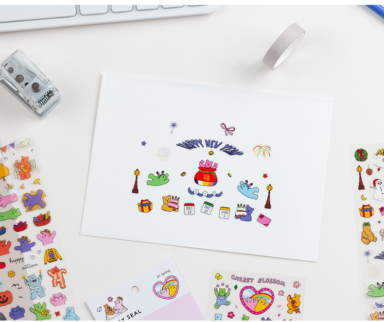 Oso feliz serie impermeable PVC Navidad pegatinas decorativas ins estilo lindo material de dibujos animados animal diario papelería pegatinas