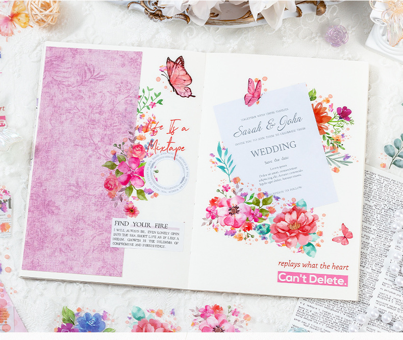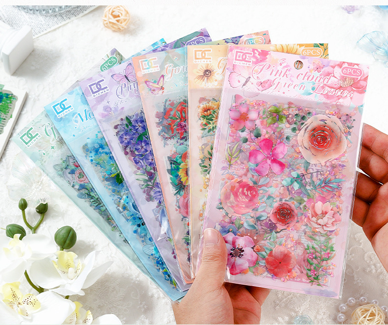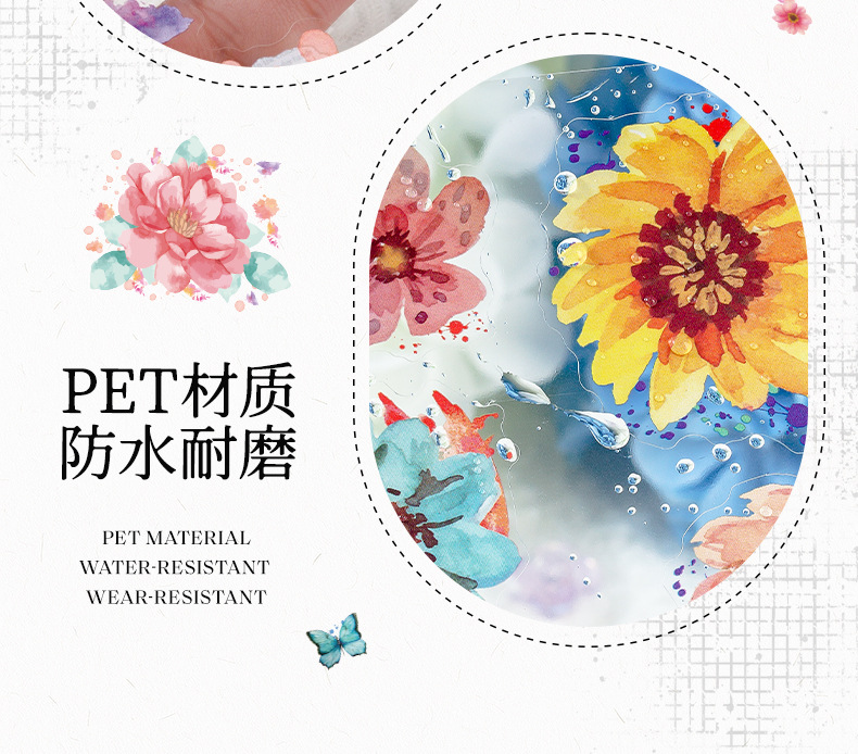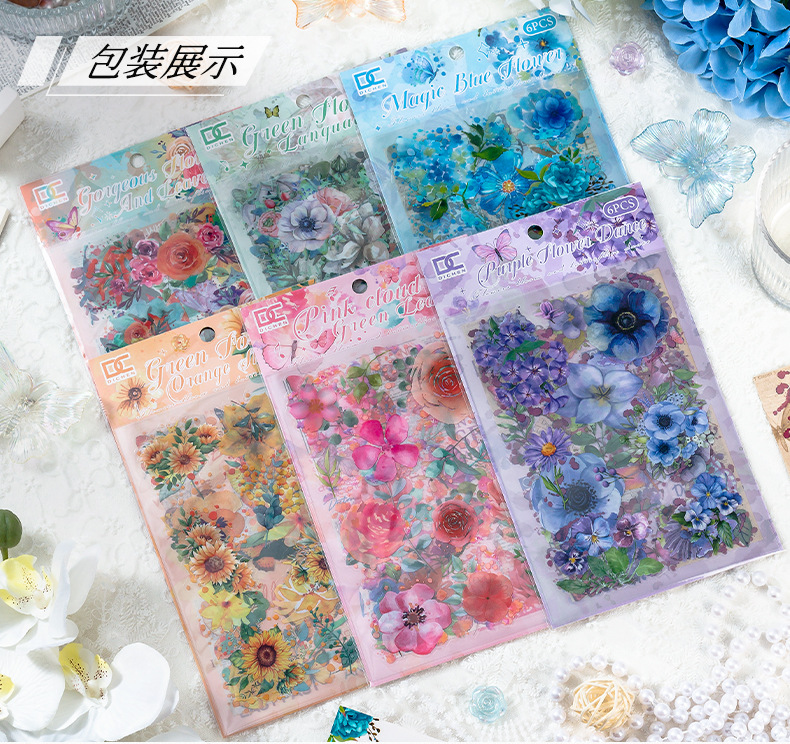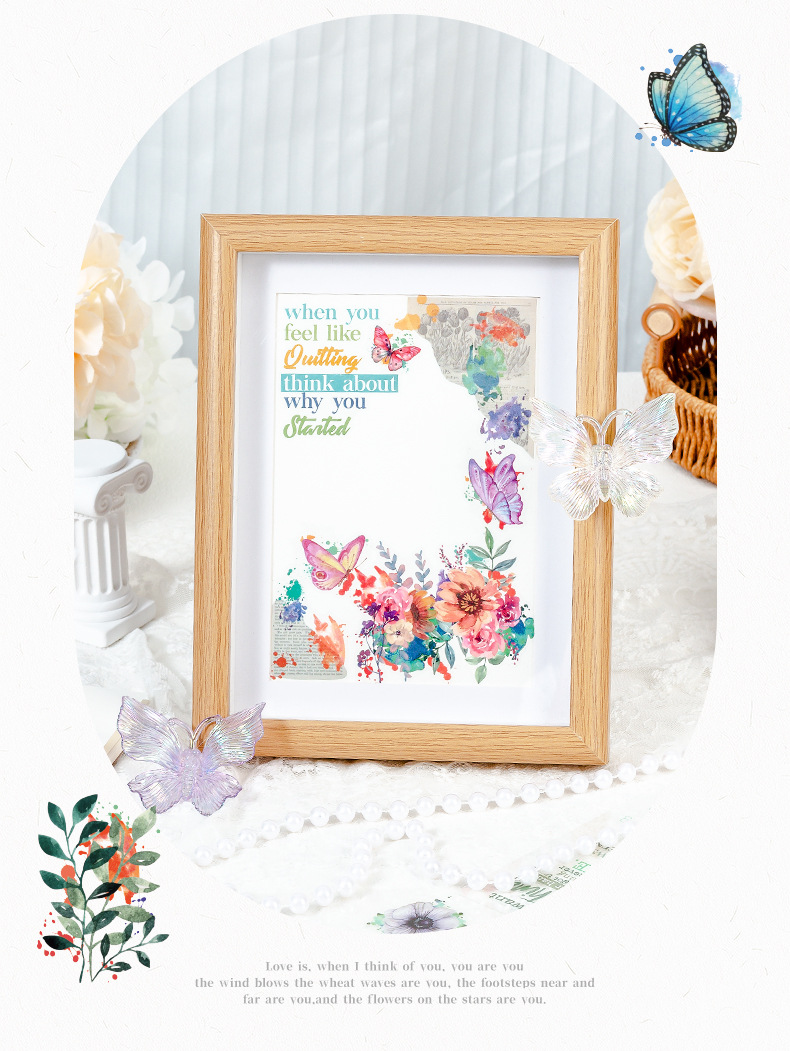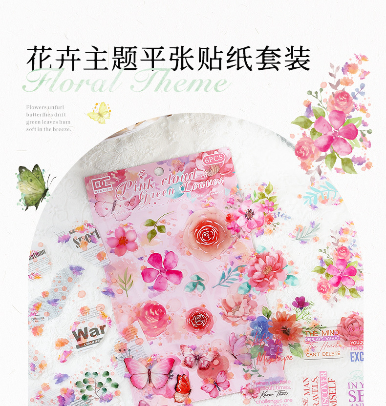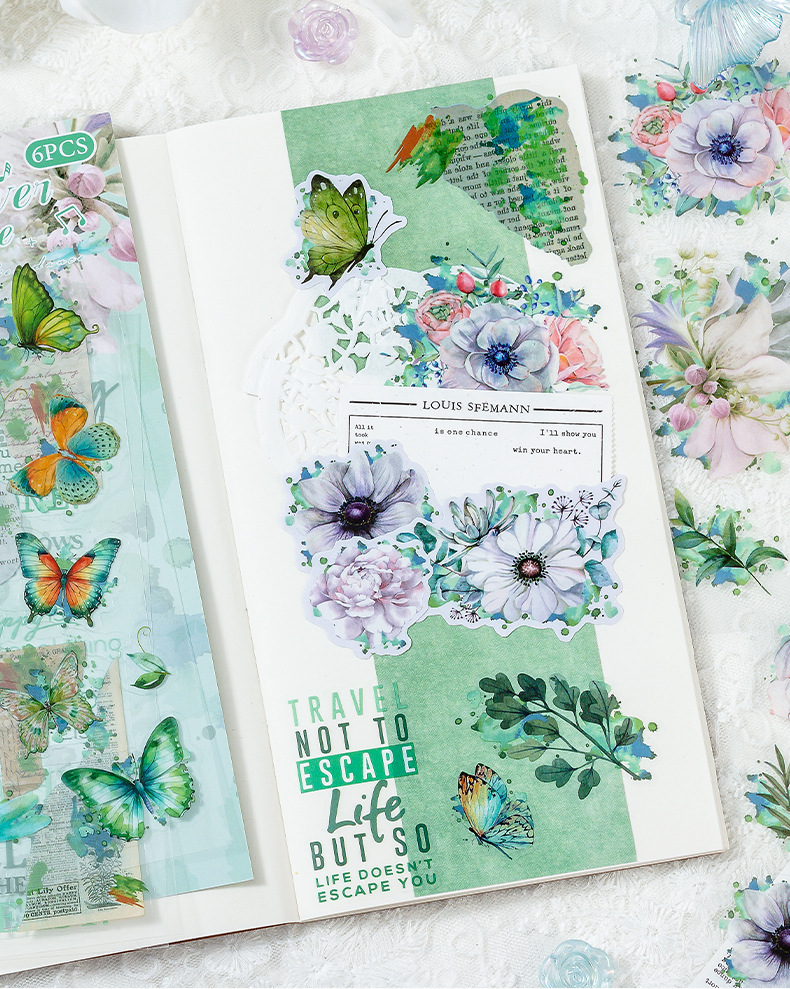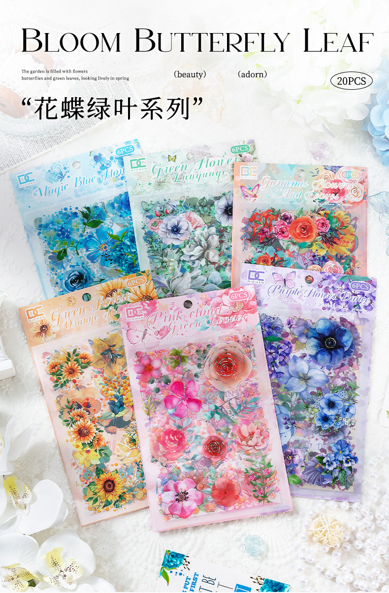 Flores de mariposa hoja verde transparente pegatinas impermeables DIY pegatinas de diario pegatinas florales retro pegatinas de mariposa