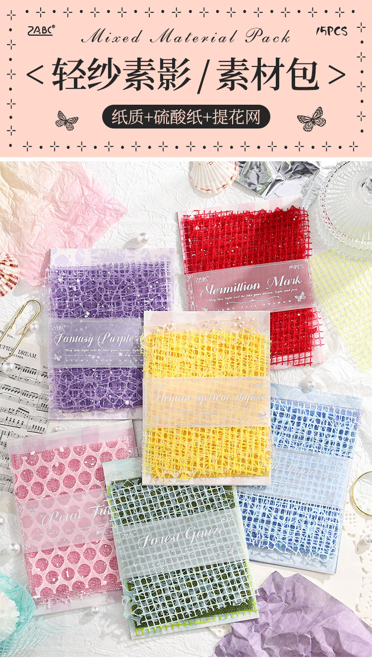 Paquete de materiales de collage de hilo ligero de malla de sombreado simple DIY material de decoración de malla jacquard hecha a mano sin adhesión