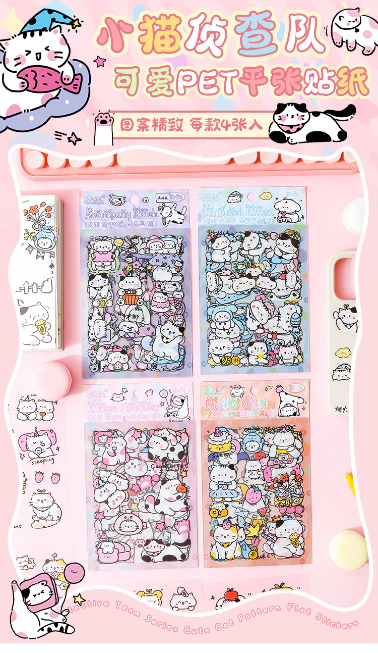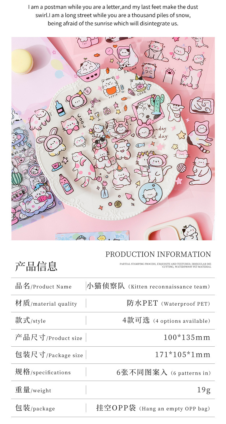 Cat Scout Team pegatinas impermeables transparentes para mascotas diy pegatinas de diario de dibujos animados transfronterizos pegatinas de contabilidad de gato