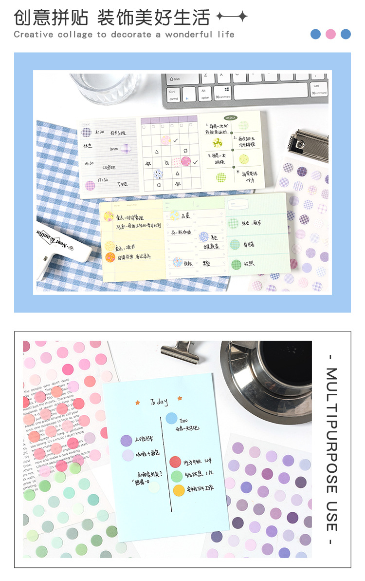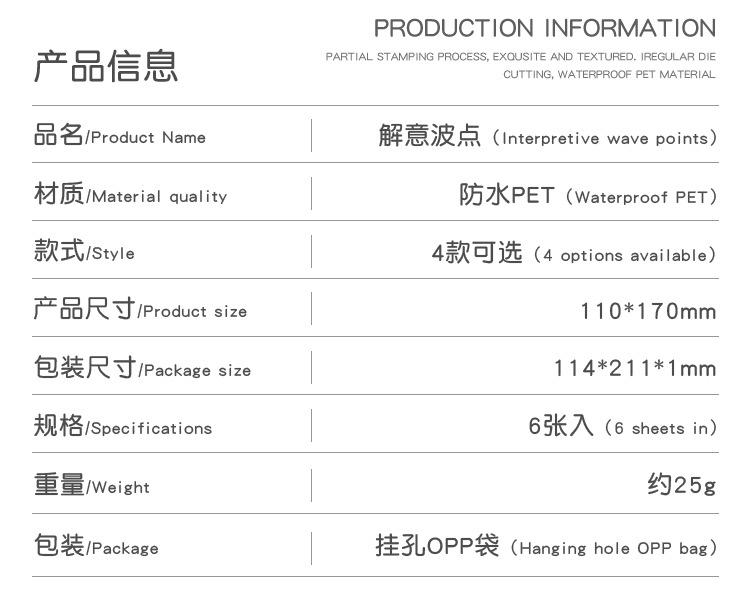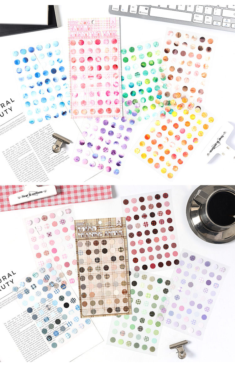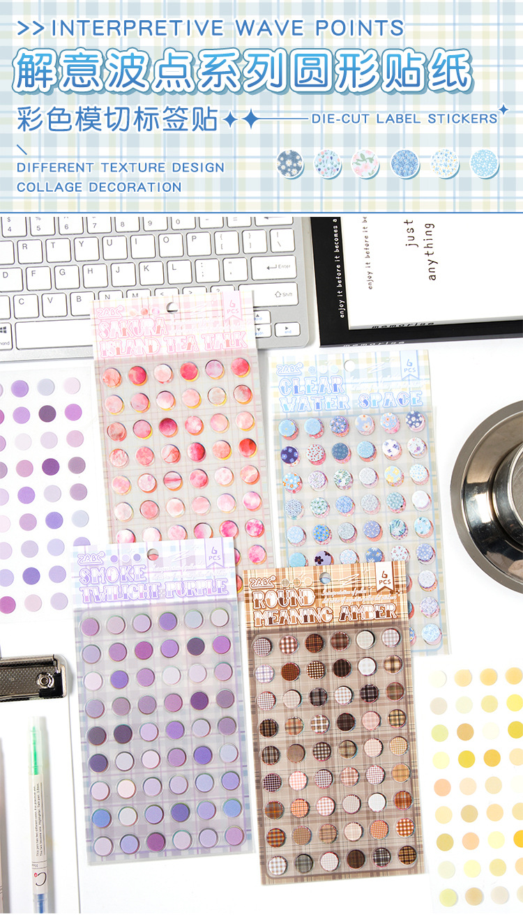 Serie de puntos de onda de interpretación en pegatinas de etiquetas de papel lindas y creativas de corte de matriz de mascota plana de material de contabilidad de mano pegatinas