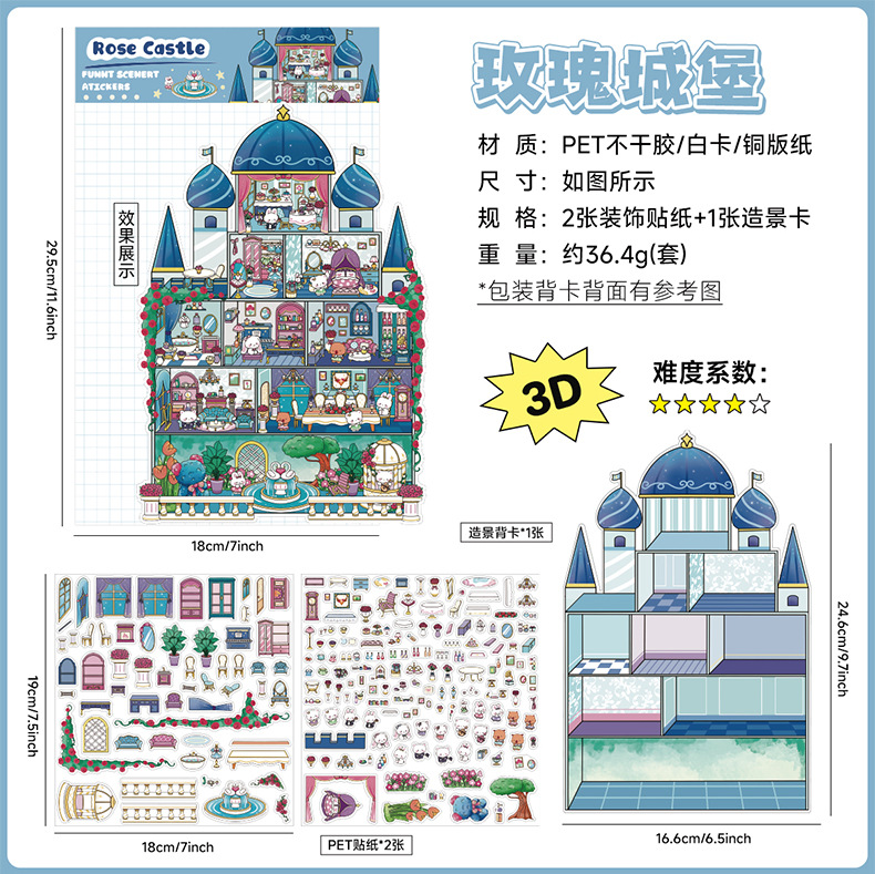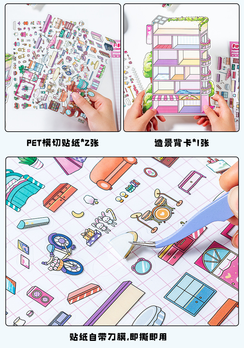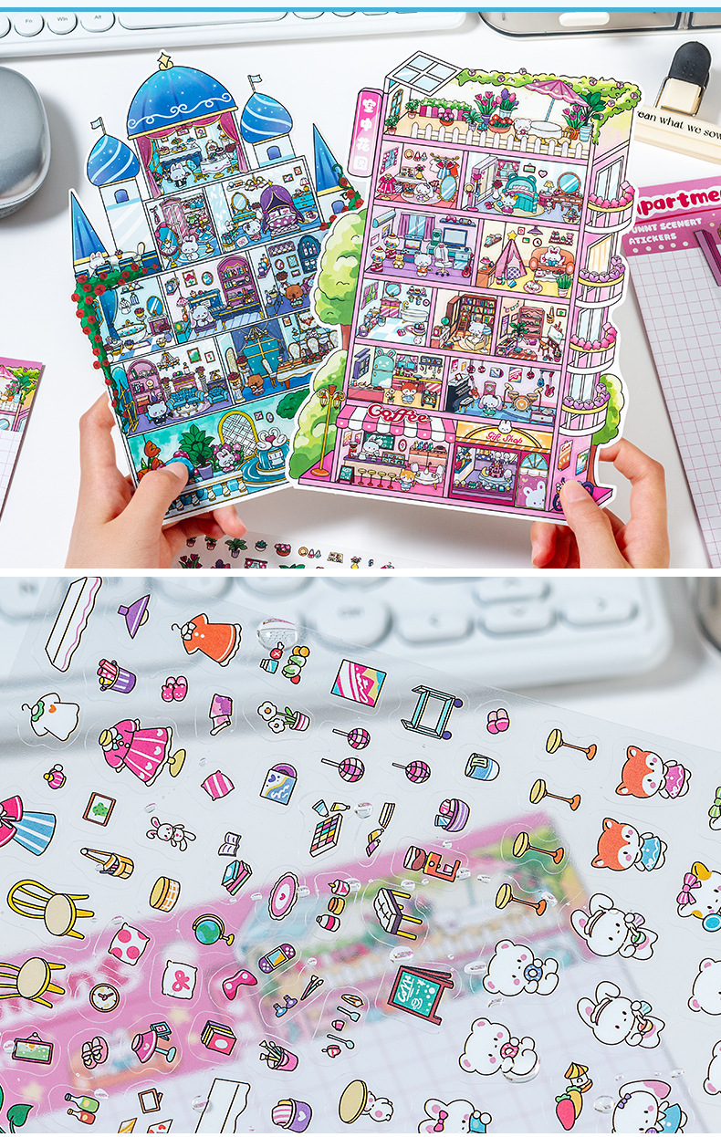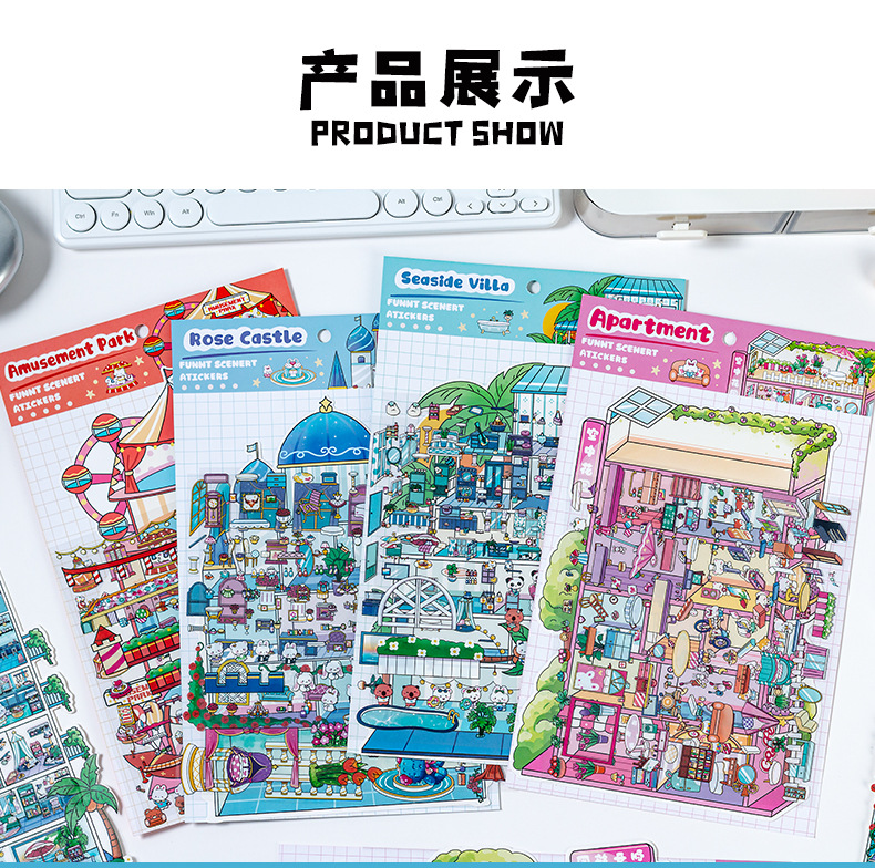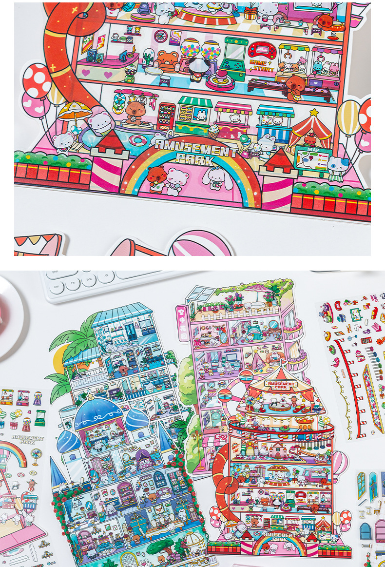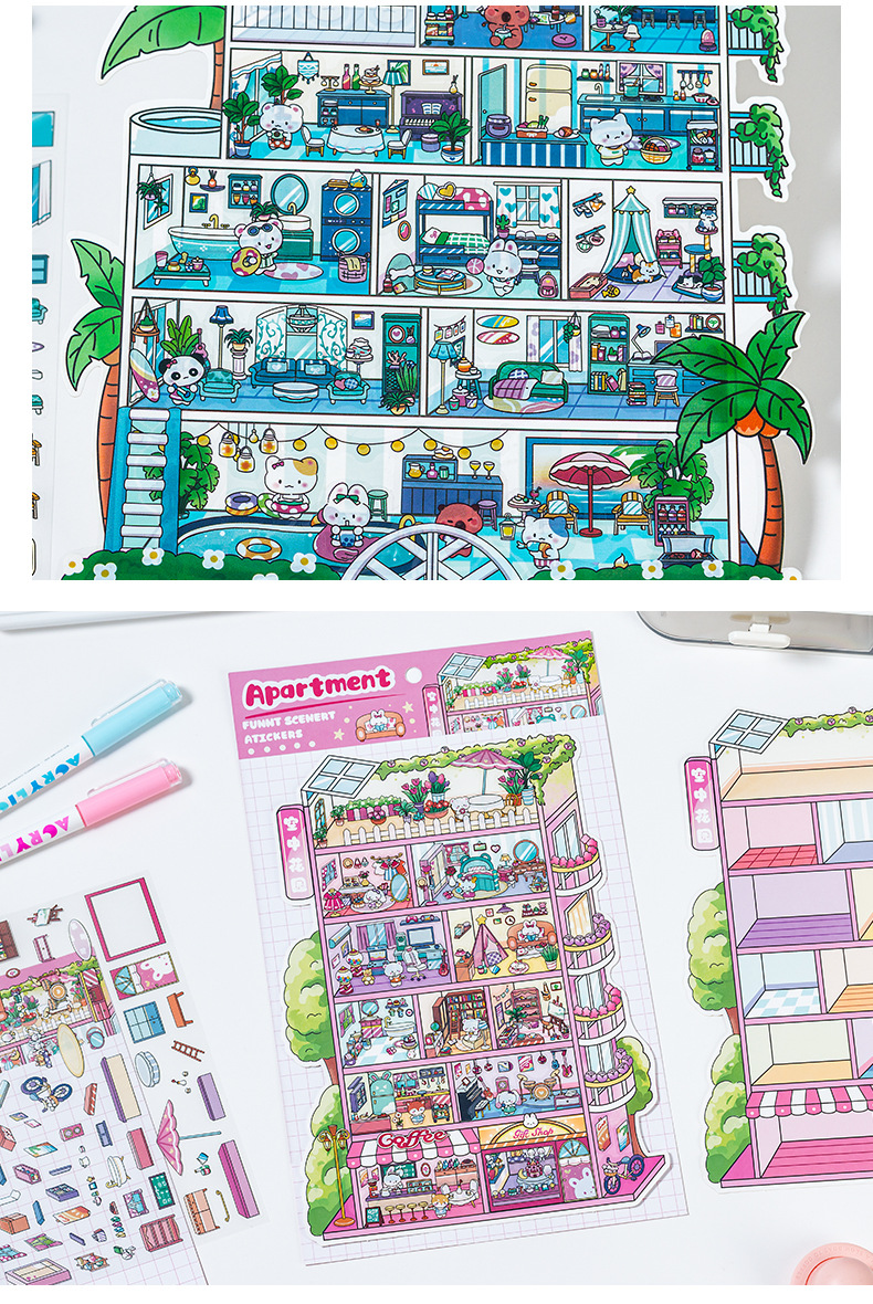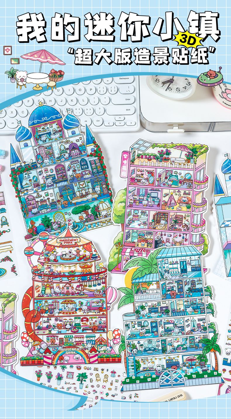 My Mini Town Big 3D 3D Stereo Sticker Pegatinas de libro de manos de bricolaje Pegatinas de escena interior de rompecabezas para niños