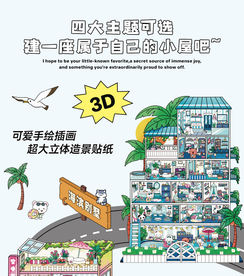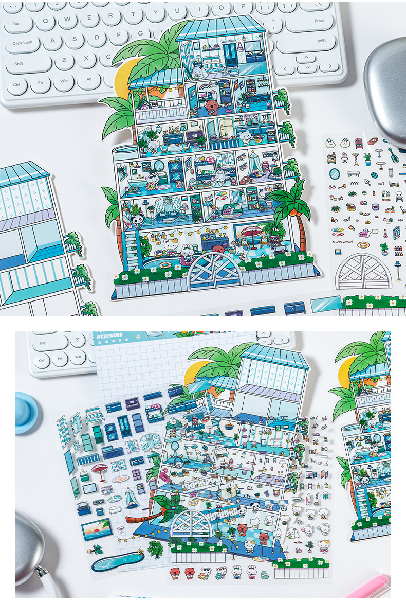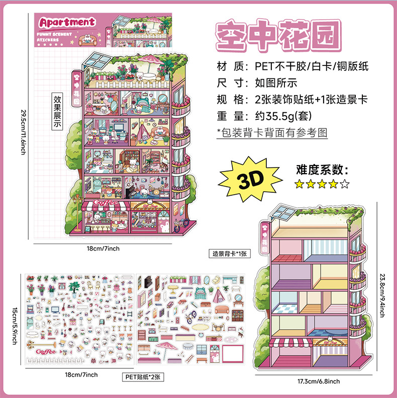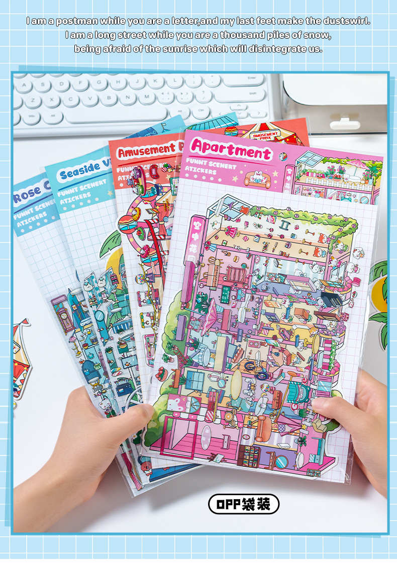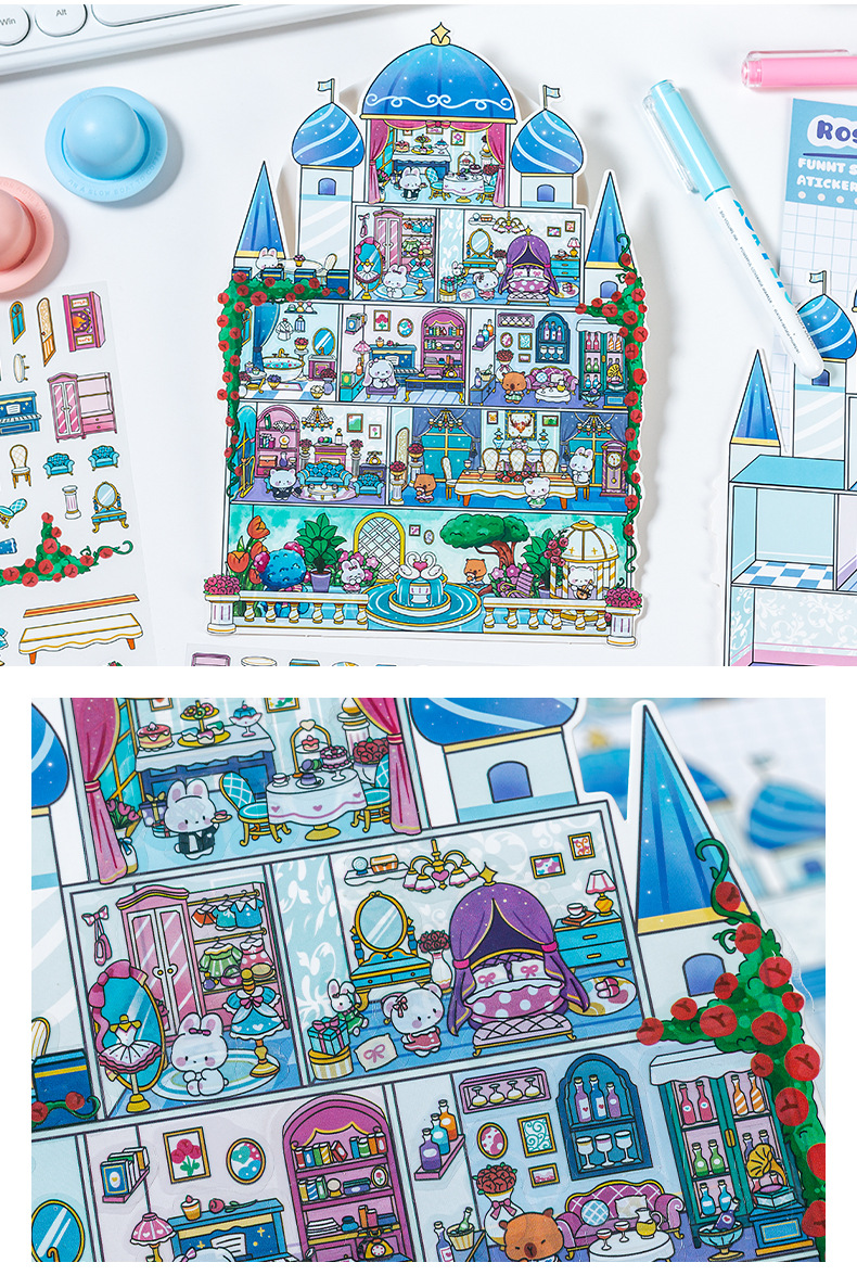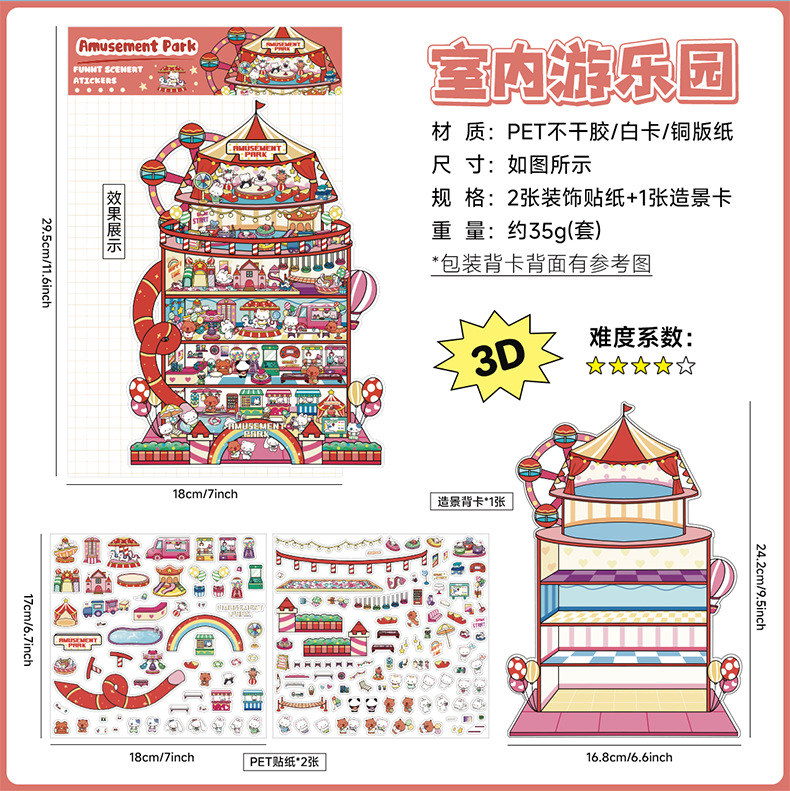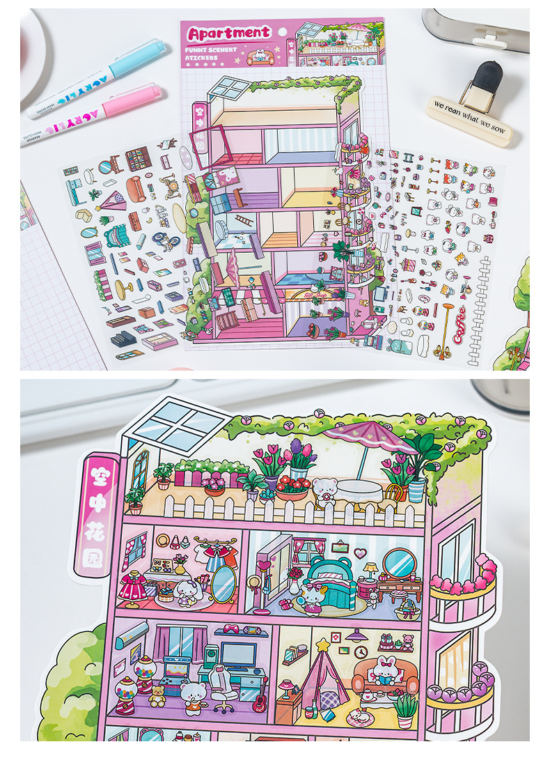 My Mini Town Big 3D 3D Stereo Sticker Pegatinas de libro de manos de bricolaje Pegatinas de escena interior de rompecabezas para niños