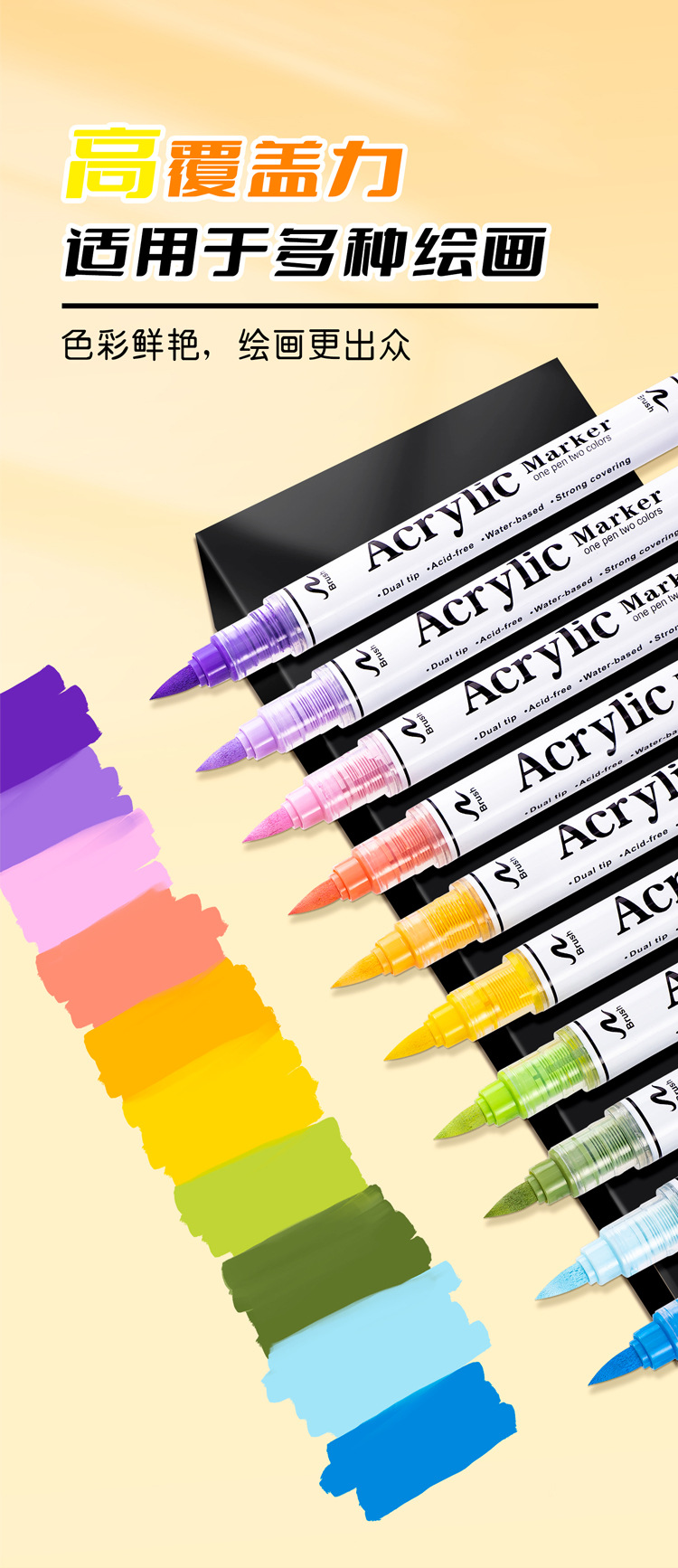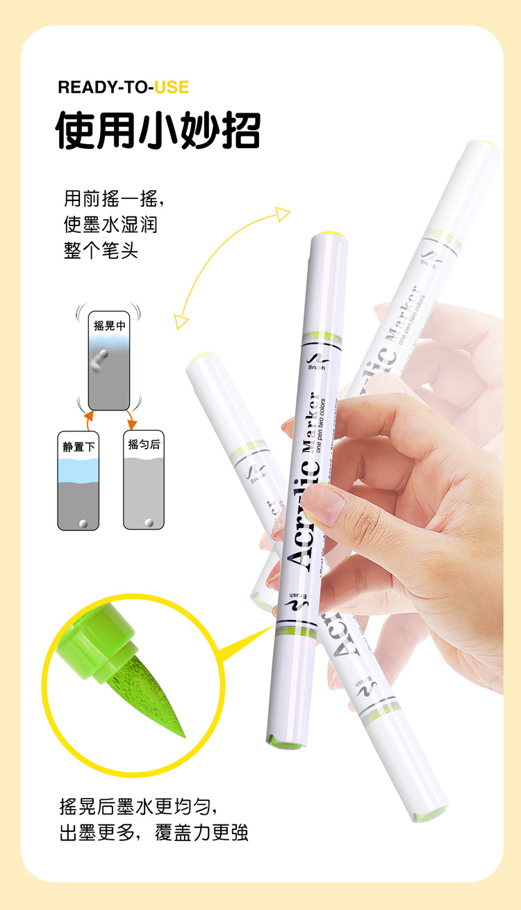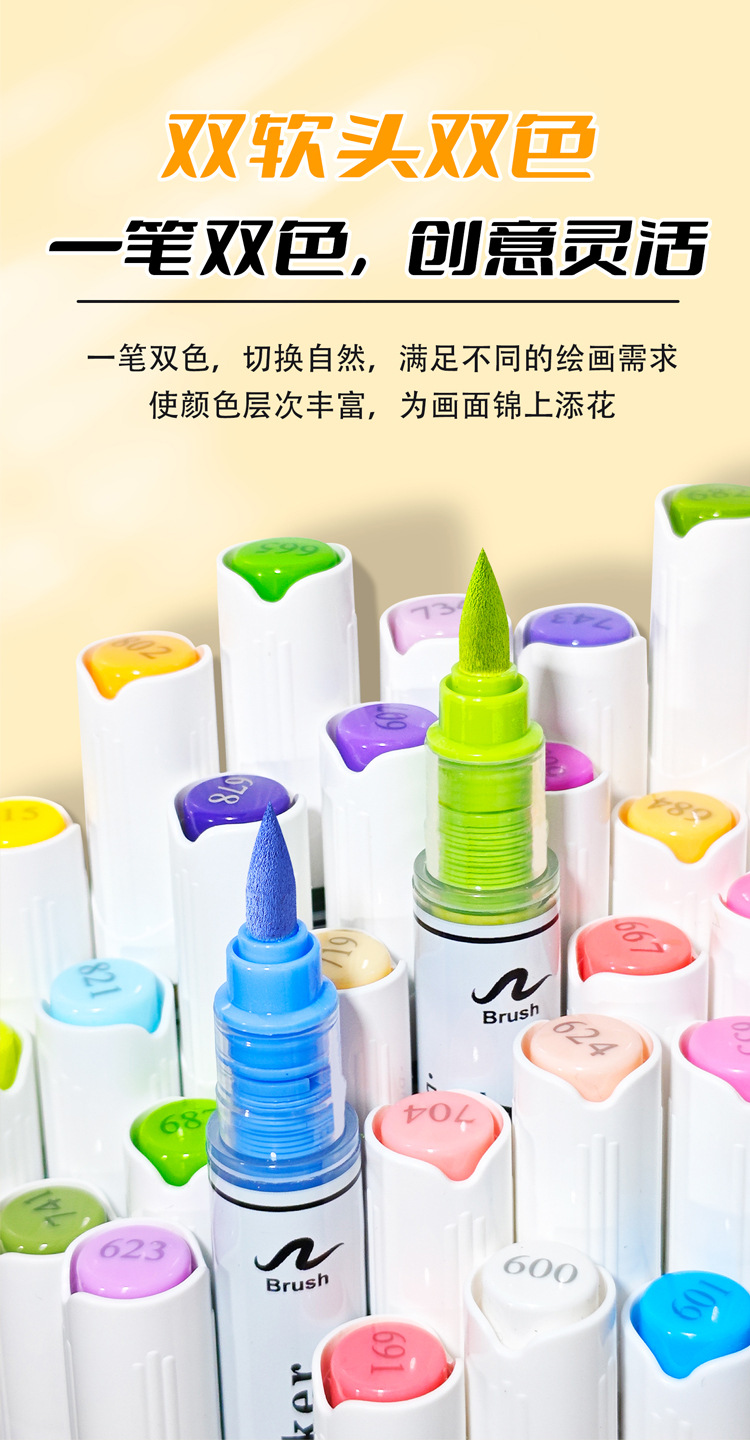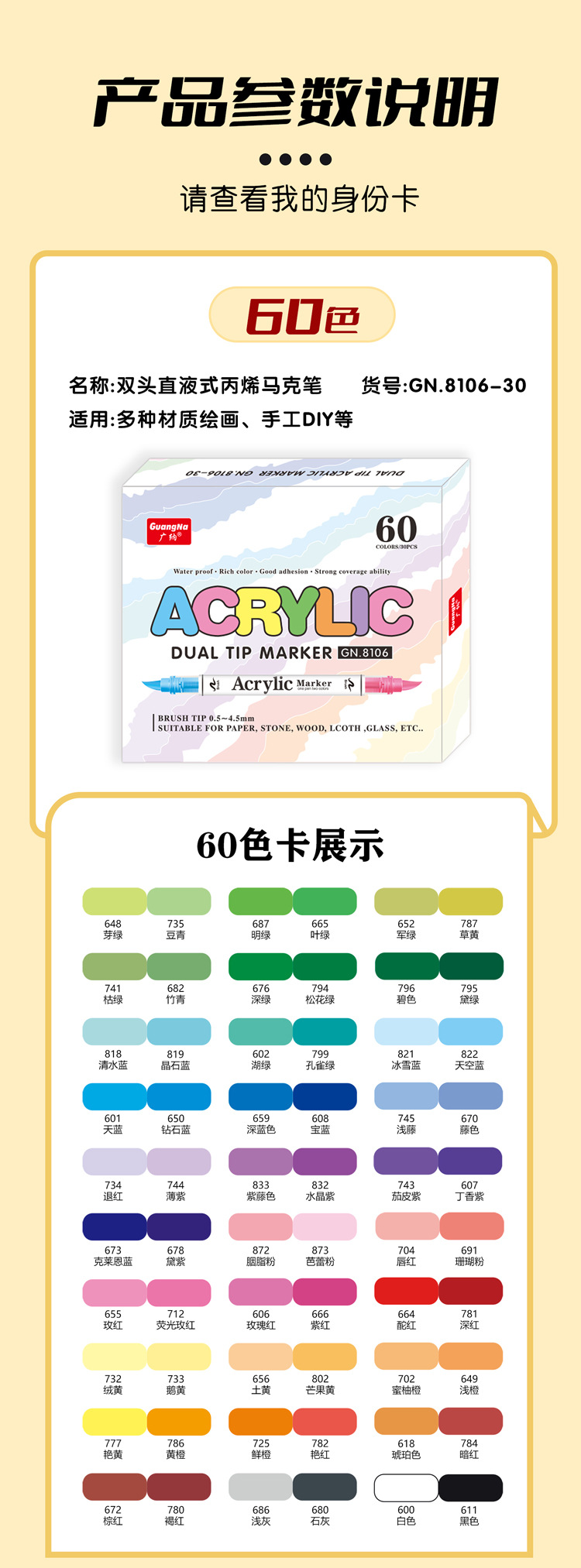 Guangna 8106 doble cabeza suave de doble color líquido directo acrílico marcador de papel opaco 168 color se puede plegar pincel de arte de color