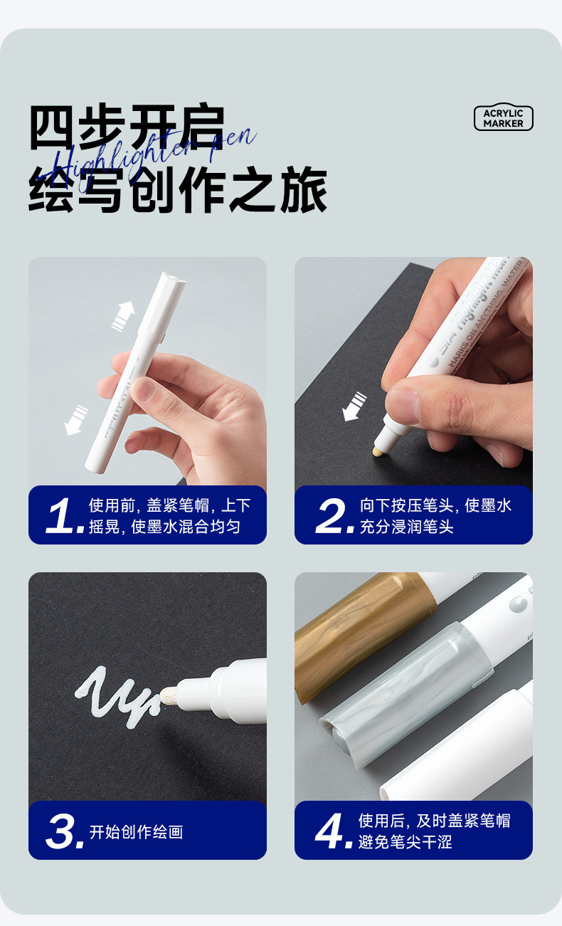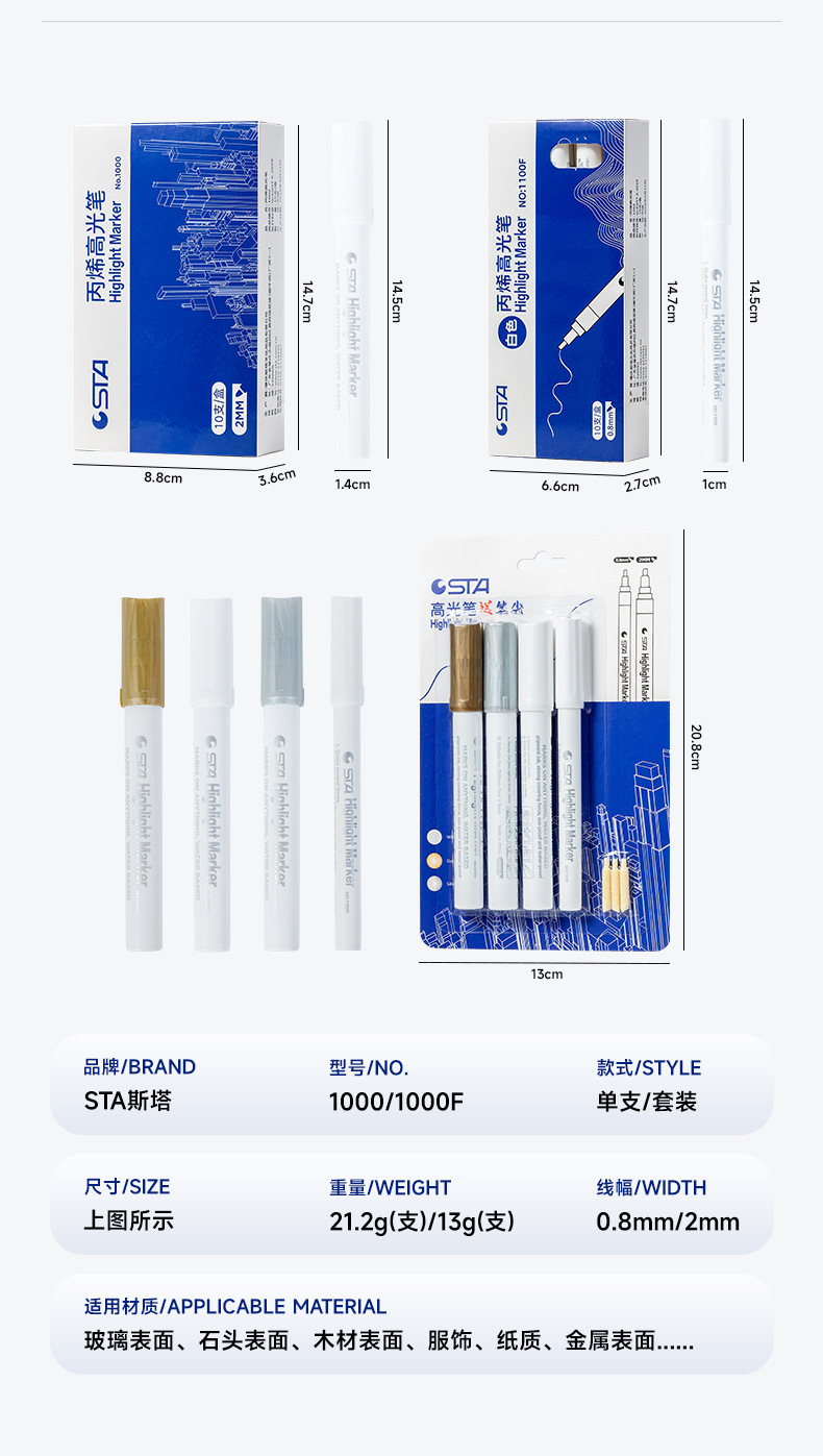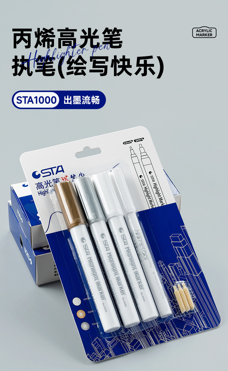 STASTA1000N acrílico de alto brillo agua resistente al agua pluma de pintura de color plegable para niños graffiti pluma de pintura
