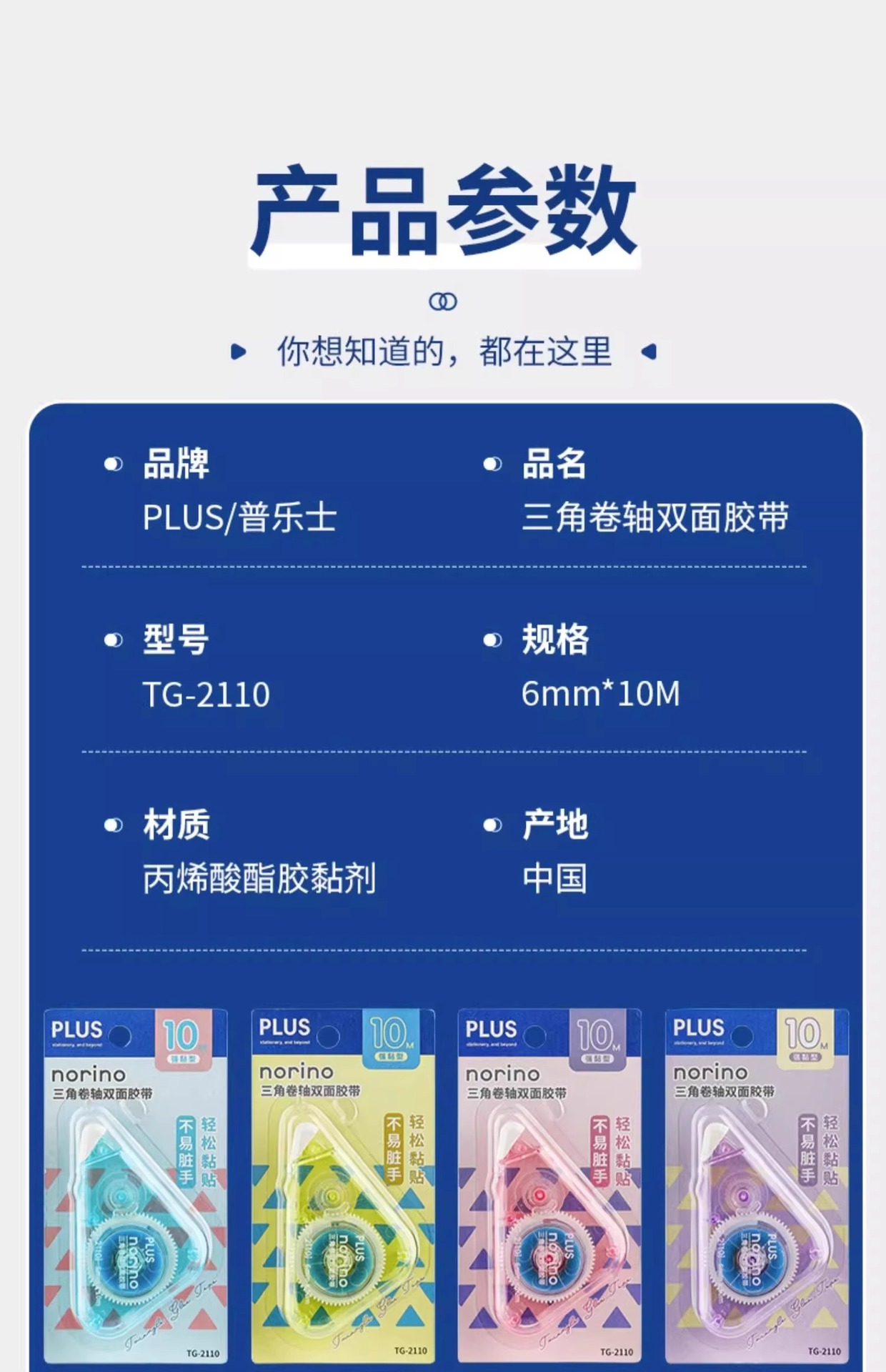 Nuevo producto PLUS Triangle Roll Double Face Norino 10m gran capacidad manualizada cinta de punto
