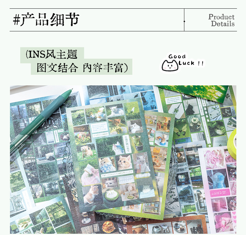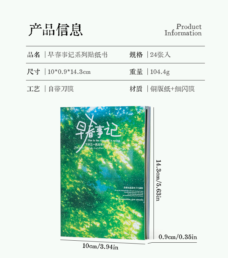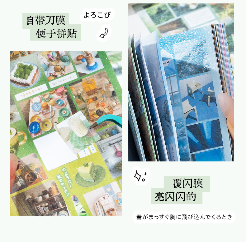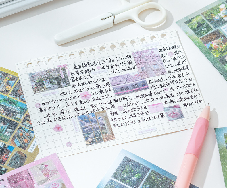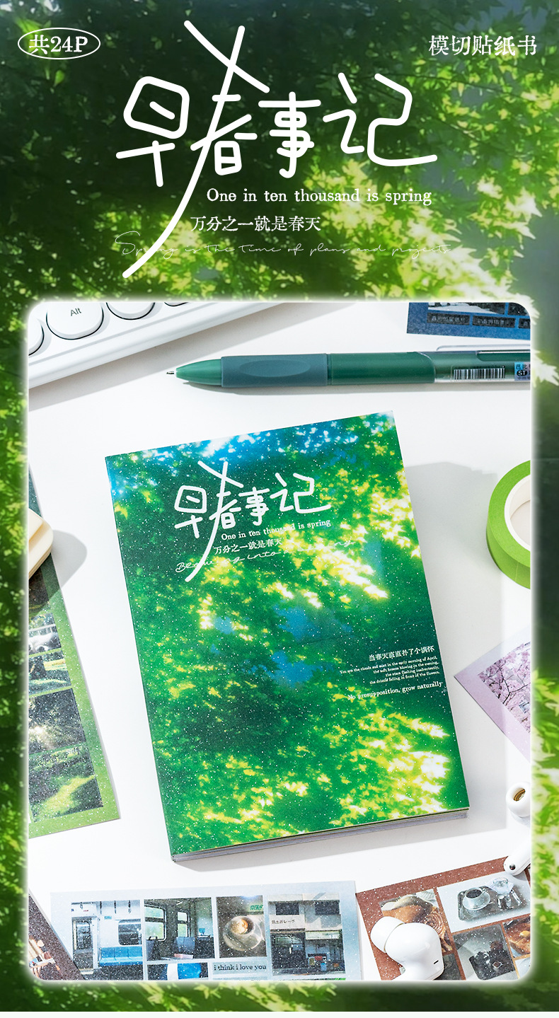 Historia de principios de la primavera Libro de pegatinas fresco pequeño japonés Libro rojo pequeño con el mismo párrafo Etiqueta engomada de película de corte de viento de ins Libro de material hecho a mano de bricolaje
