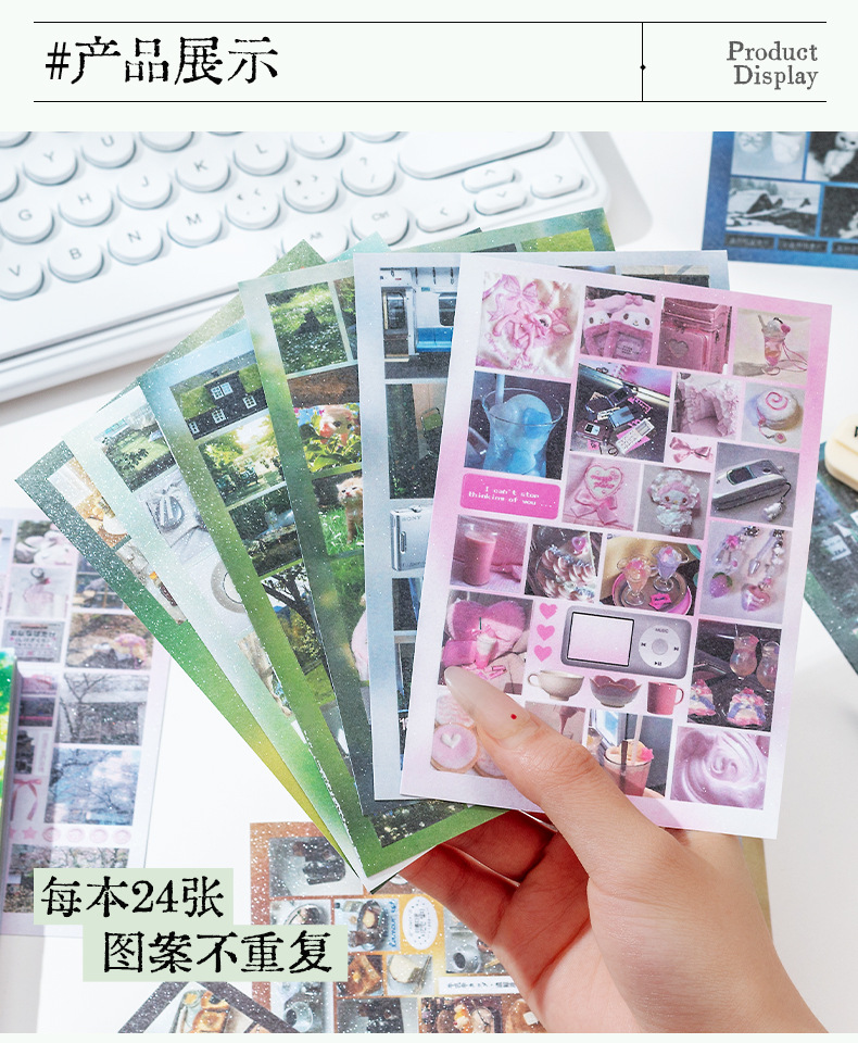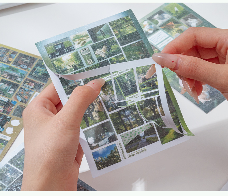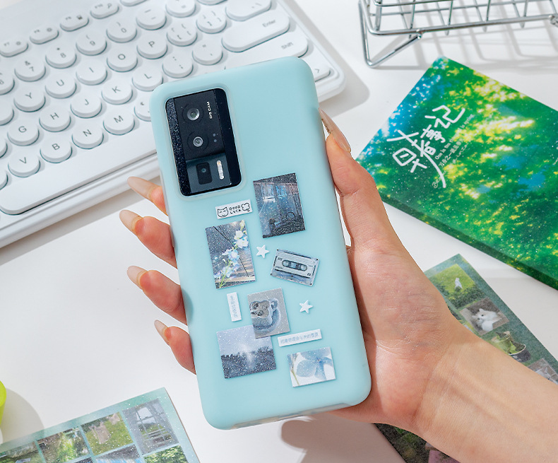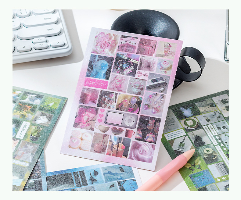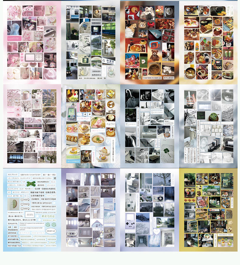 Historia de principios de la primavera Libro de pegatinas fresco pequeño japonés Libro rojo pequeño con el mismo párrafo Etiqueta engomada de película de corte de viento de ins Libro de material hecho a mano de bricolaje