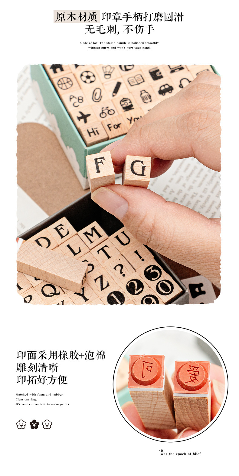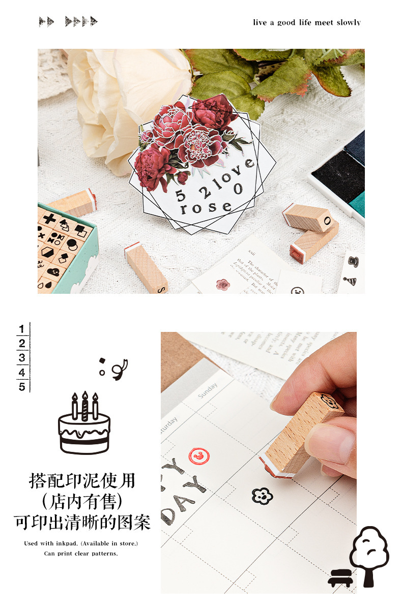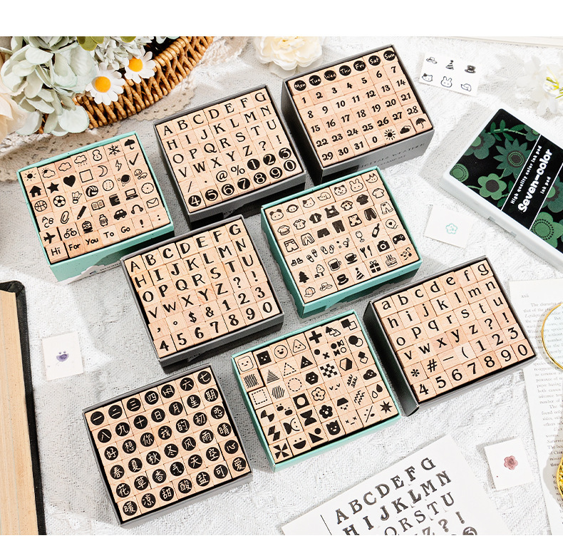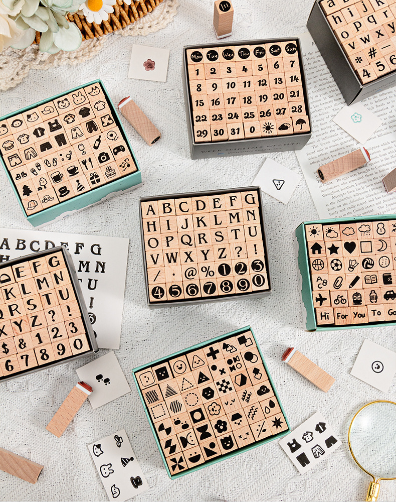 42 sello de madera de hayale letras digitales gráficos geométricos pequeños sello de base de expresión sello de mano de madera