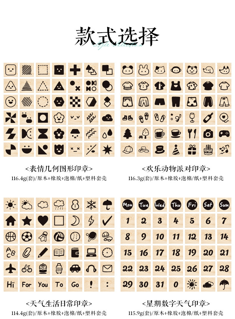 | Color | Números de letras mayúsculas, números de letras minúsculas, chino básico, números de letras manuscritas, clima digital semanal, vida Meteorológica diaria, geometría de expresión, fiesta de animales felices |