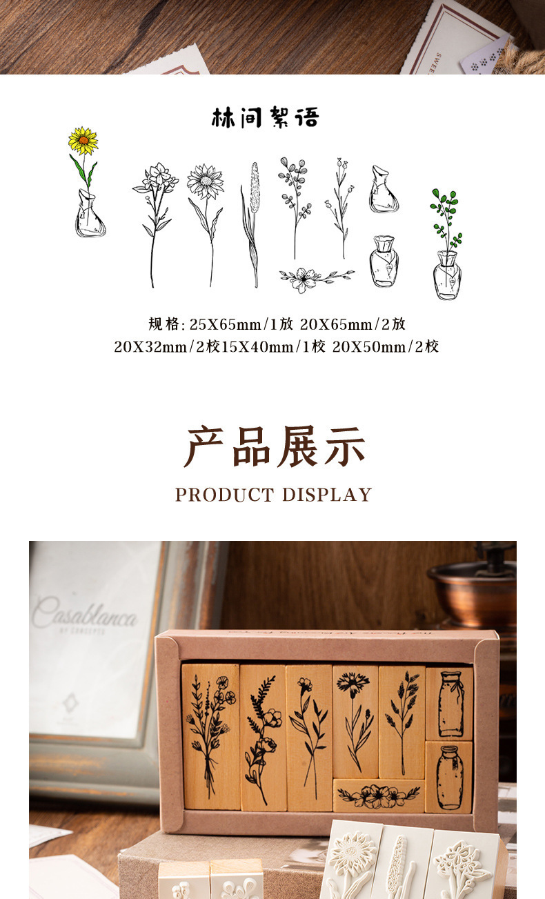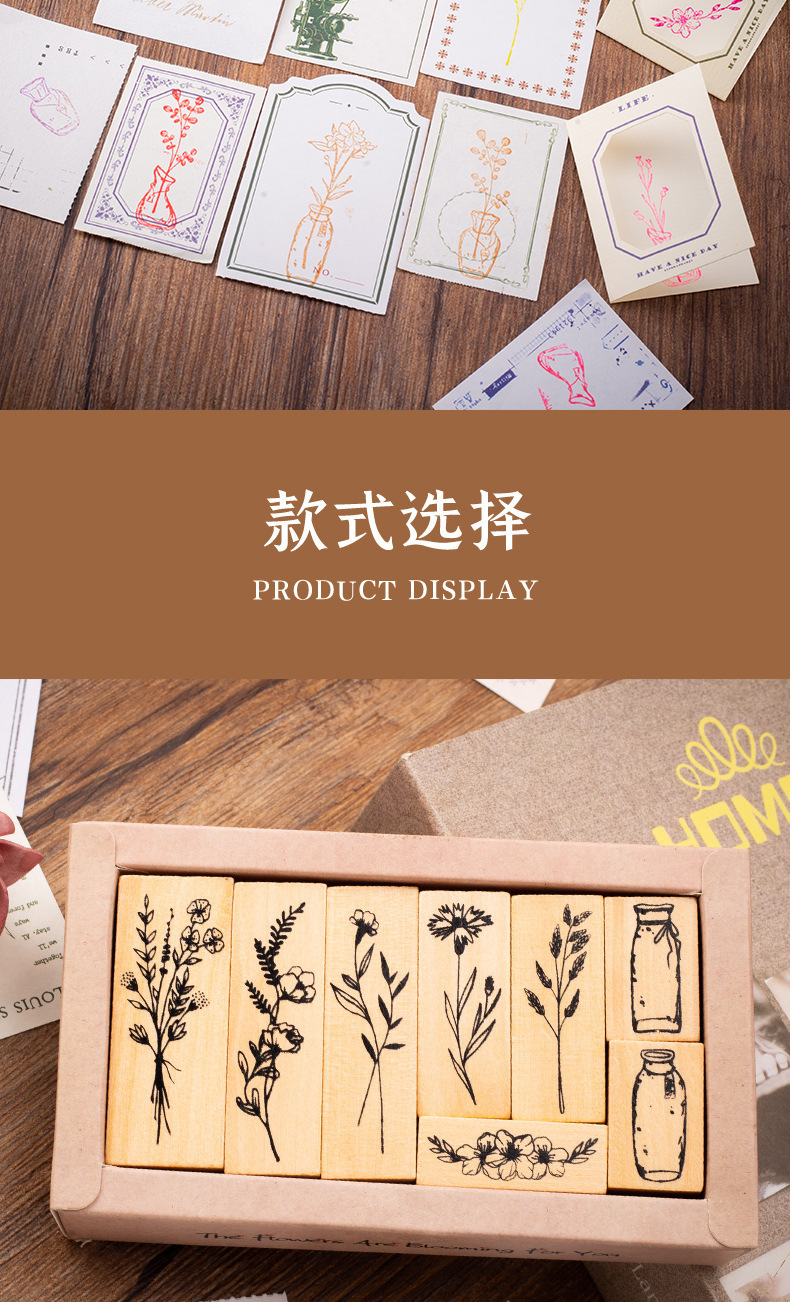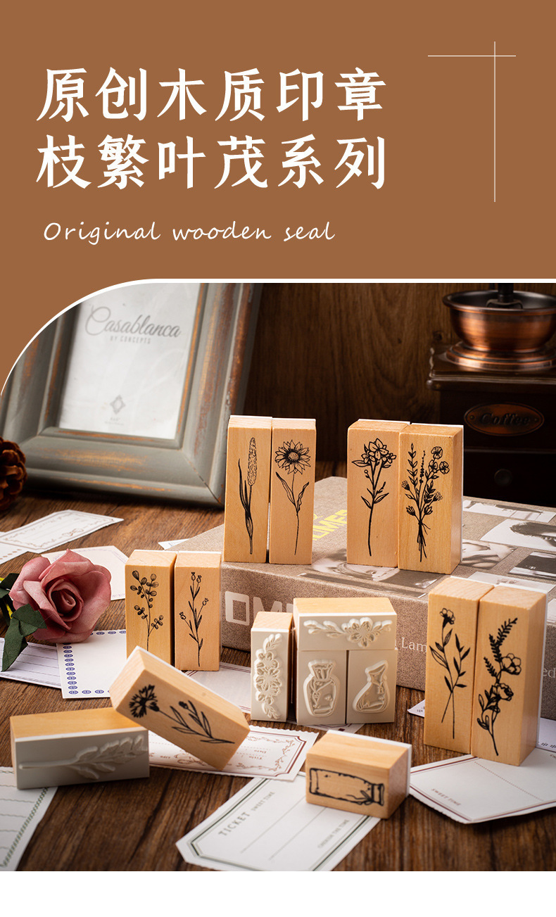 Vintage Lotus madera combinación traje sello planta florero mano cuenta DIY álbum diario decoración 2 opciones