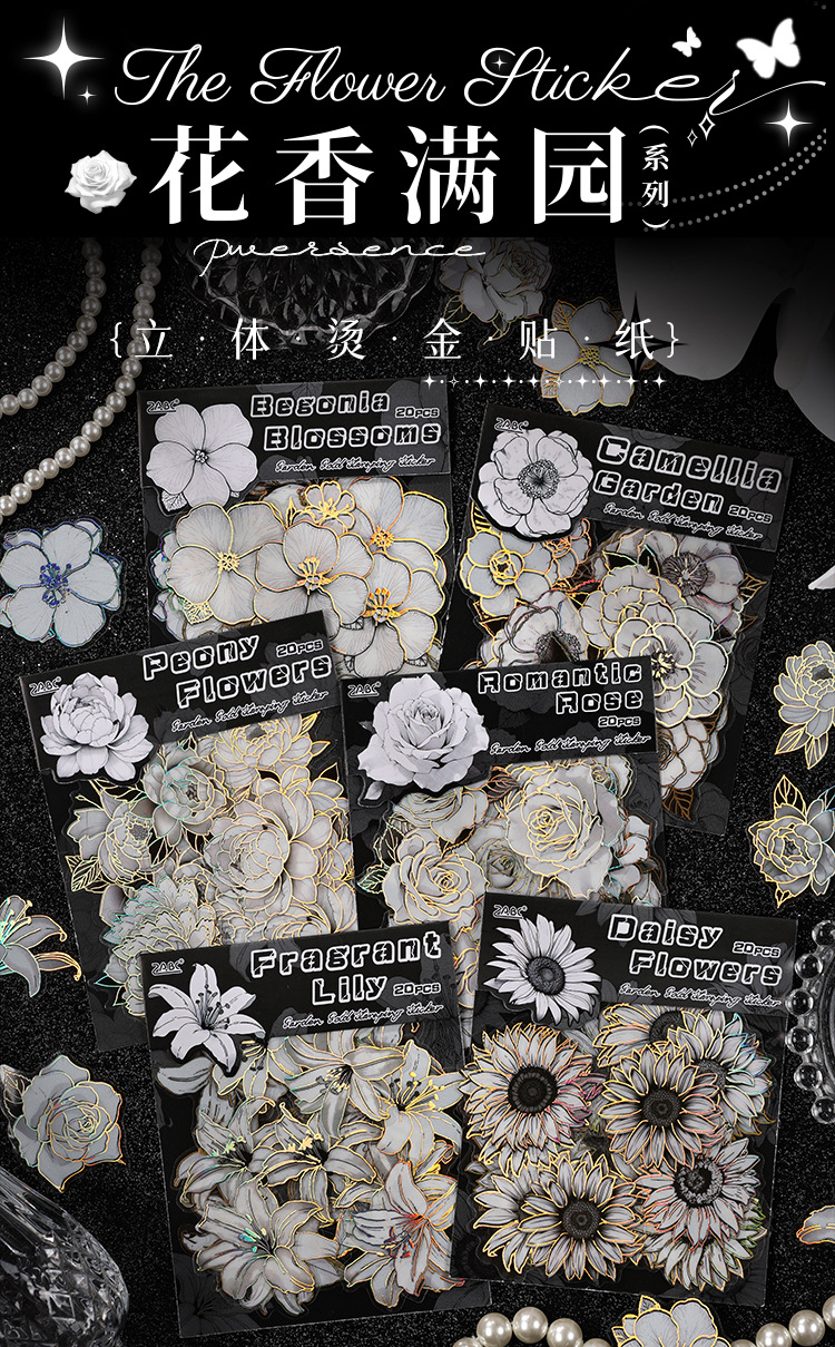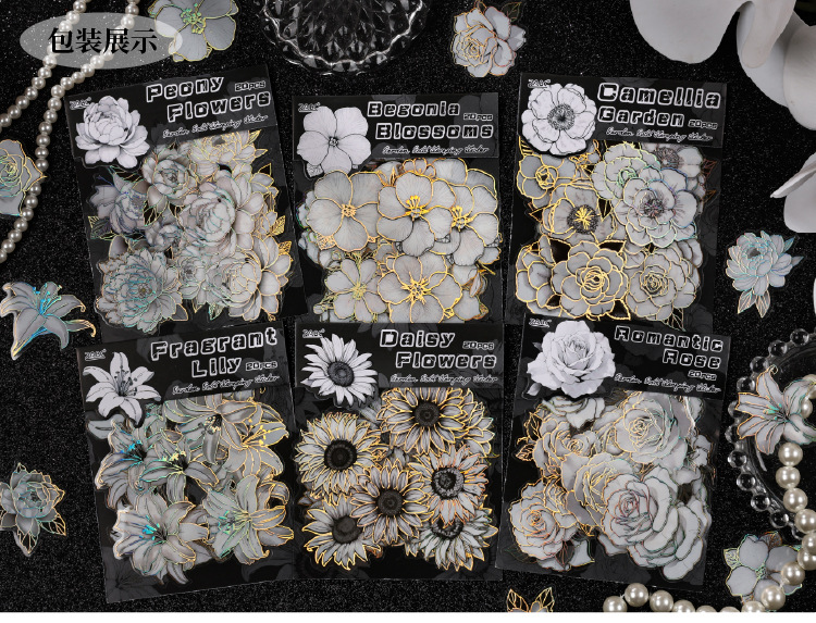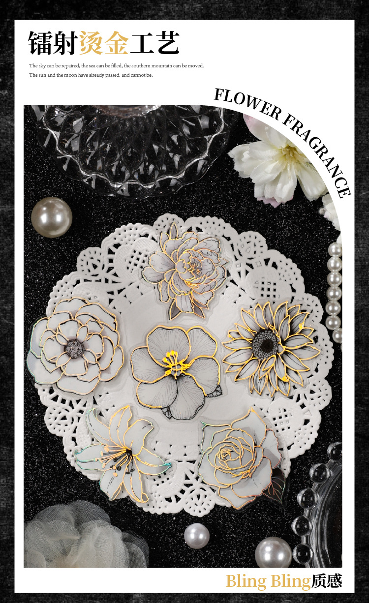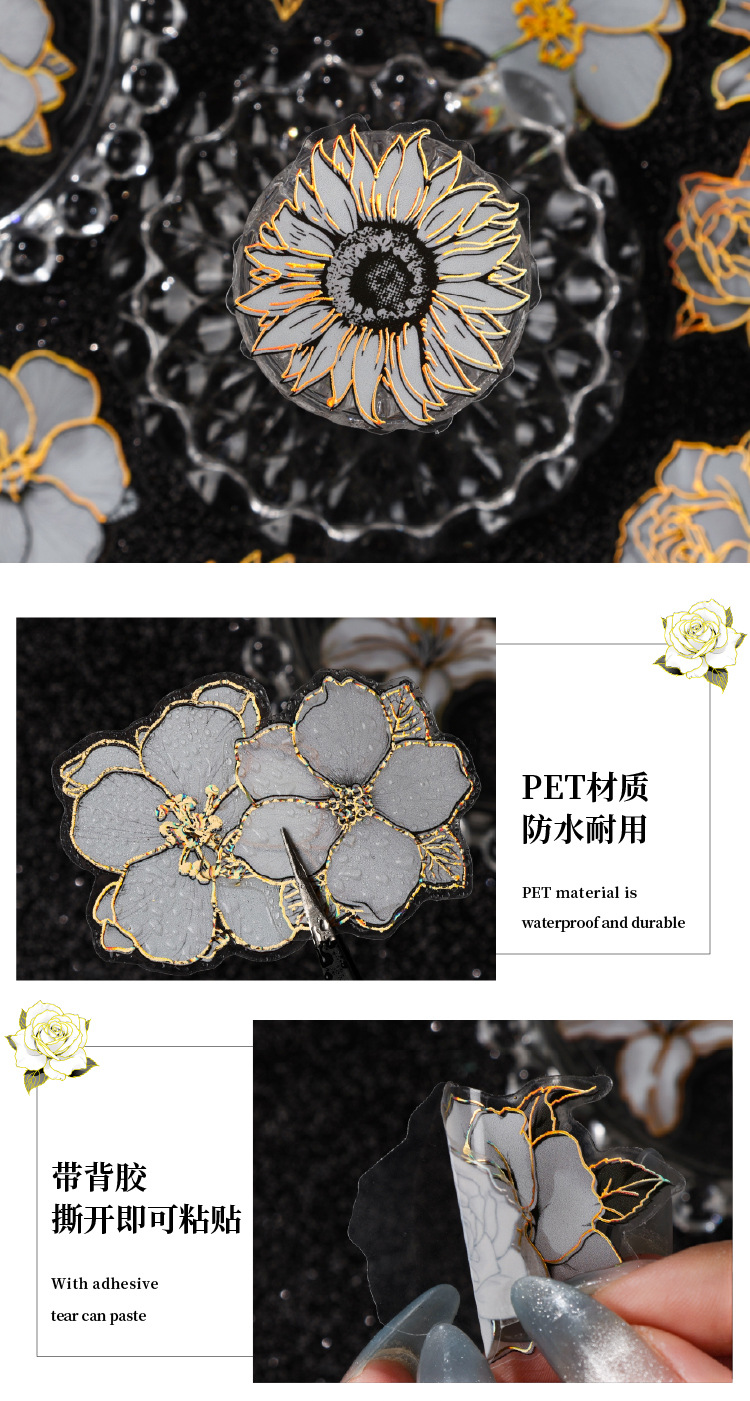 Flower Fragrant Manyuan Paquete de pegatinas de flores de bronceado tridimensional Pete impermeable Cuenta de mano transfronteriza Collage de bricolaje Material de decoración Pegatinas