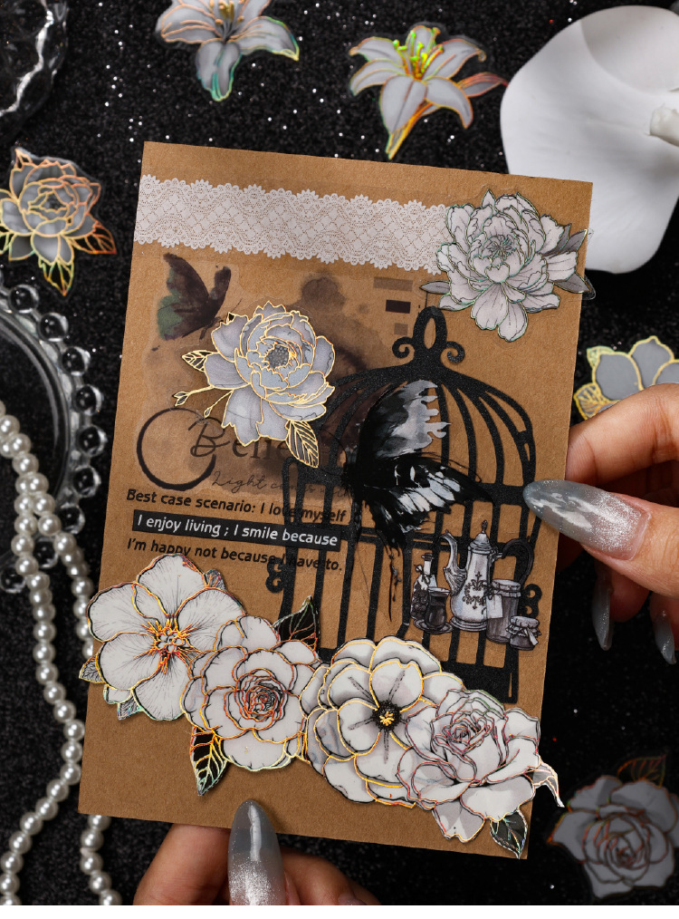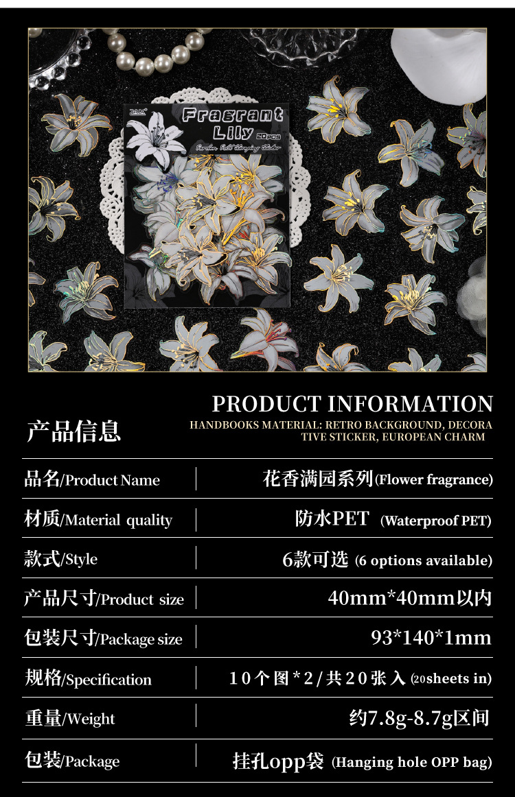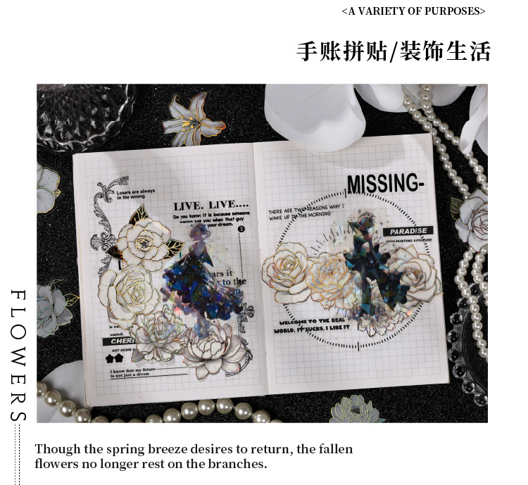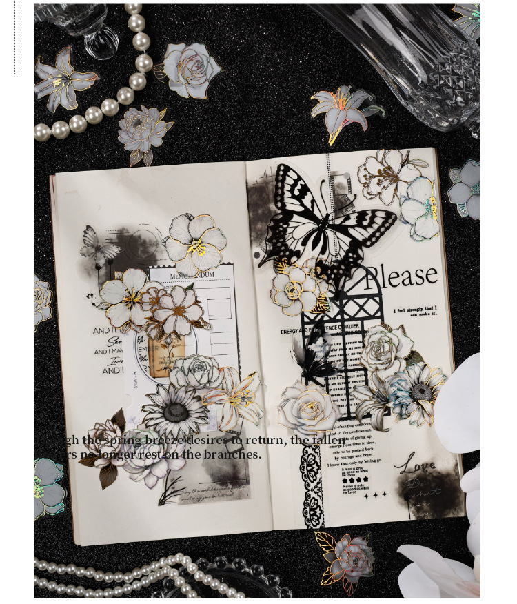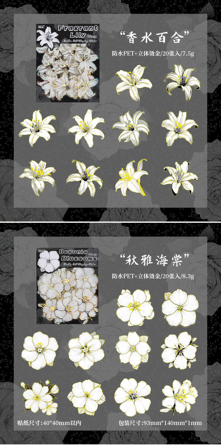 Flower Fragrant Manyuan Paquete de pegatinas de flores de bronceado tridimensional Pete impermeable Cuenta de mano transfronteriza Collage de bricolaje Material de decoración Pegatinas