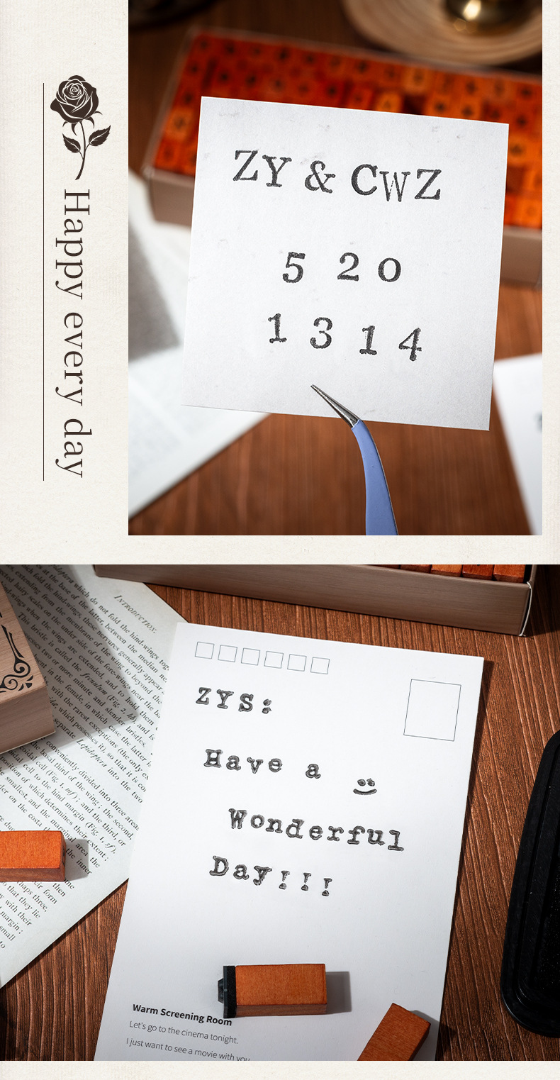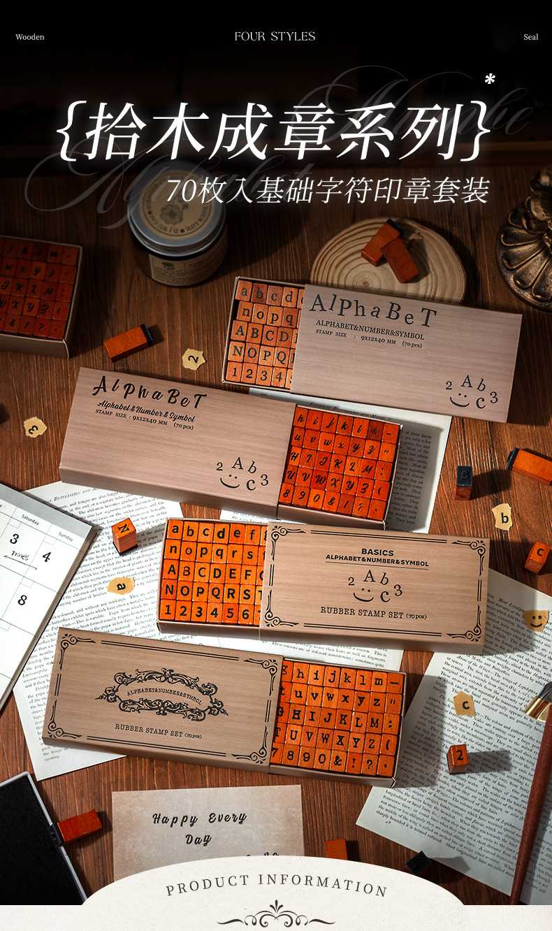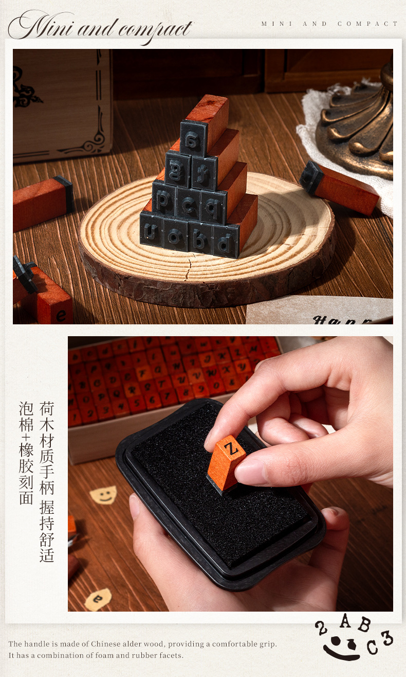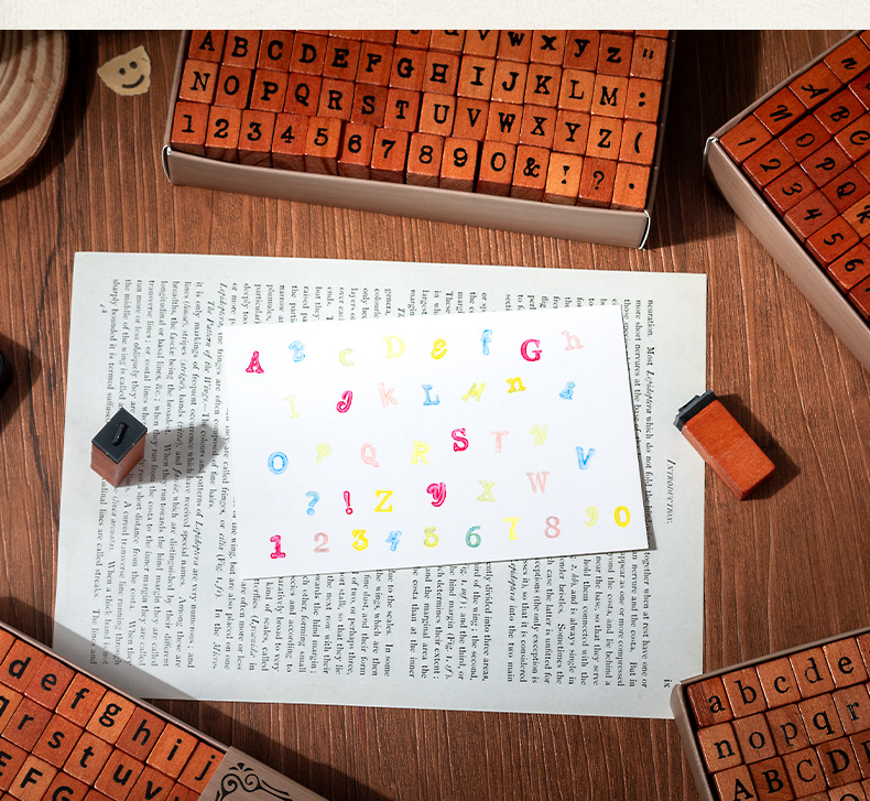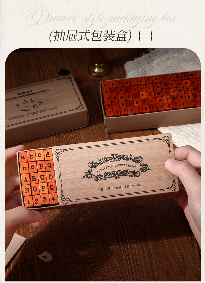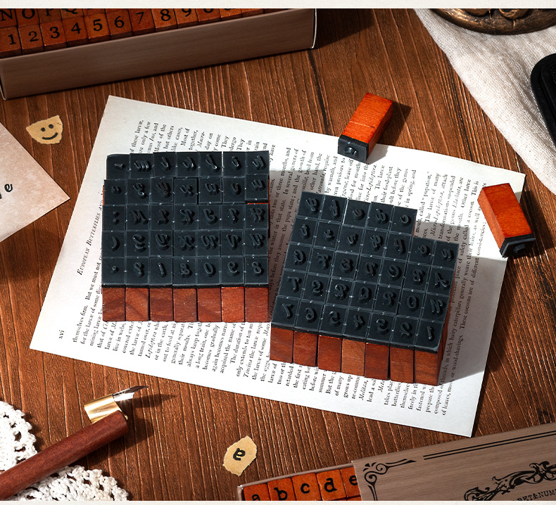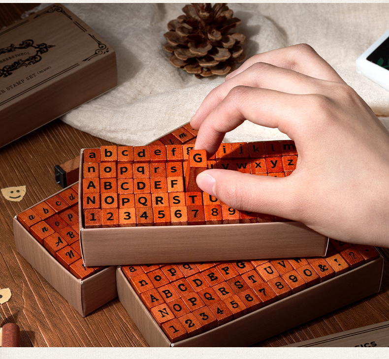 Diez sellos de madera 70 sellos de madera retrógrada caja de sellado transfronterizo letras y minúsculas signos alfanuméricos sello