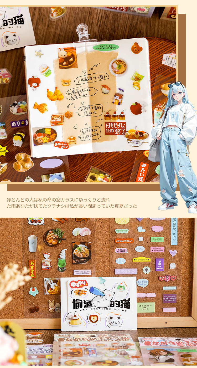 Little Story Japanese Cartoon Pet Impermeable Diy Hand Cuento Decoración Diario Material Decoración Dibujos animados Taza de agua Pegatina