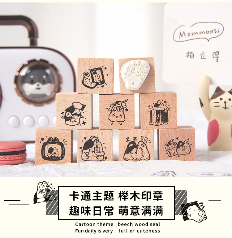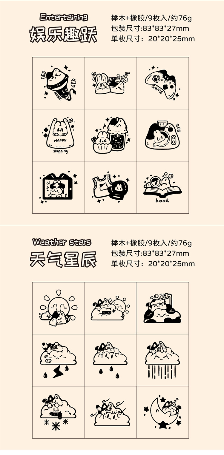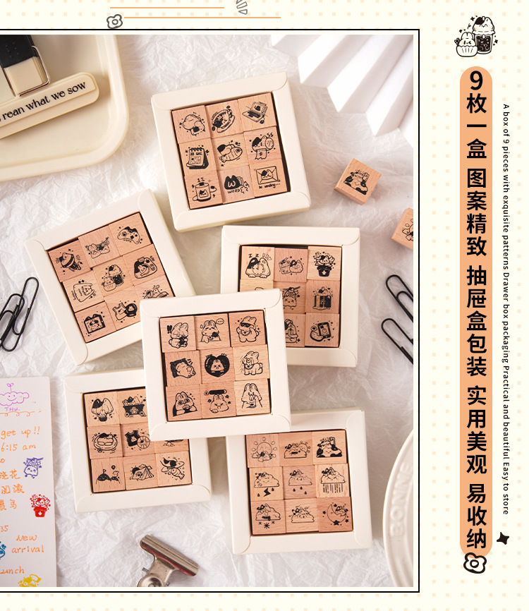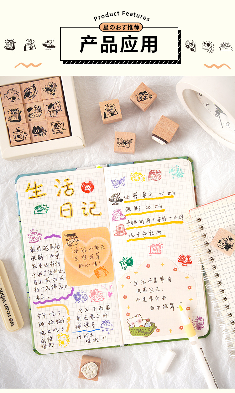 Registro de tiempo, juego de sellos de madera, bricolaje, impresión de diario de cuenta manual, dibujos animados transfronterizos, clima animal, sello de cuenta manual