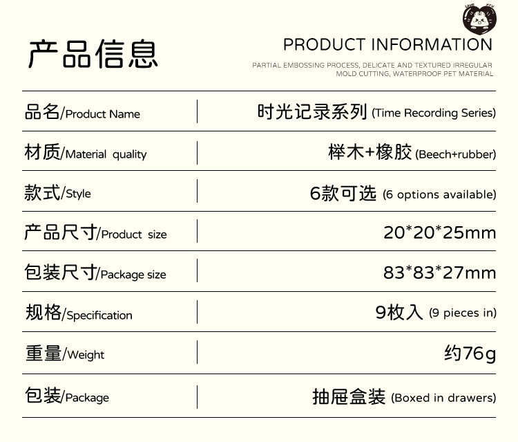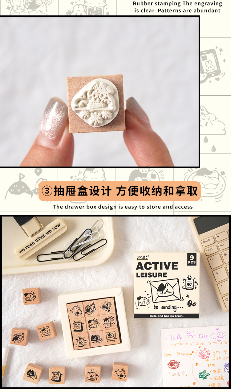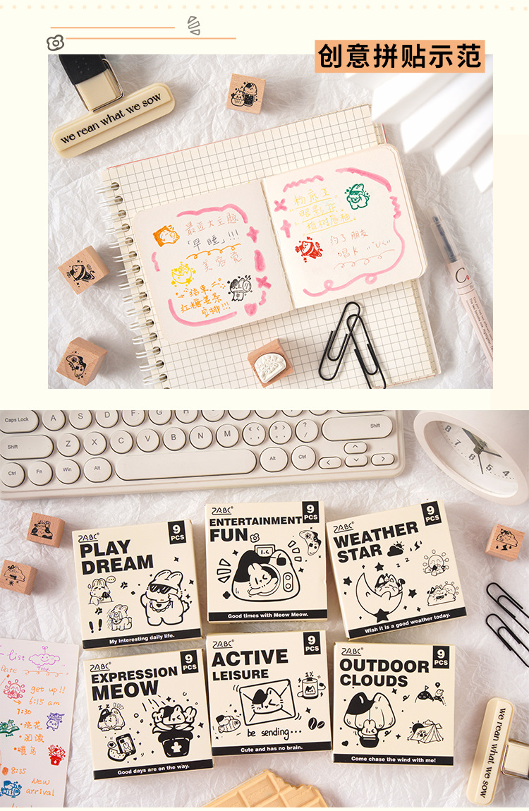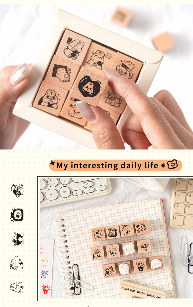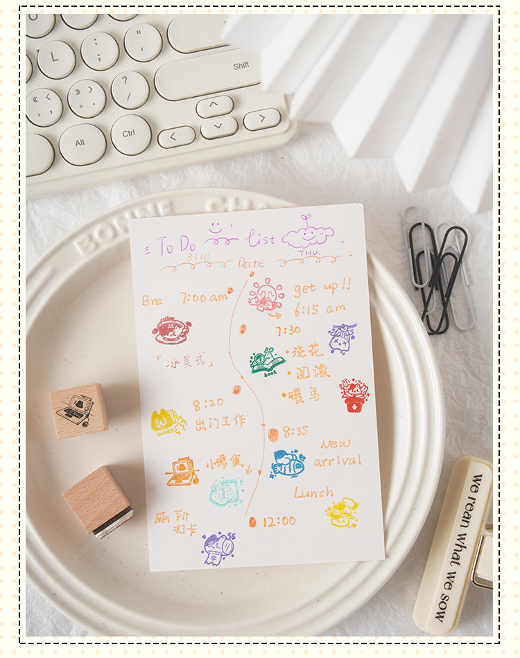 Registro de tiempo, juego de sellos de madera, bricolaje, impresión de diario de cuenta manual, dibujos animados transfronterizos, clima animal, sello de cuenta manual