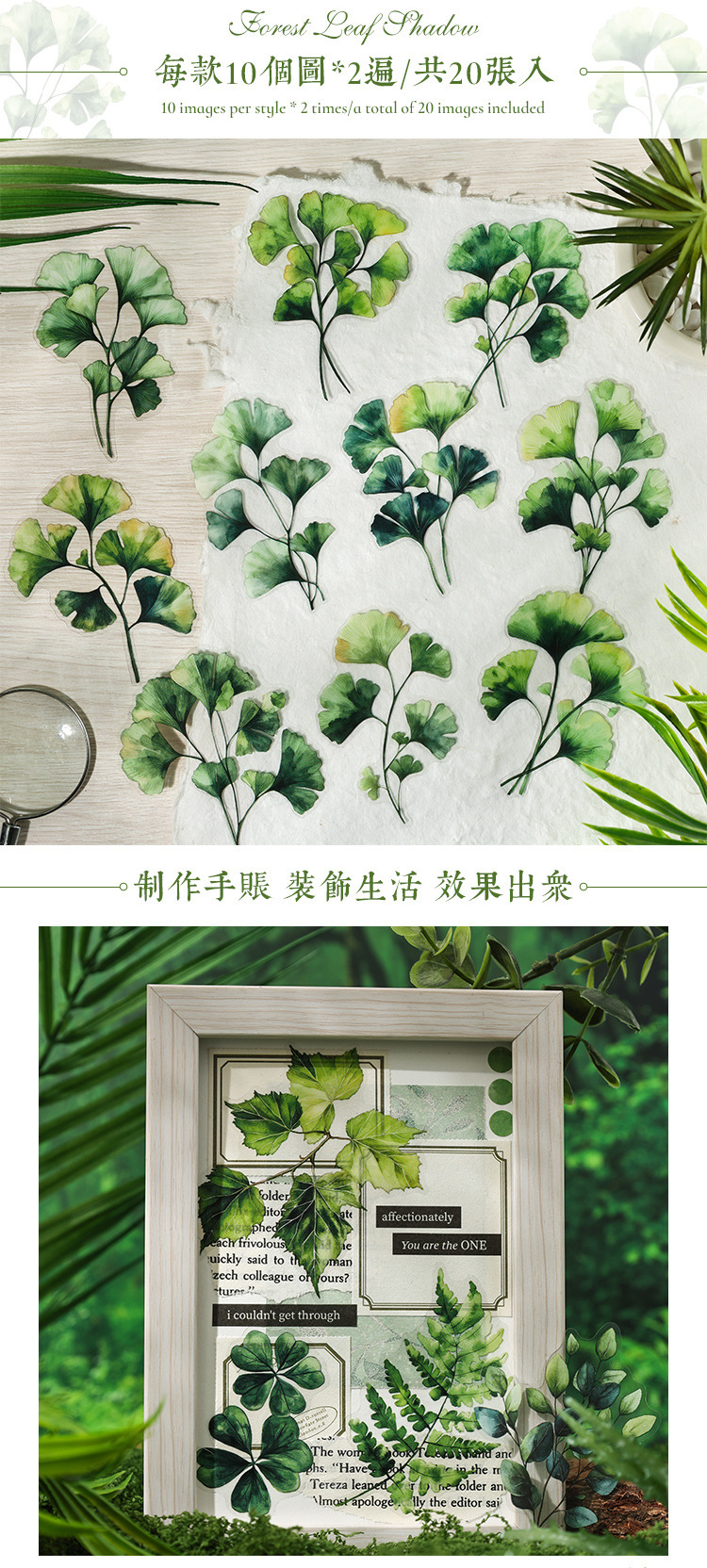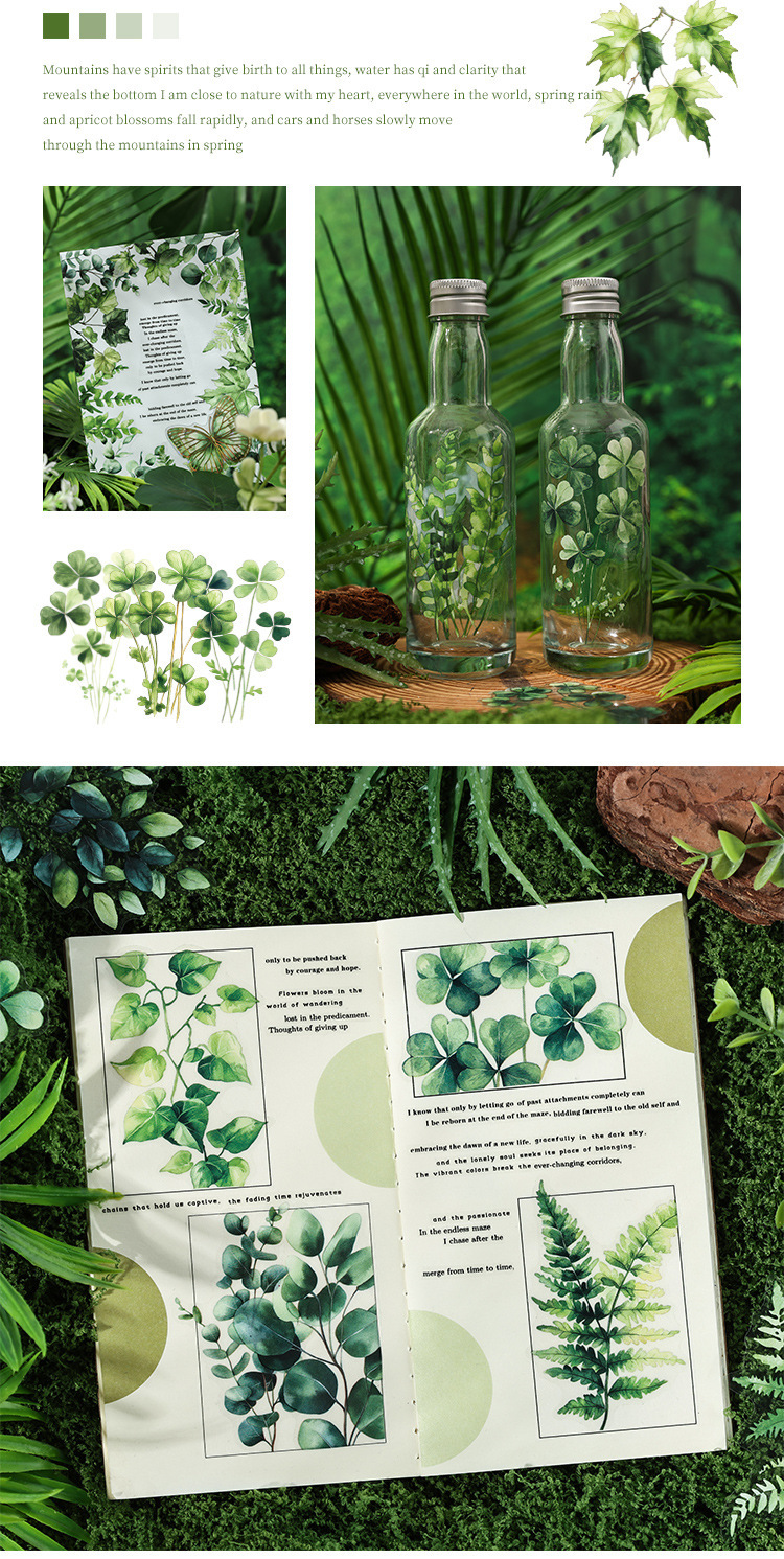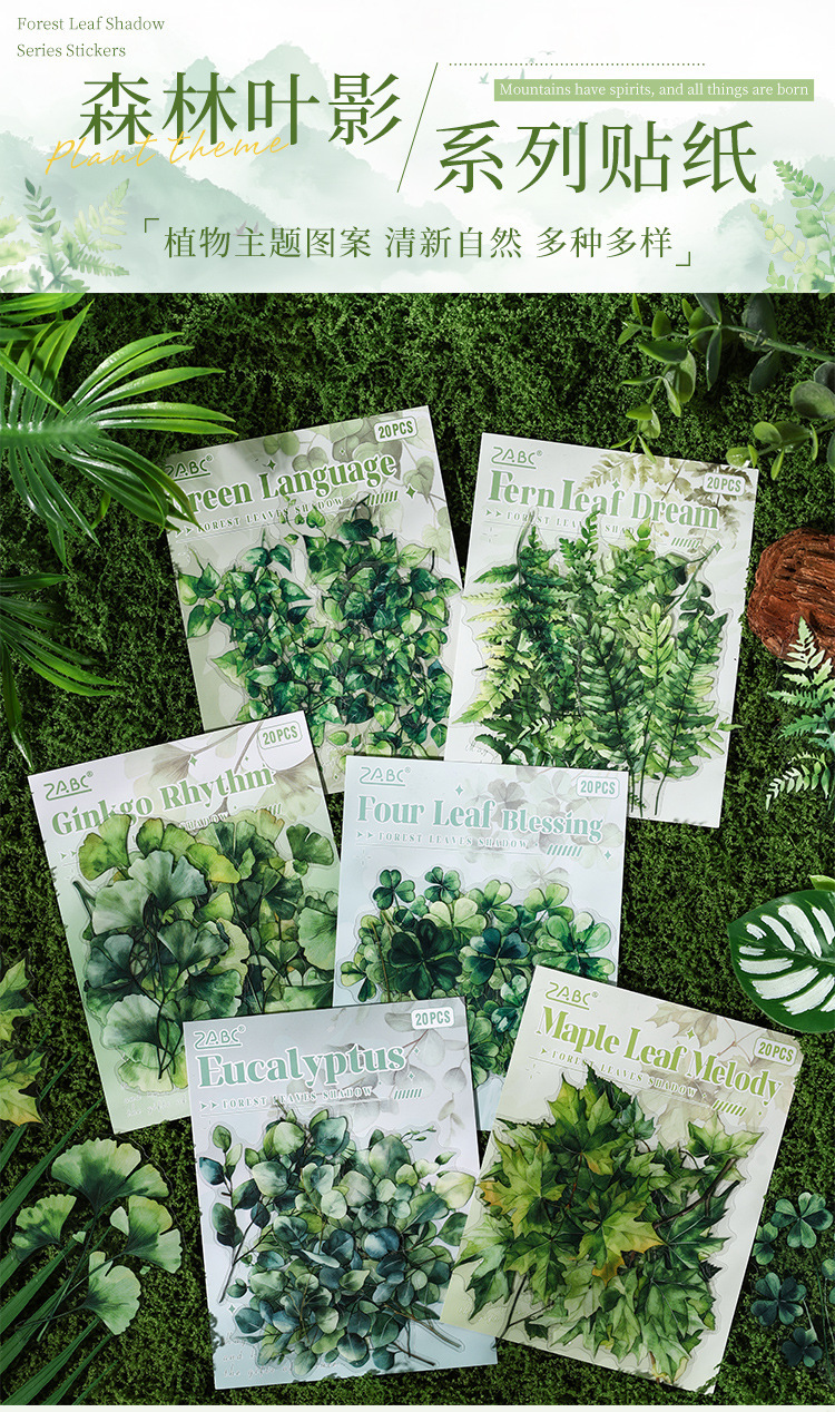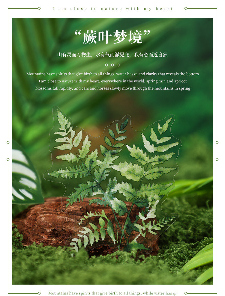 Sombra de hoja forestal transparente pegatinas impermeables para mascotas paquete diy pegatinas paisajísticas de cuentas de mano pegatinas de hojas de plantas retro transfronterizas