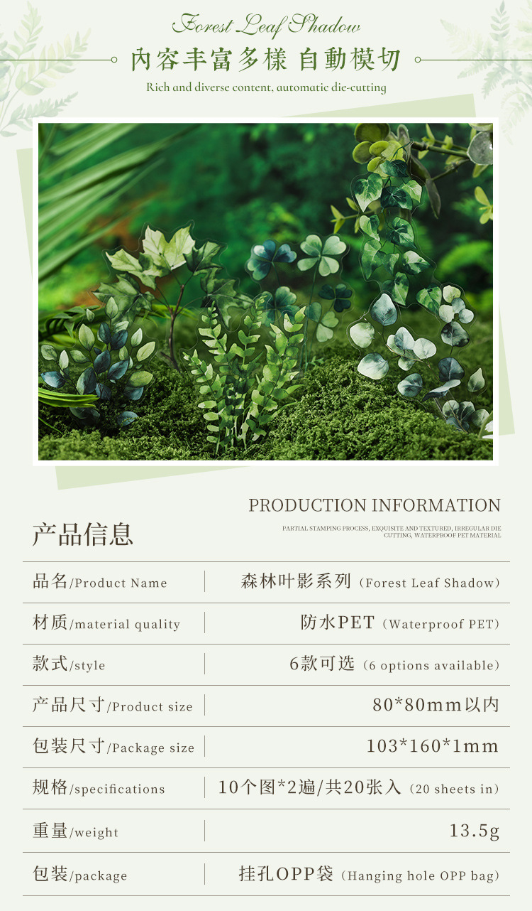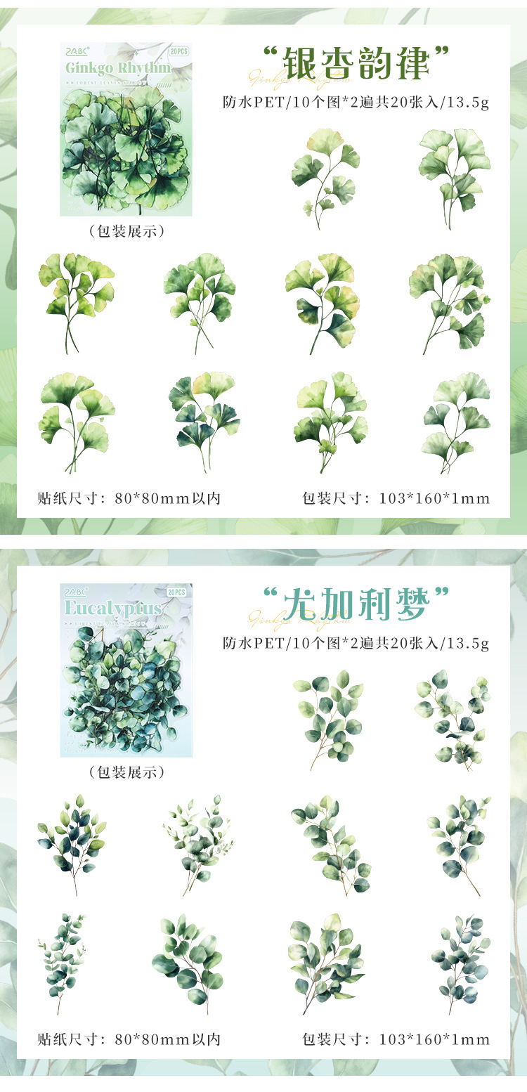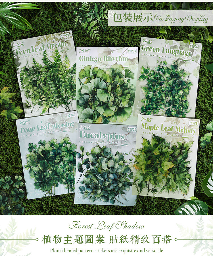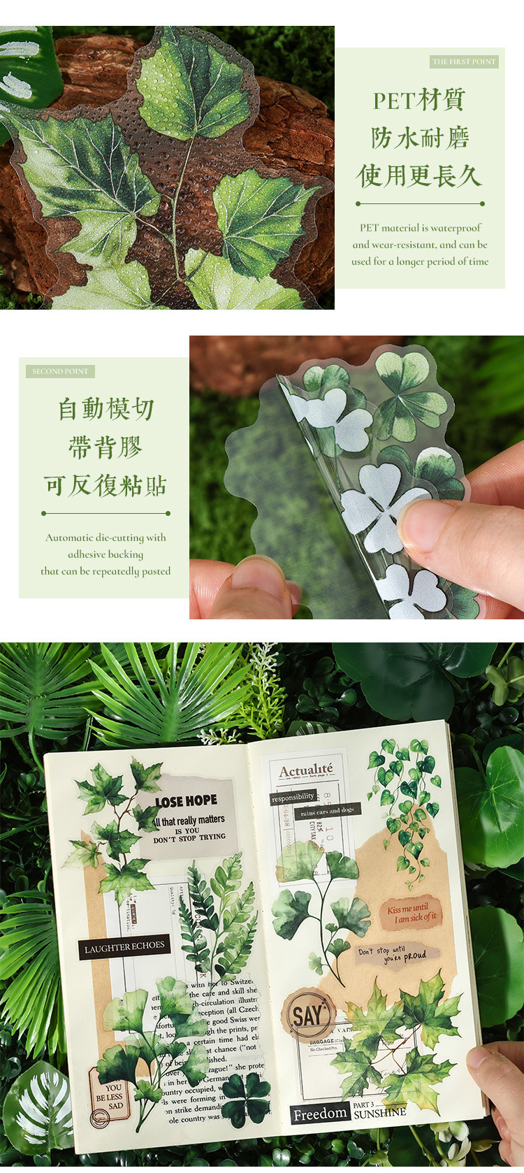 Sombra de hoja forestal transparente pegatinas impermeables para mascotas paquete diy pegatinas paisajísticas de cuentas de mano pegatinas de hojas de plantas retro transfronterizas