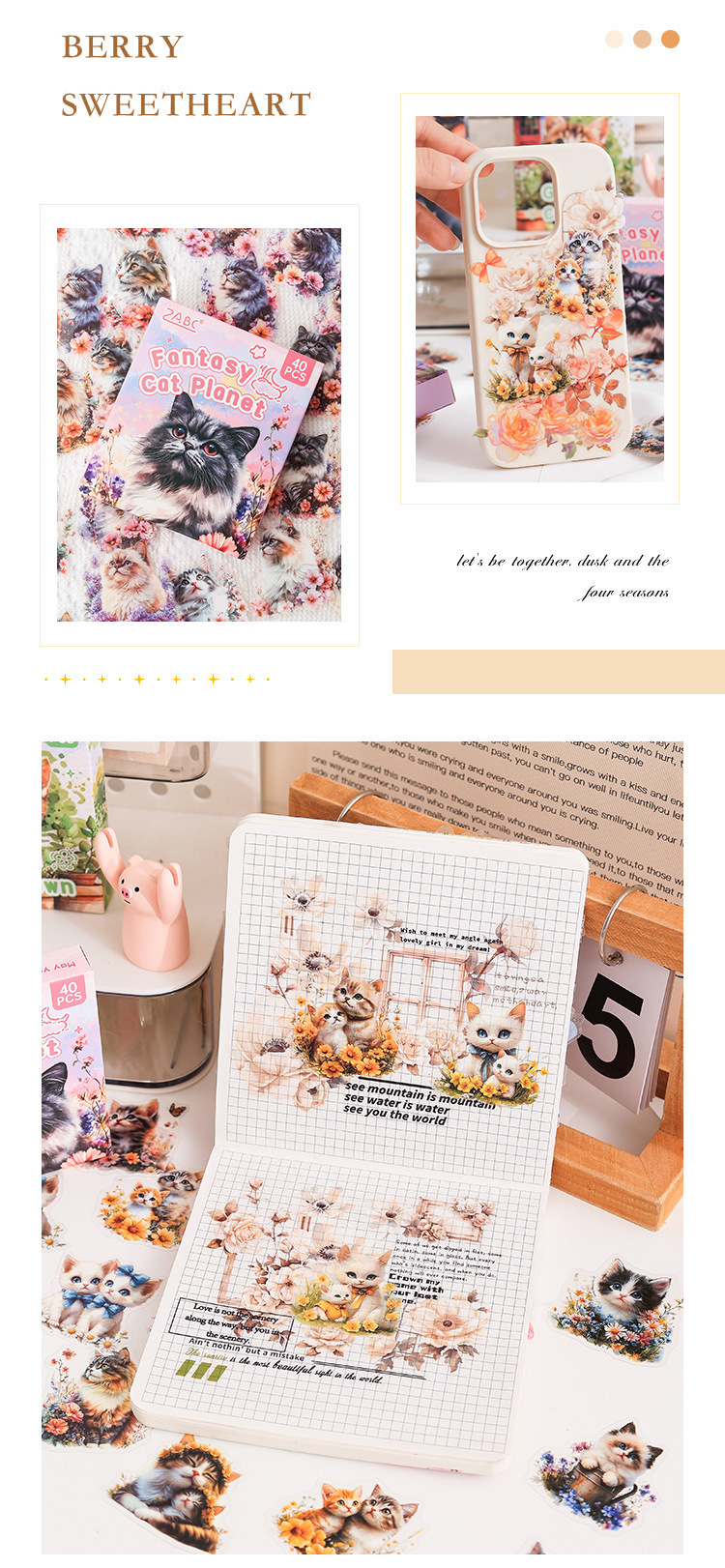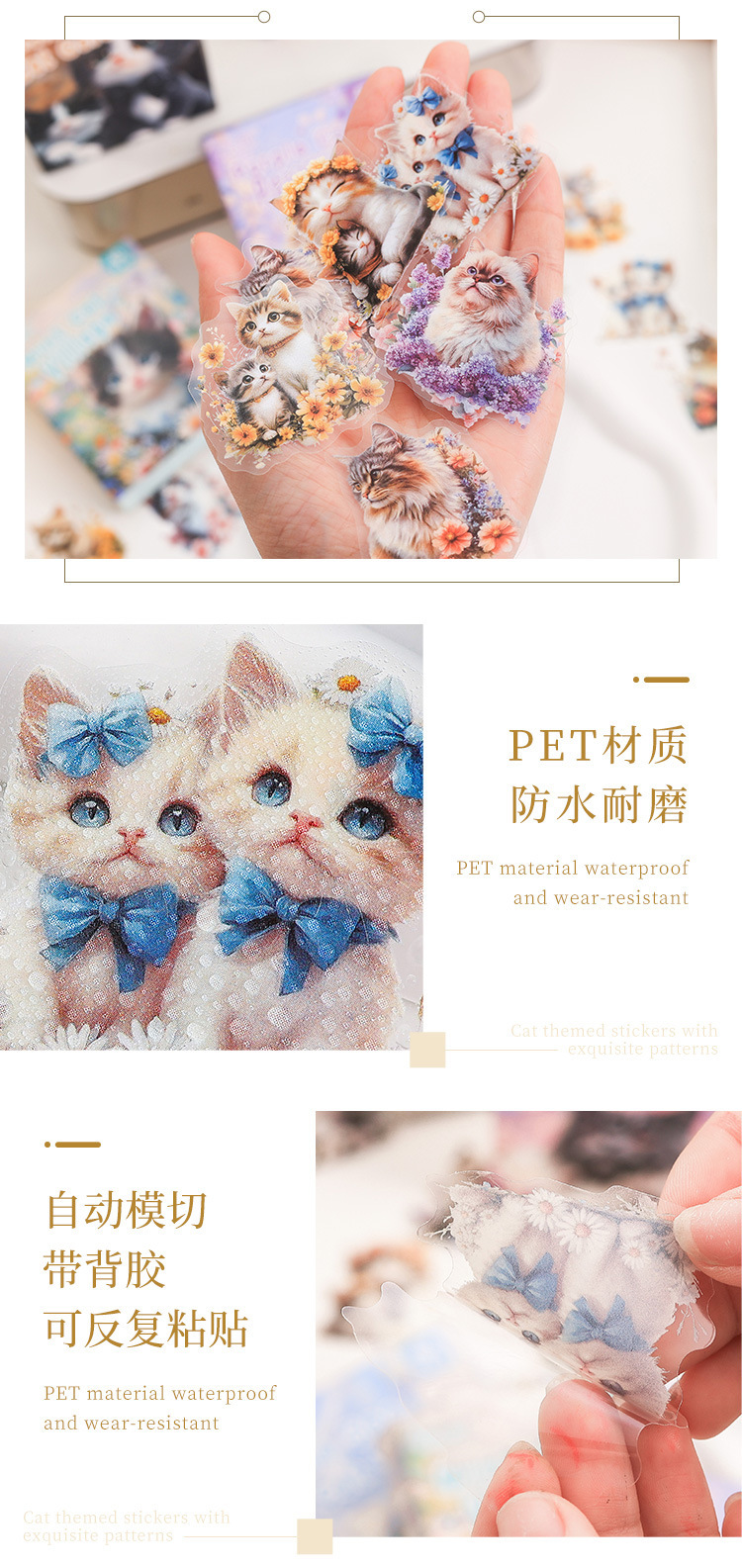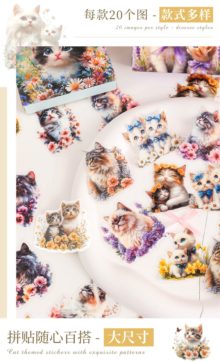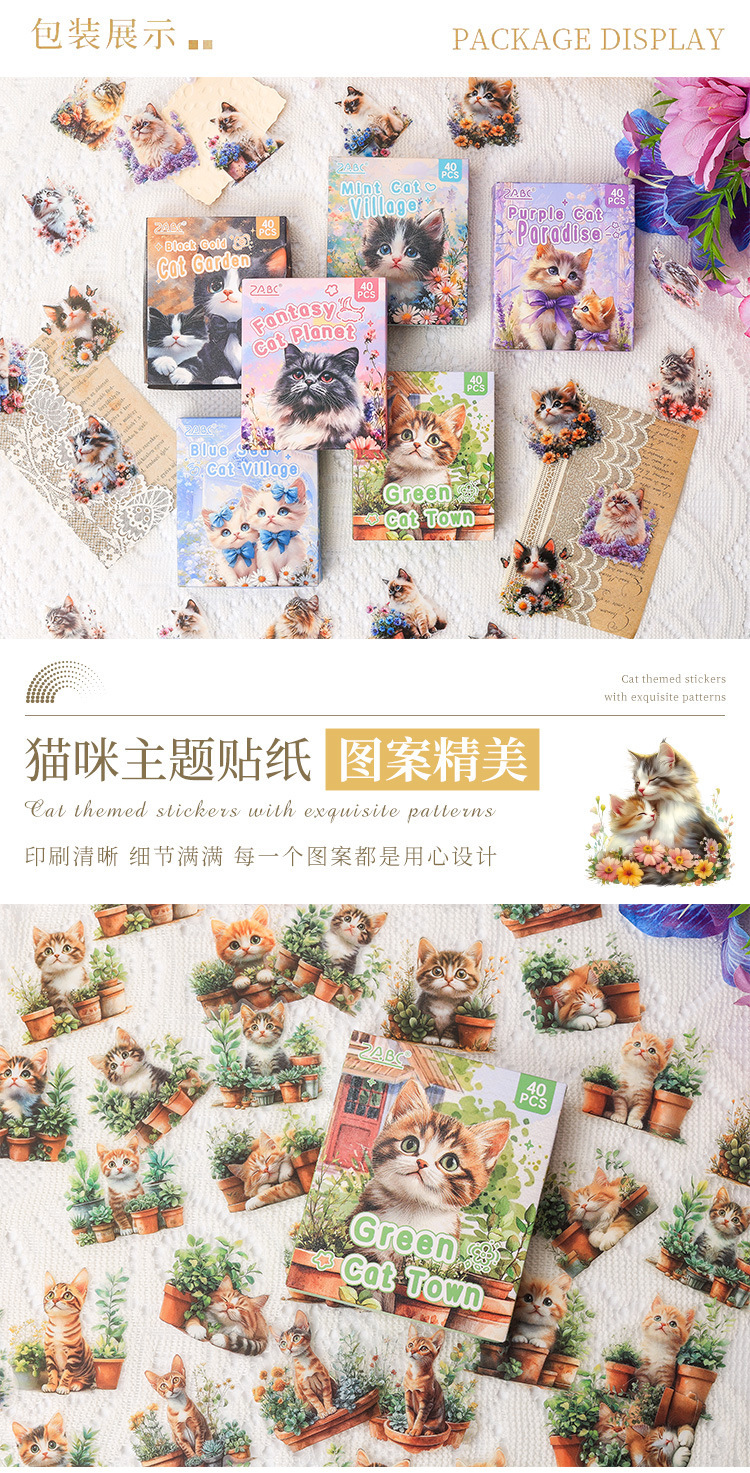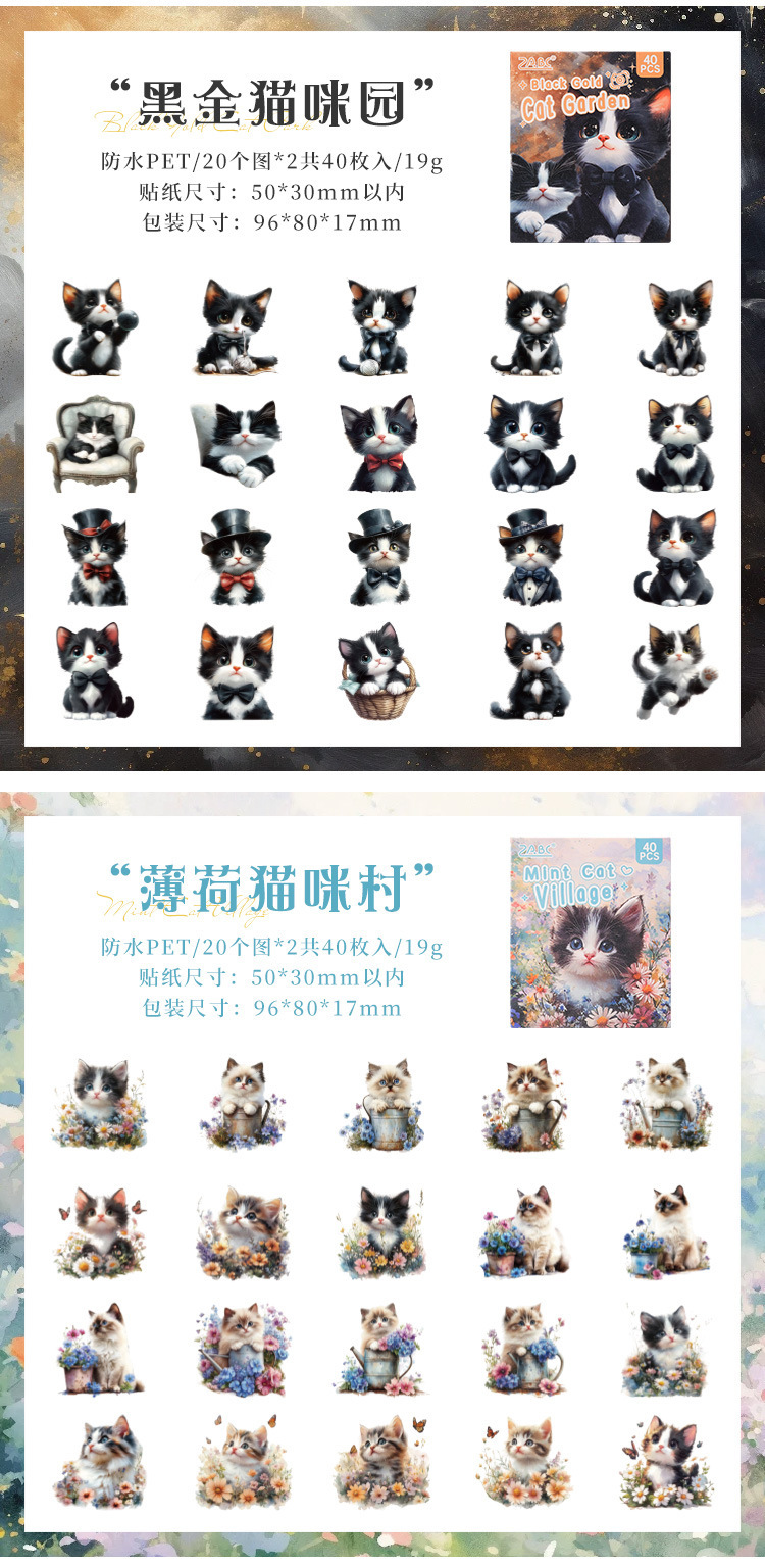 Gato pequeño pegatinas de caja de mascotas impermeables transparentes DIY pegatinas de diario de contabilidad pegatinas de gato retro transfronterizas pegatinas de animales
