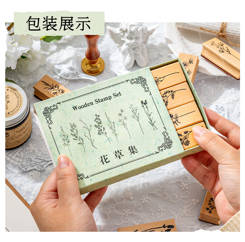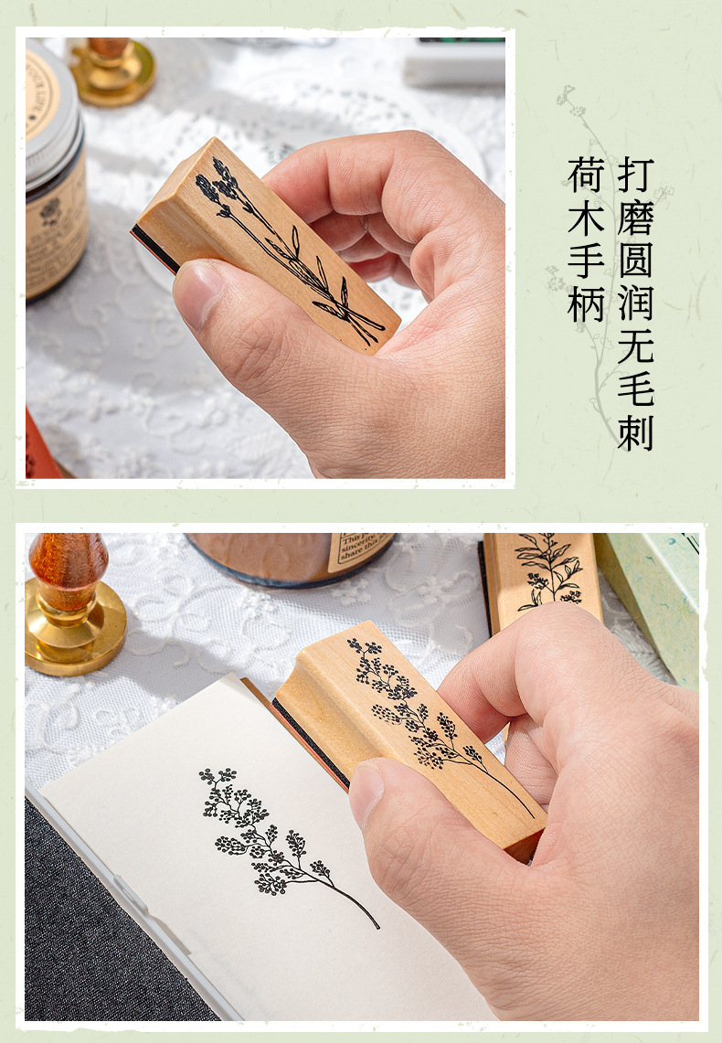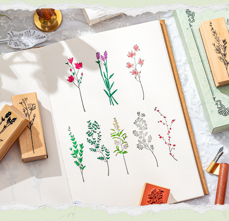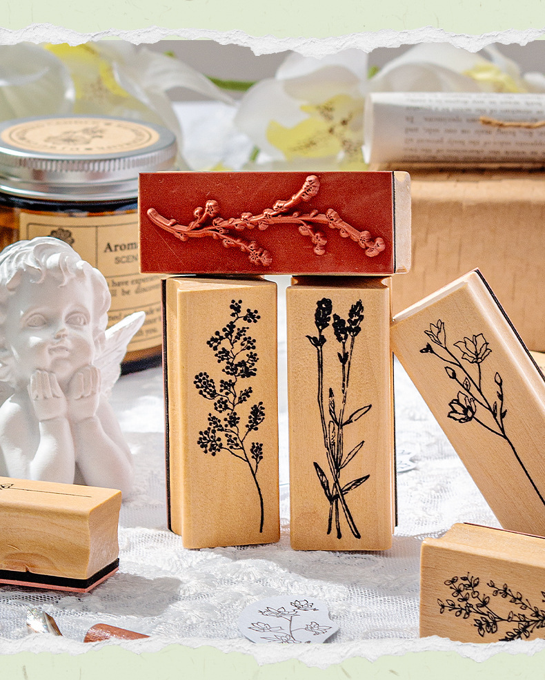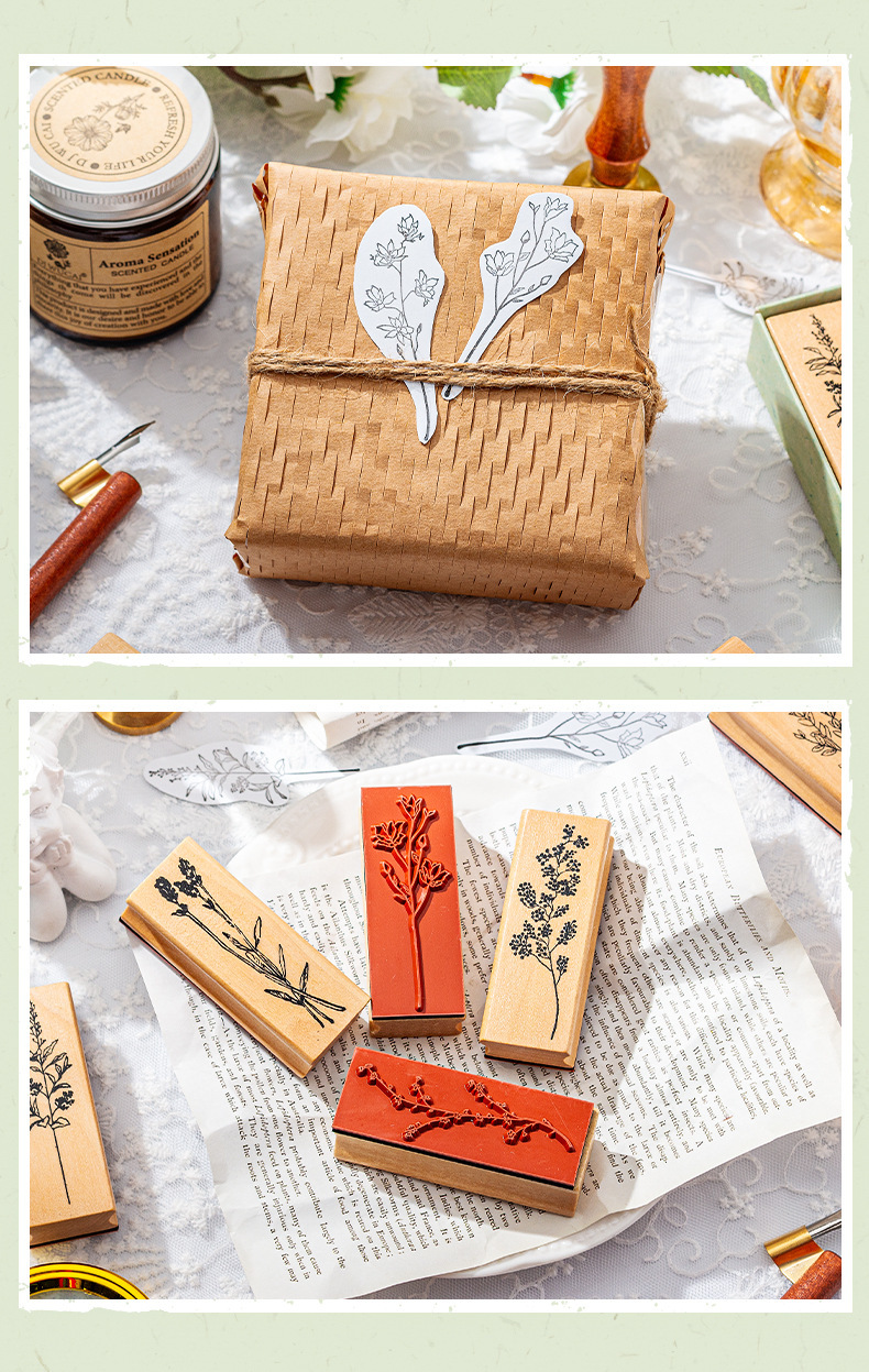 Flores y plantas, sello de caja de madera, flor fresca, flor, sello de decoración, sello de flores transfronterizas
