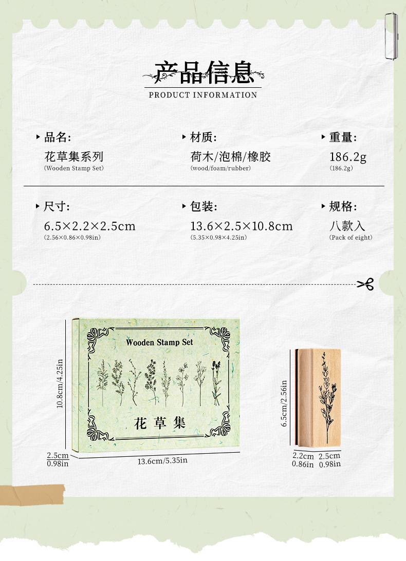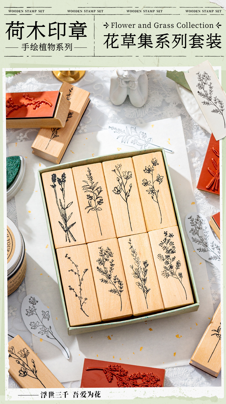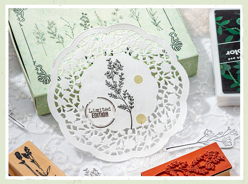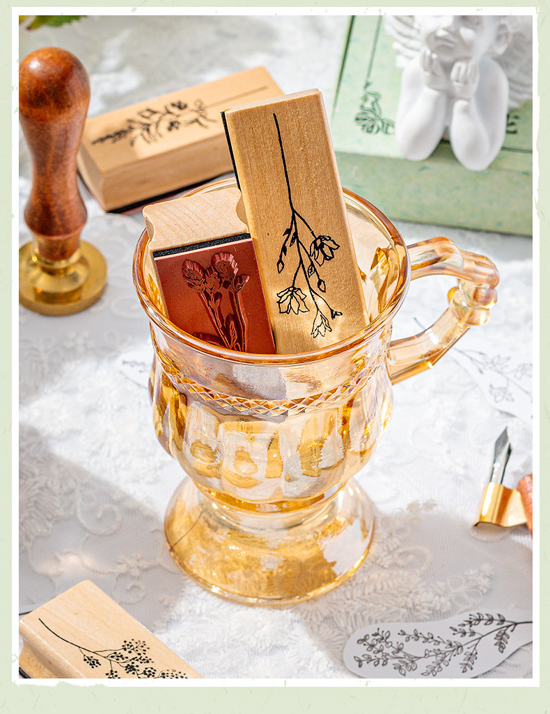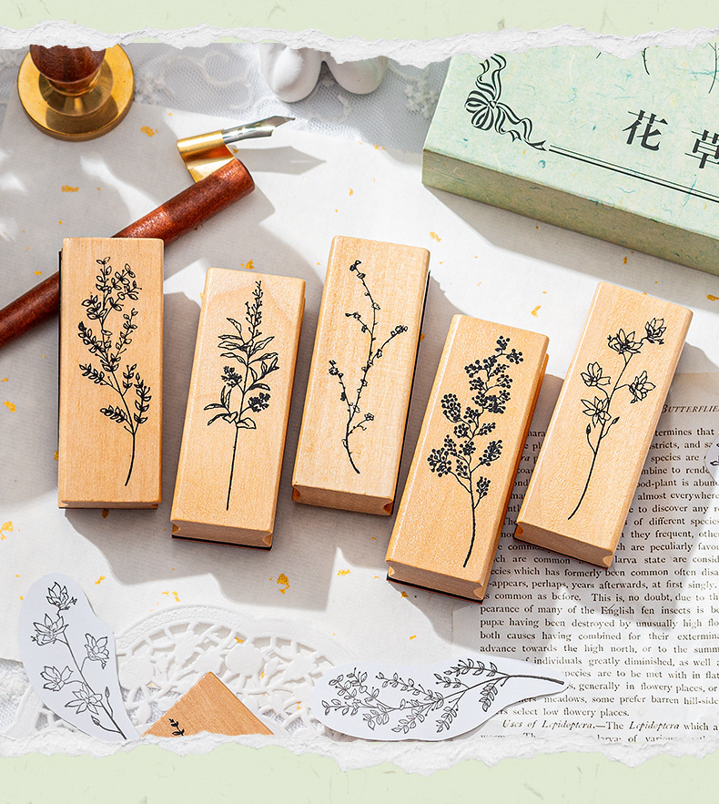 Flores y plantas, sello de caja de madera, flor fresca, flor, sello de decoración, sello de flores transfronterizas