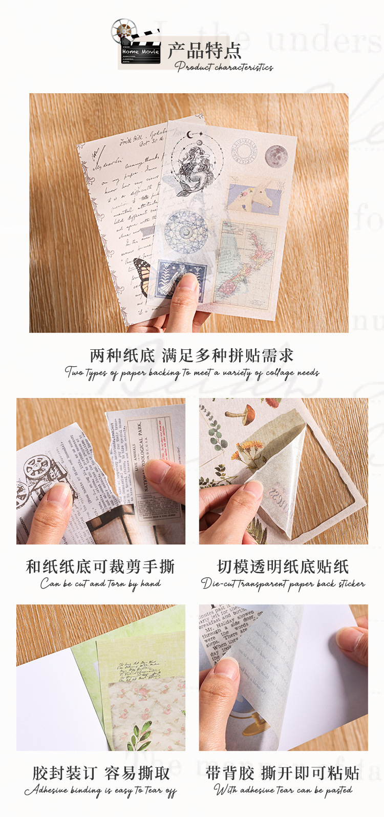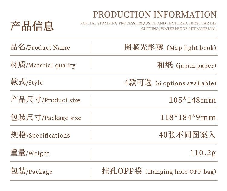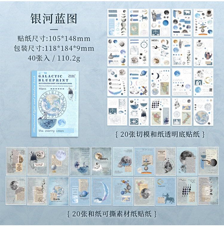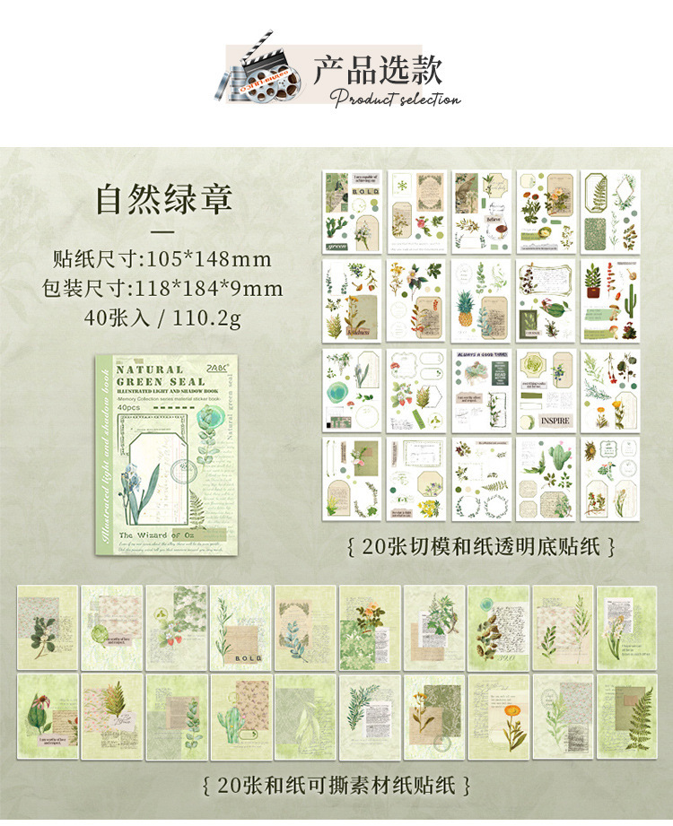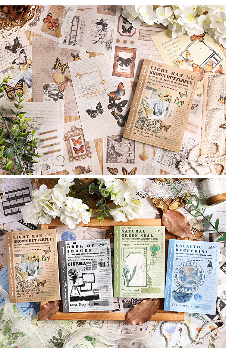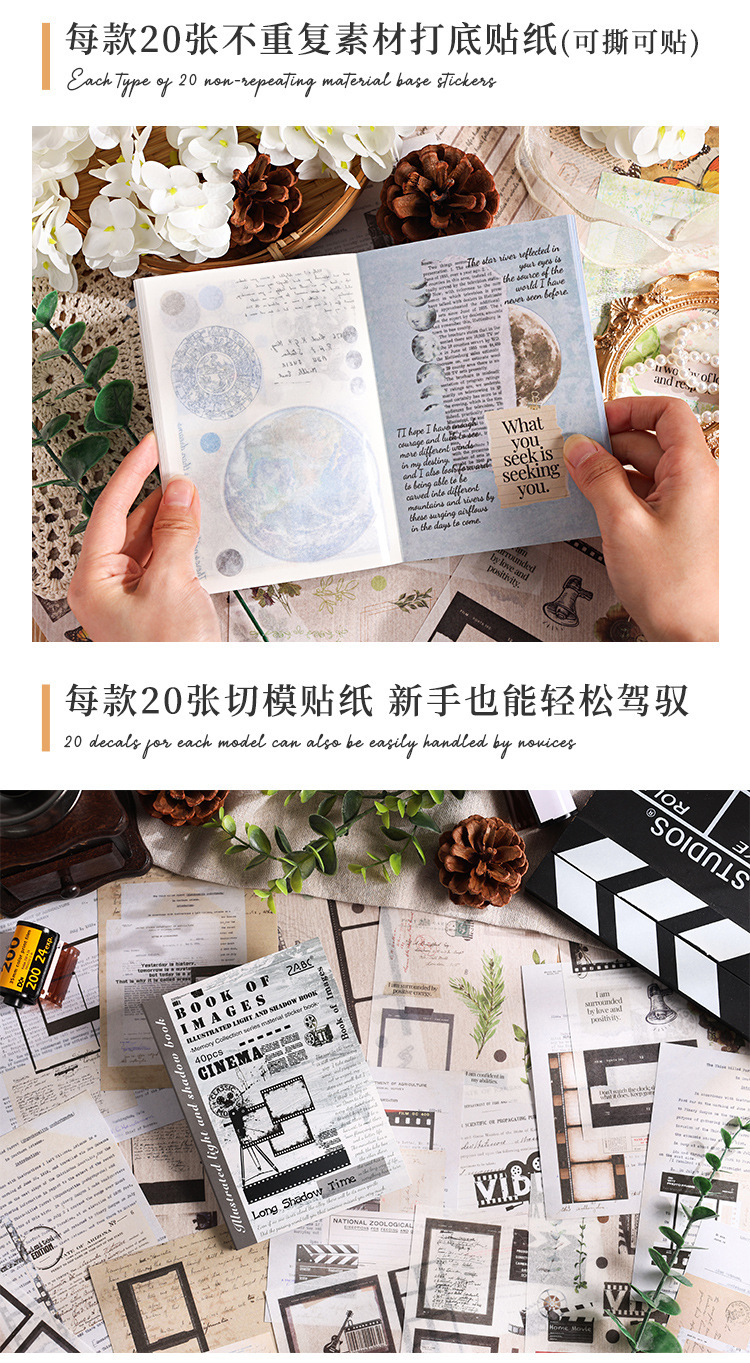 Guía de fotos de luz y sombras, pegatinas retrógradas, cuentas de mano, diarios, materiales de decoración retrógrados, libros de paisaje y papelería de papel