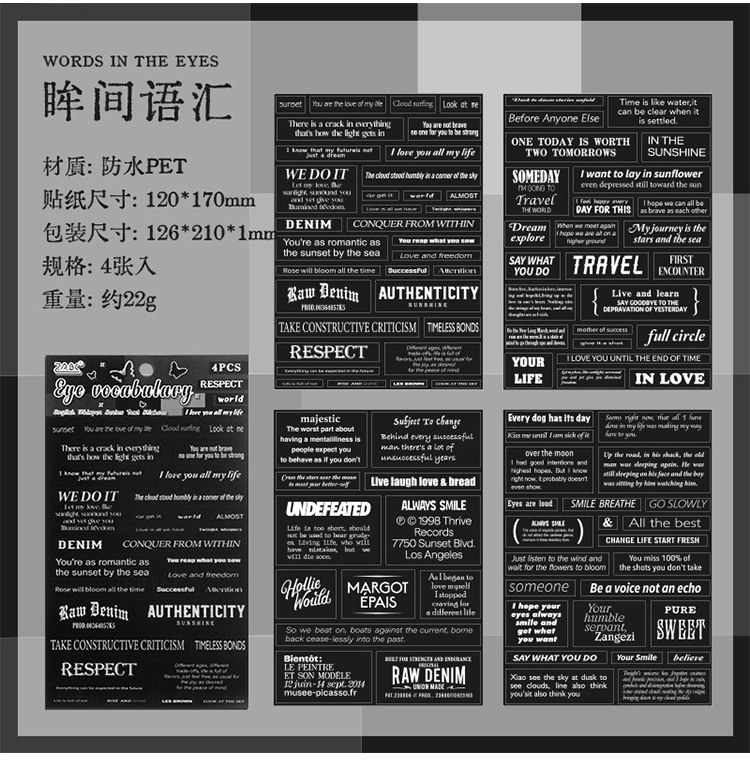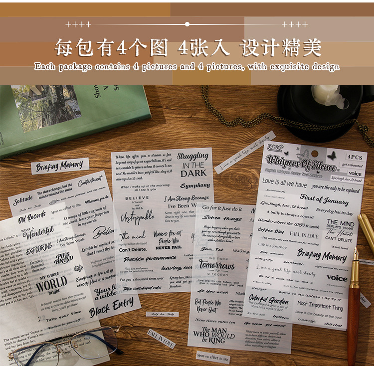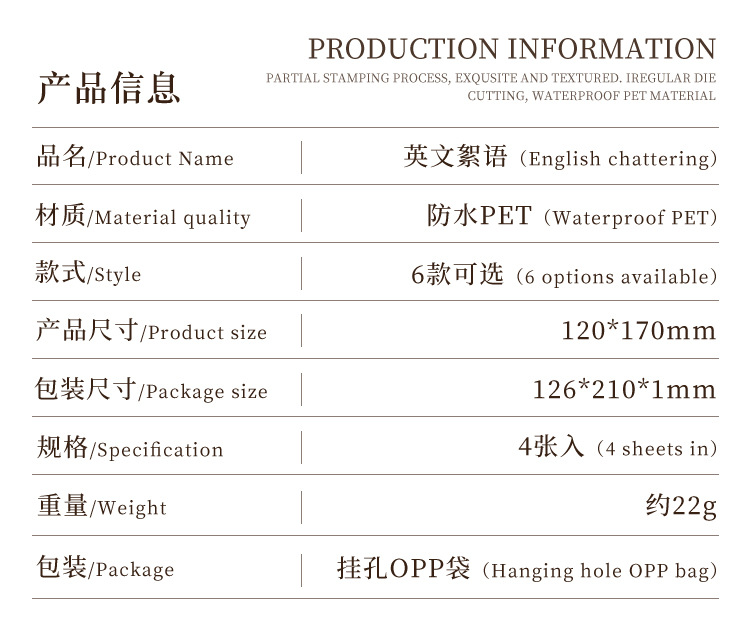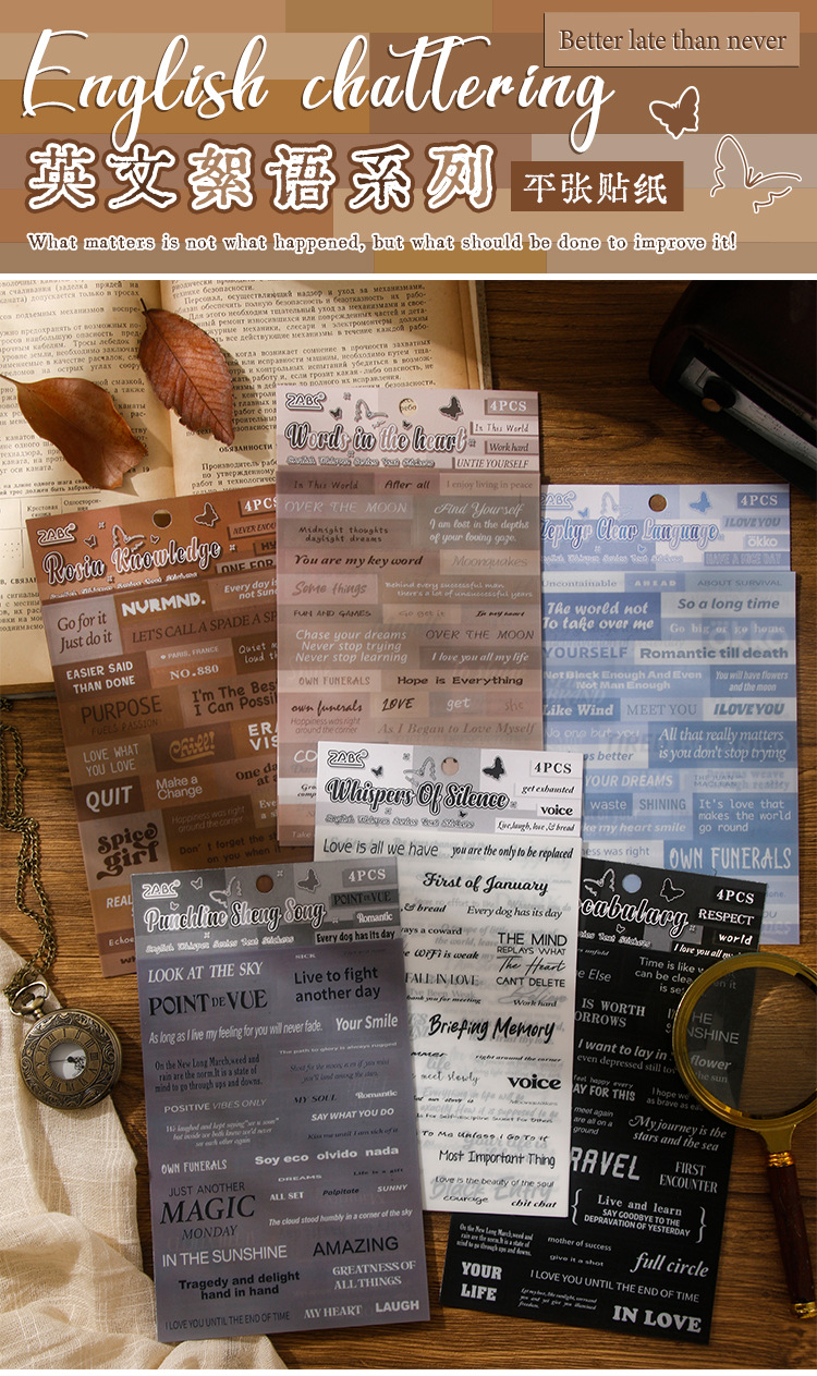 Serie de susurros en inglés Serie de sal Frases creativas en inglés Pet Libro de mano en inglés Material de decoración Pegatinas Pegatinas Transfronterizo