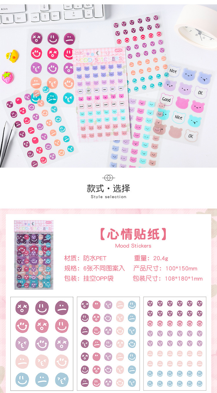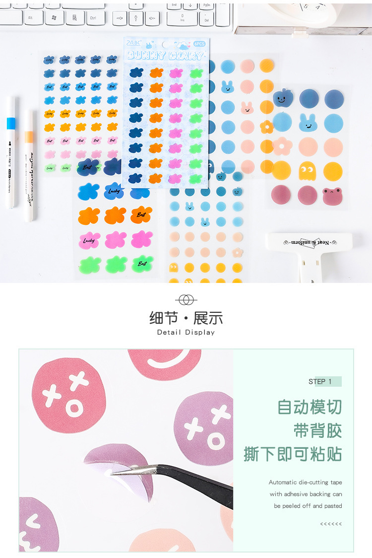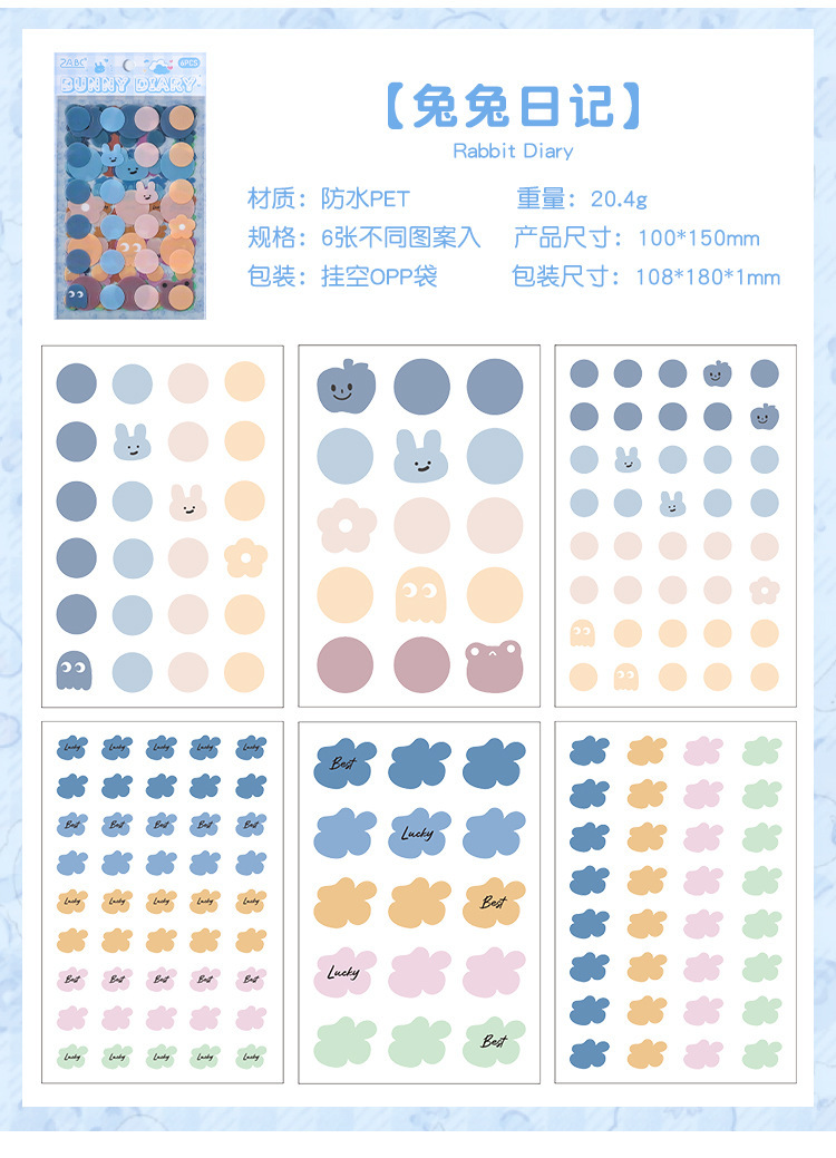 | Color | 1 pegatina de Estado de ánimo, 2 marcas de felicidad, 3 diarios de conejos, 4 sonrisas llenas |