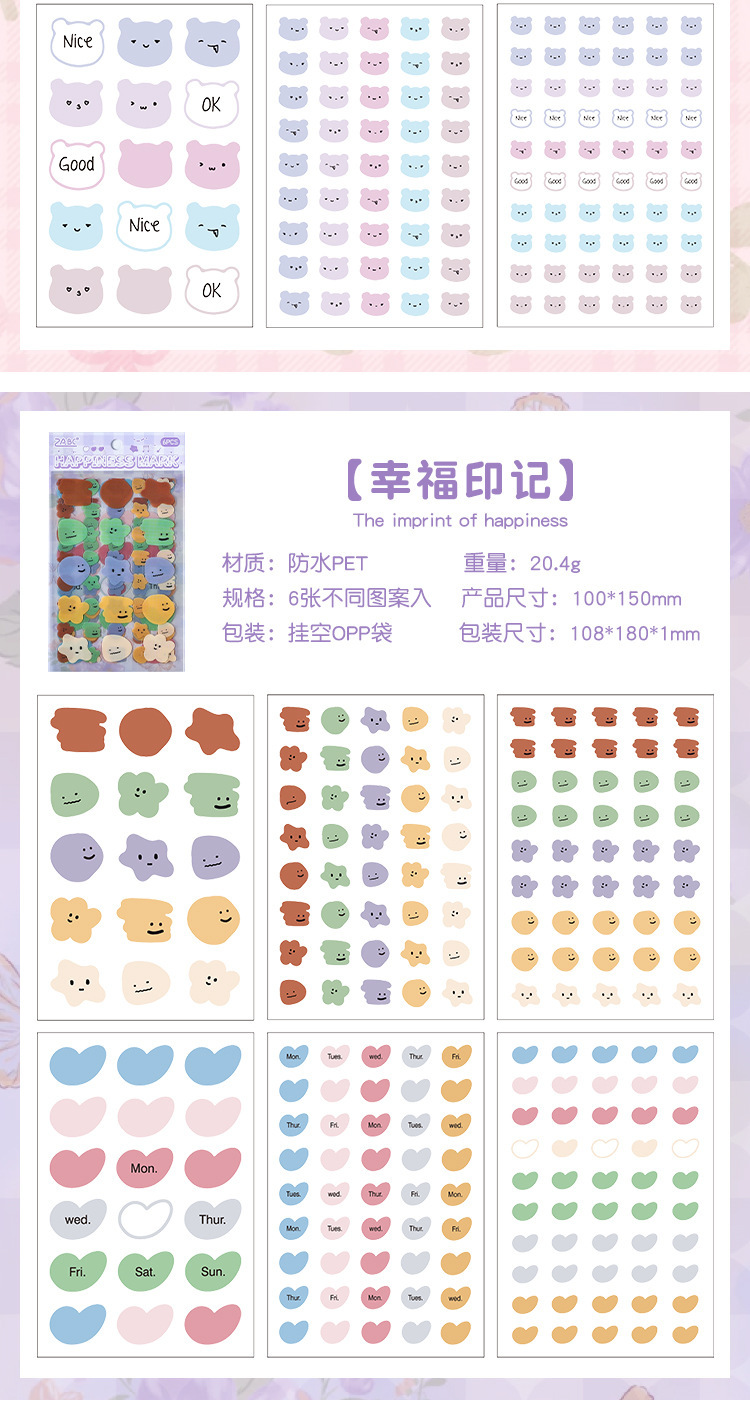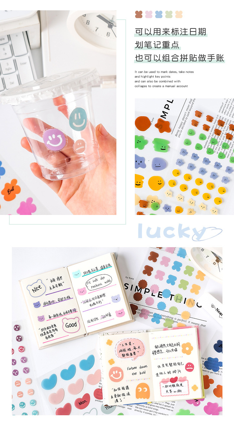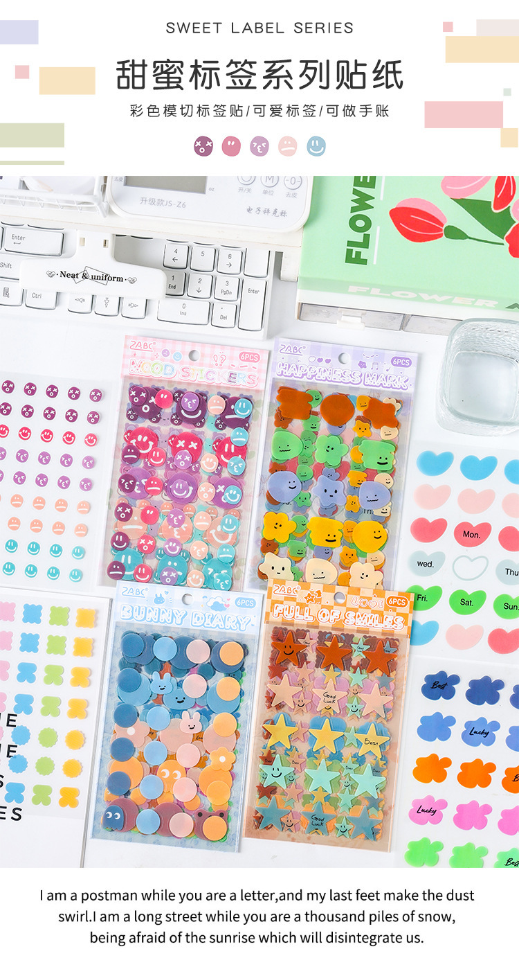 Etiquetas dulces transparentes pegatinas impermeables para mascotas diy diario pegatinas transfronterizas morandi color pegatinas de humor