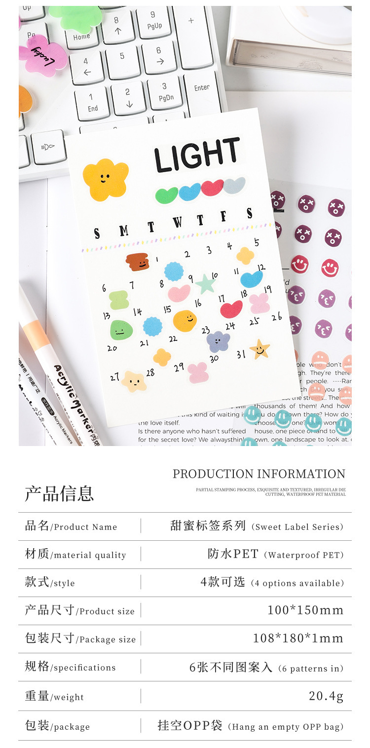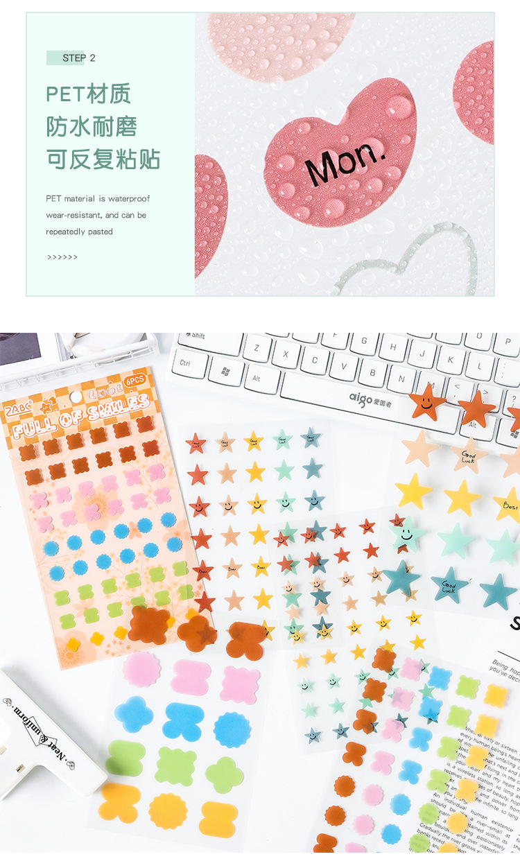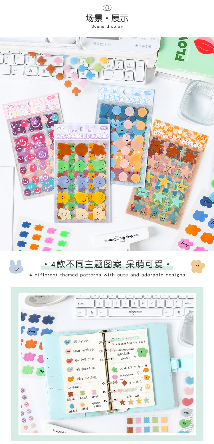 Etiquetas dulces transparentes pegatinas impermeables para mascotas diy diario pegatinas transfronterizas morandi color pegatinas de humor