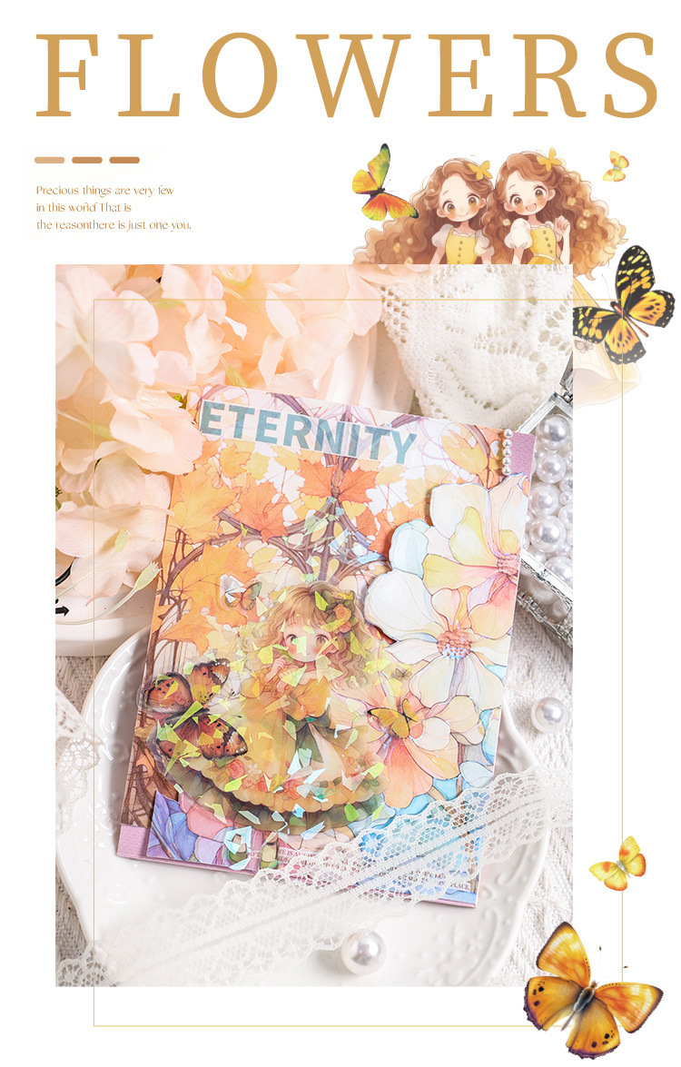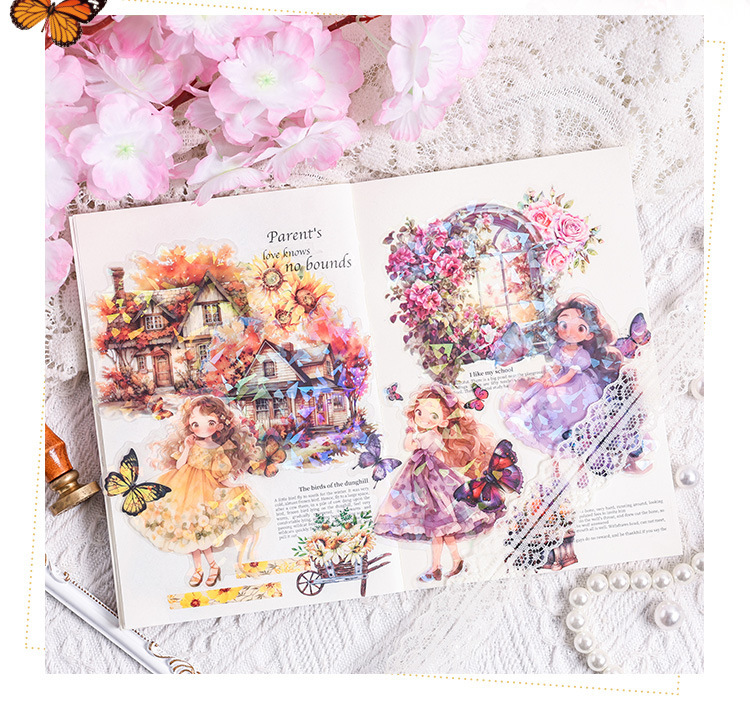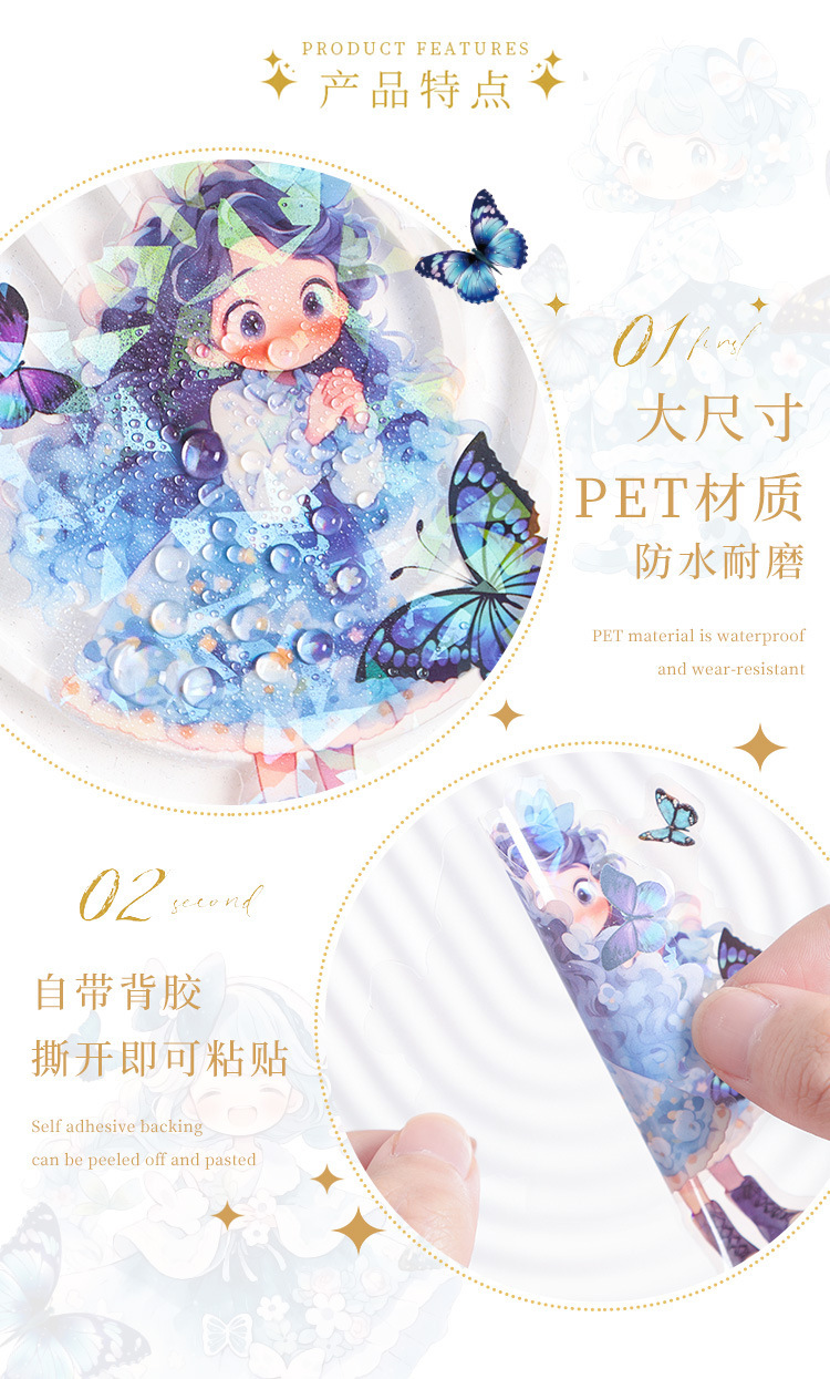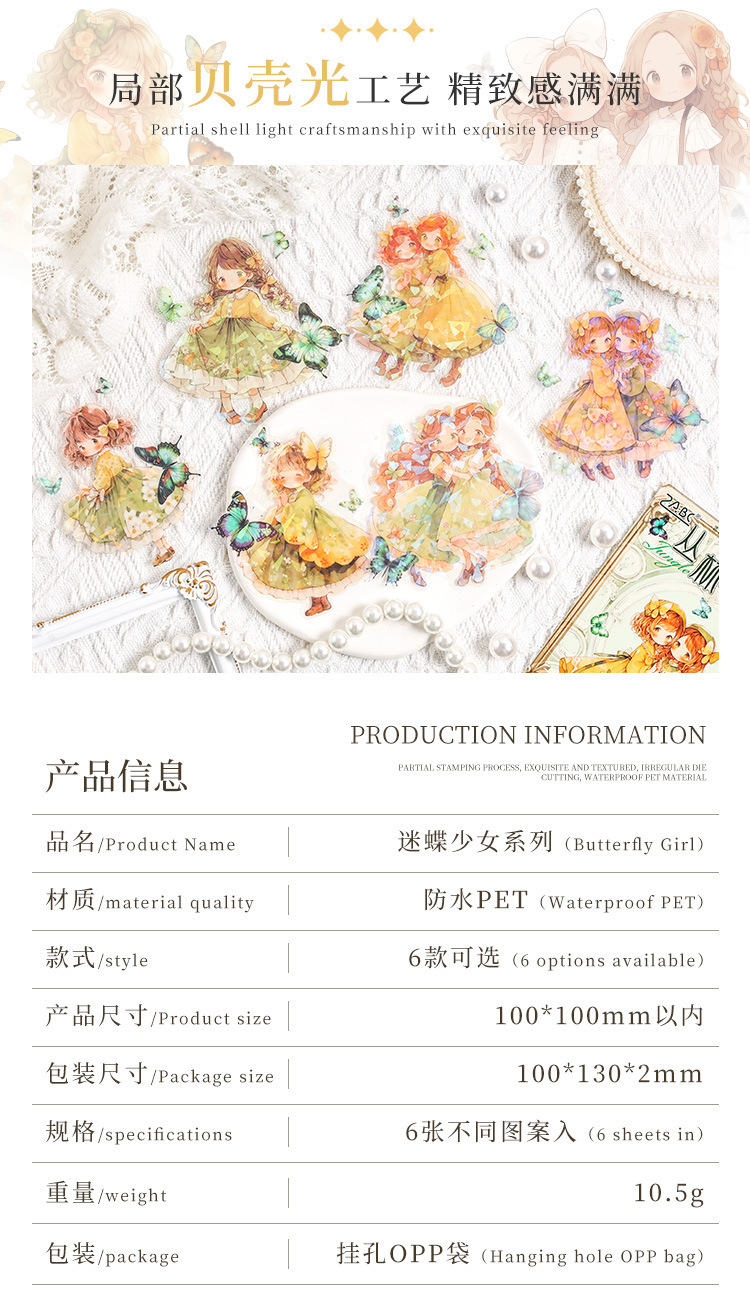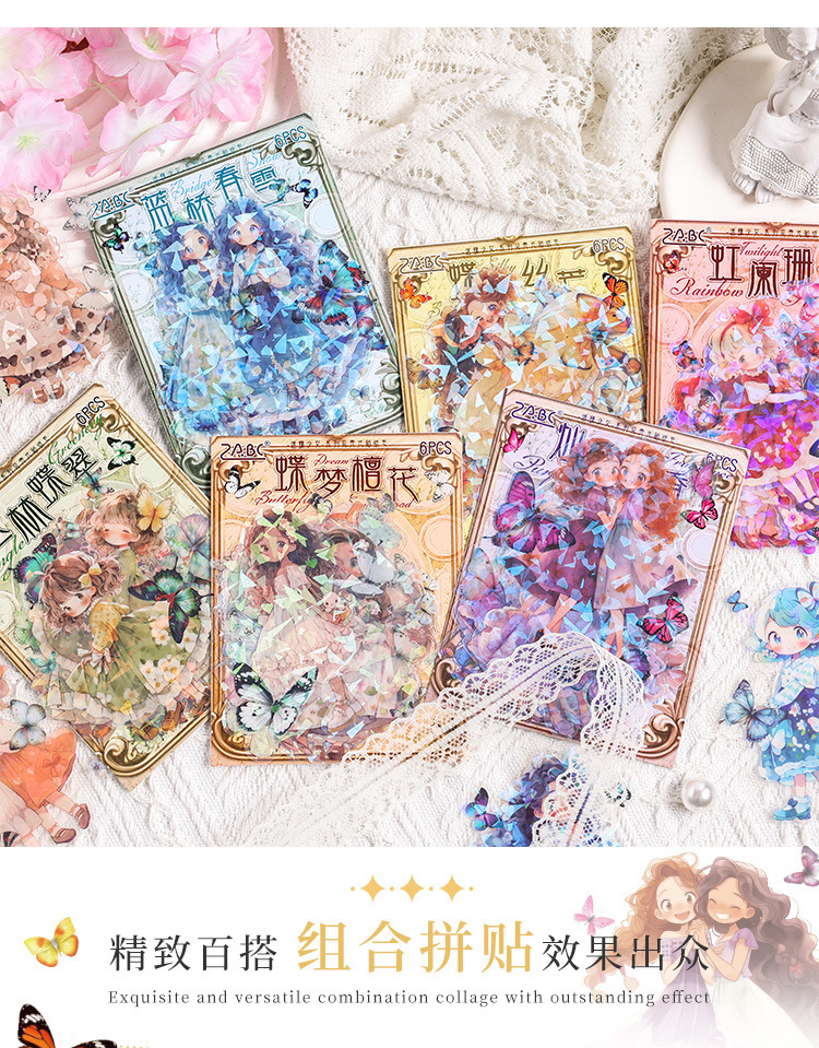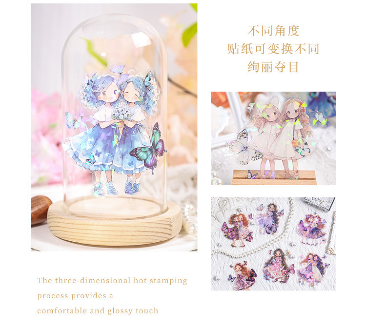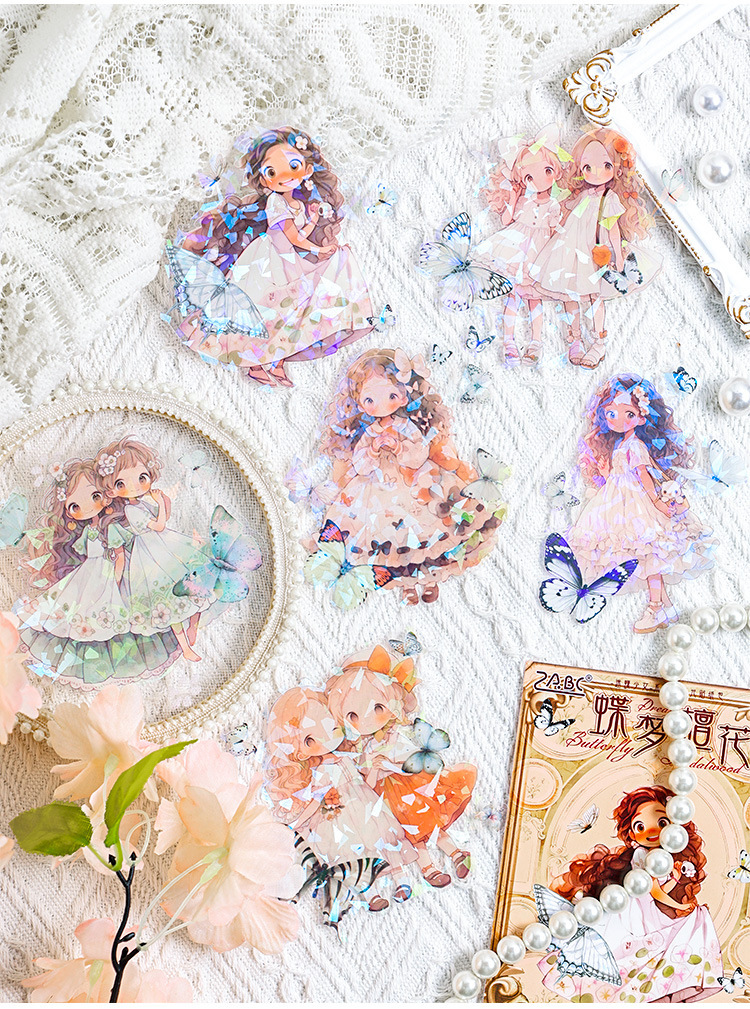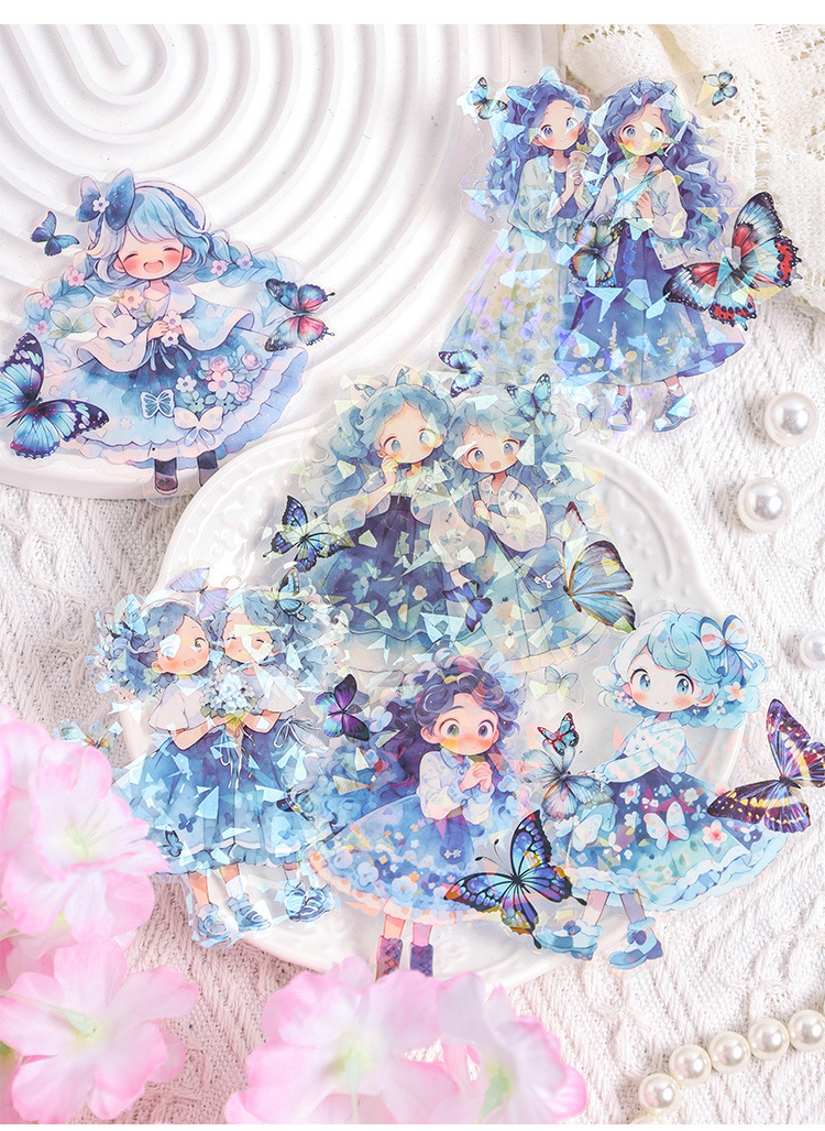 Misty mariposa chica conchas pegatinas láser luz bolsas DIY pegatinas de mascotas impermeables transparentes pegatinas de papelería adorables chicas