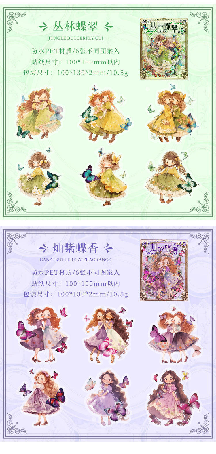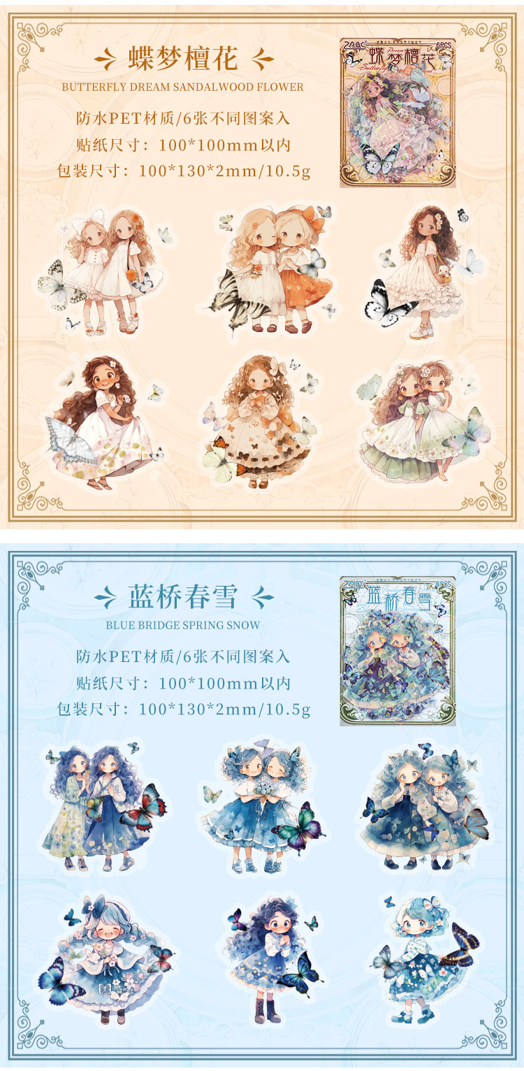 | Color | 1 Butterfly Dream sándalo, 2 Rainbow lanshan, 3 Butterfly soft Silk mang, 4 Blue Bridge Spring snow, 5 Jungle Butterfly green, 6 canzi Butterfly Fragrance |