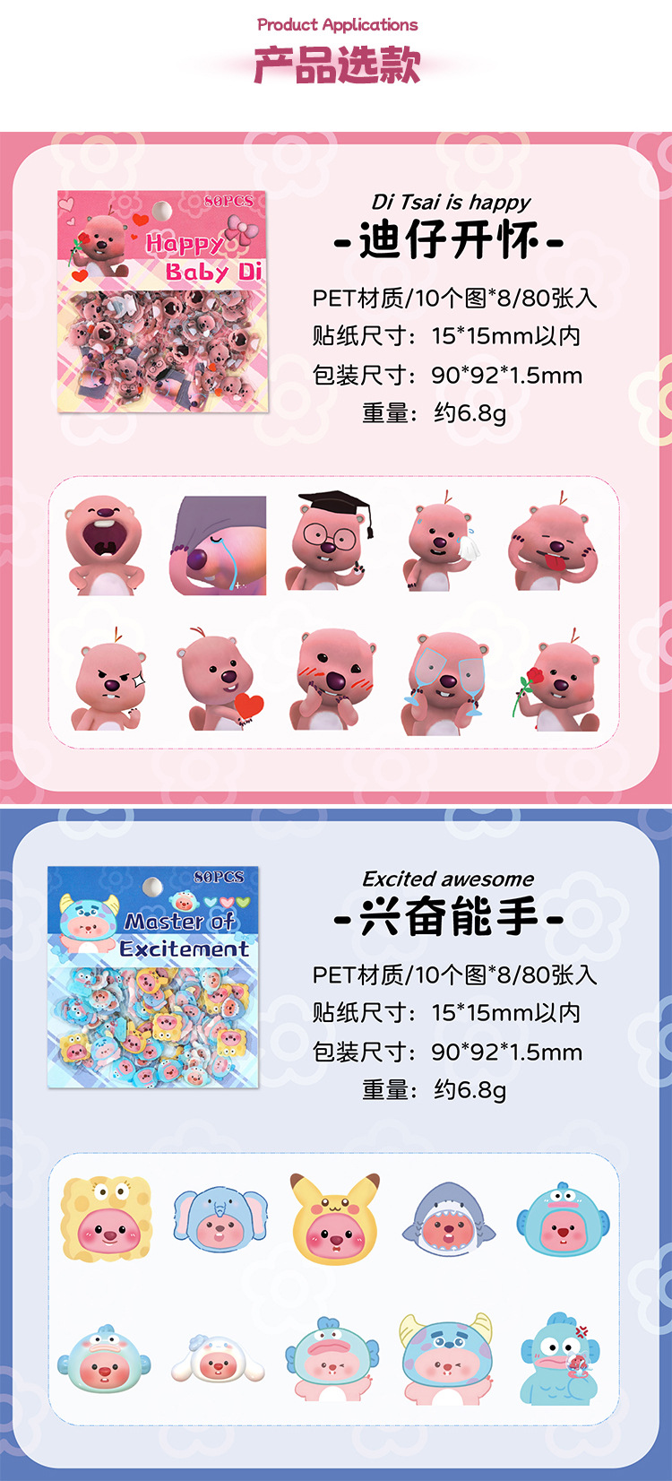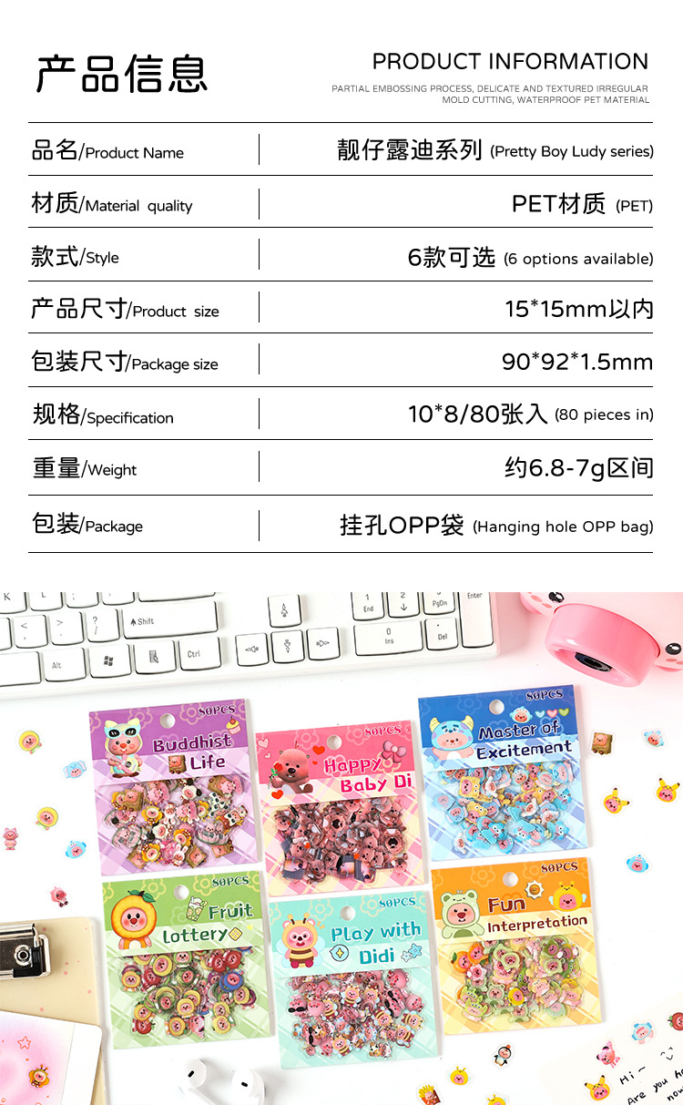 Pretty Boy Rudy Series Pet Impermeable Cute Cartoon Pegatinas para niños Pet creativo Material de película de corte Pet Paquete de pegatinas de cuenta manual