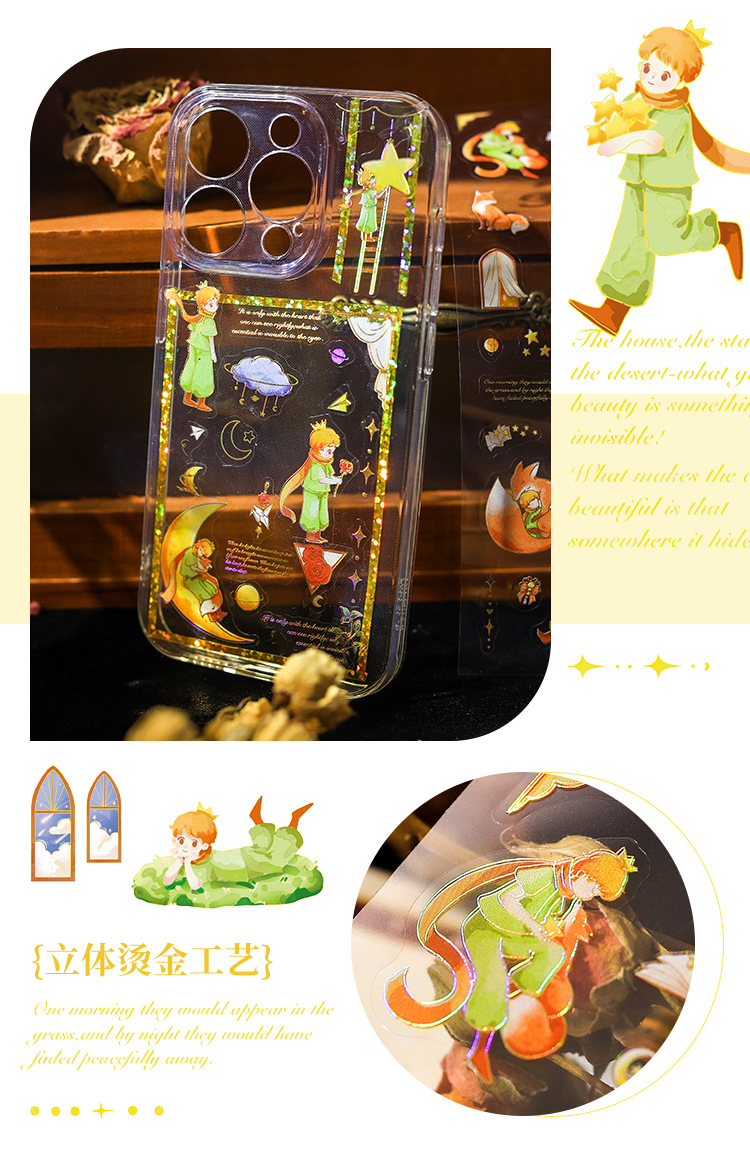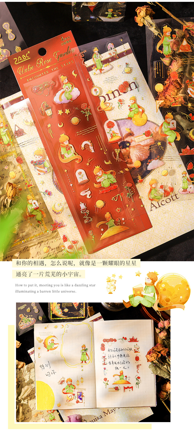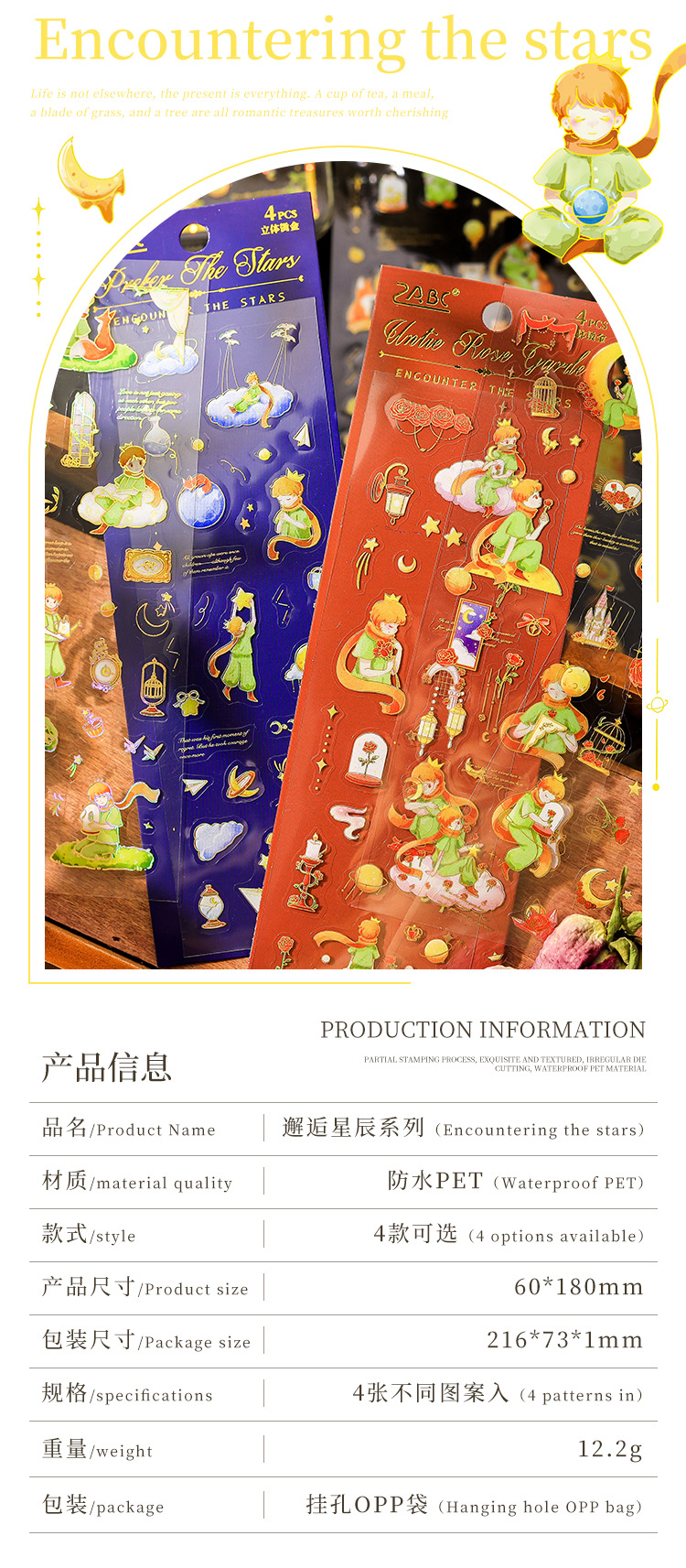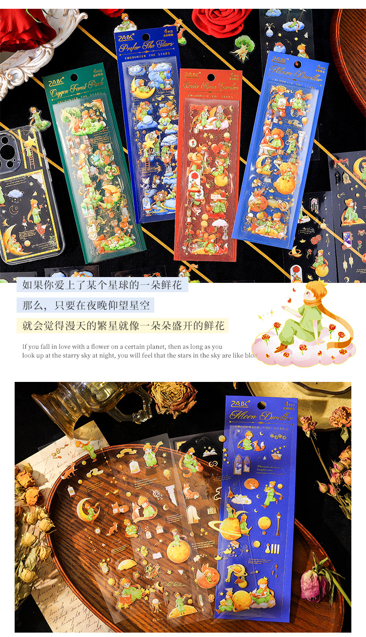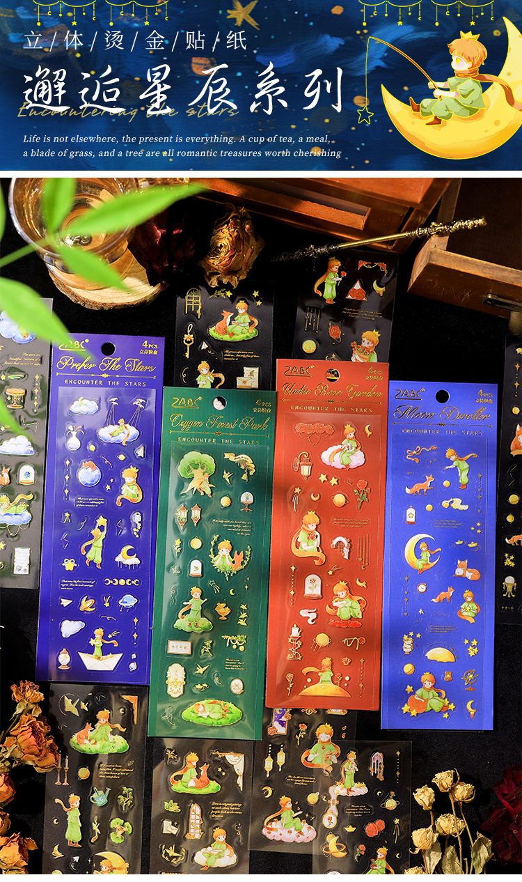 Encuentro con estrellas Pegatinas planas El principito estampado en caliente tridimensional Personaje de cuento de hadas Cuenta de mano Material de base Pegatinas 4 estilos