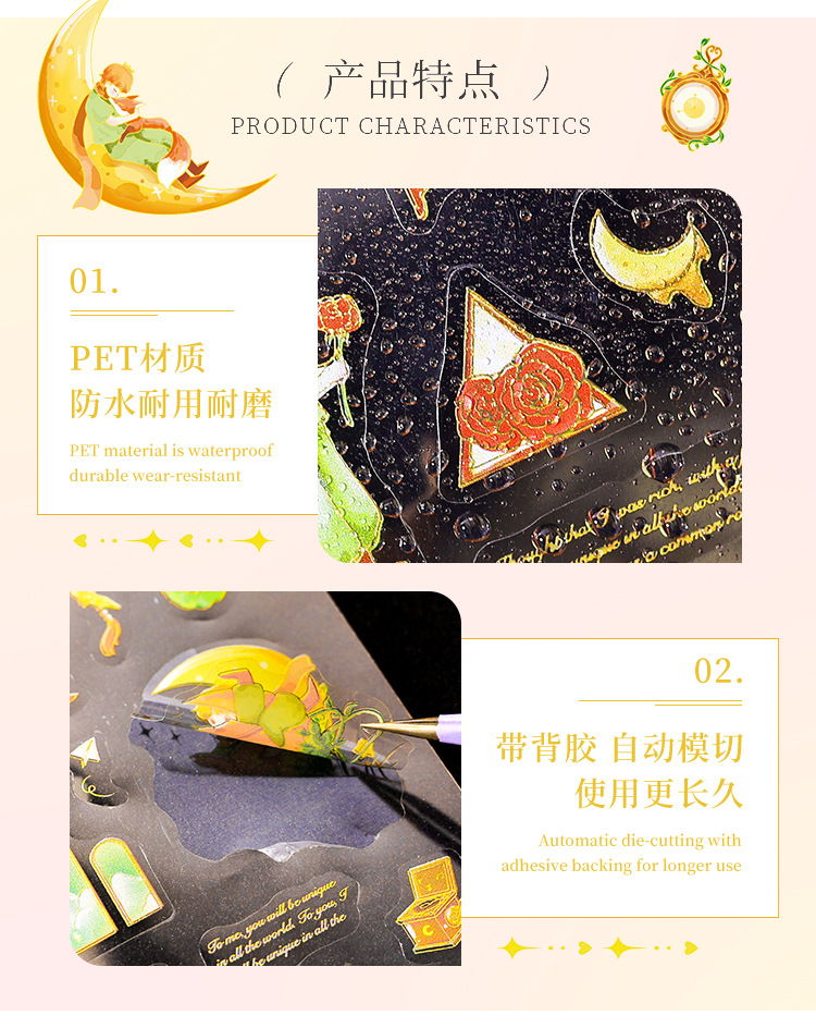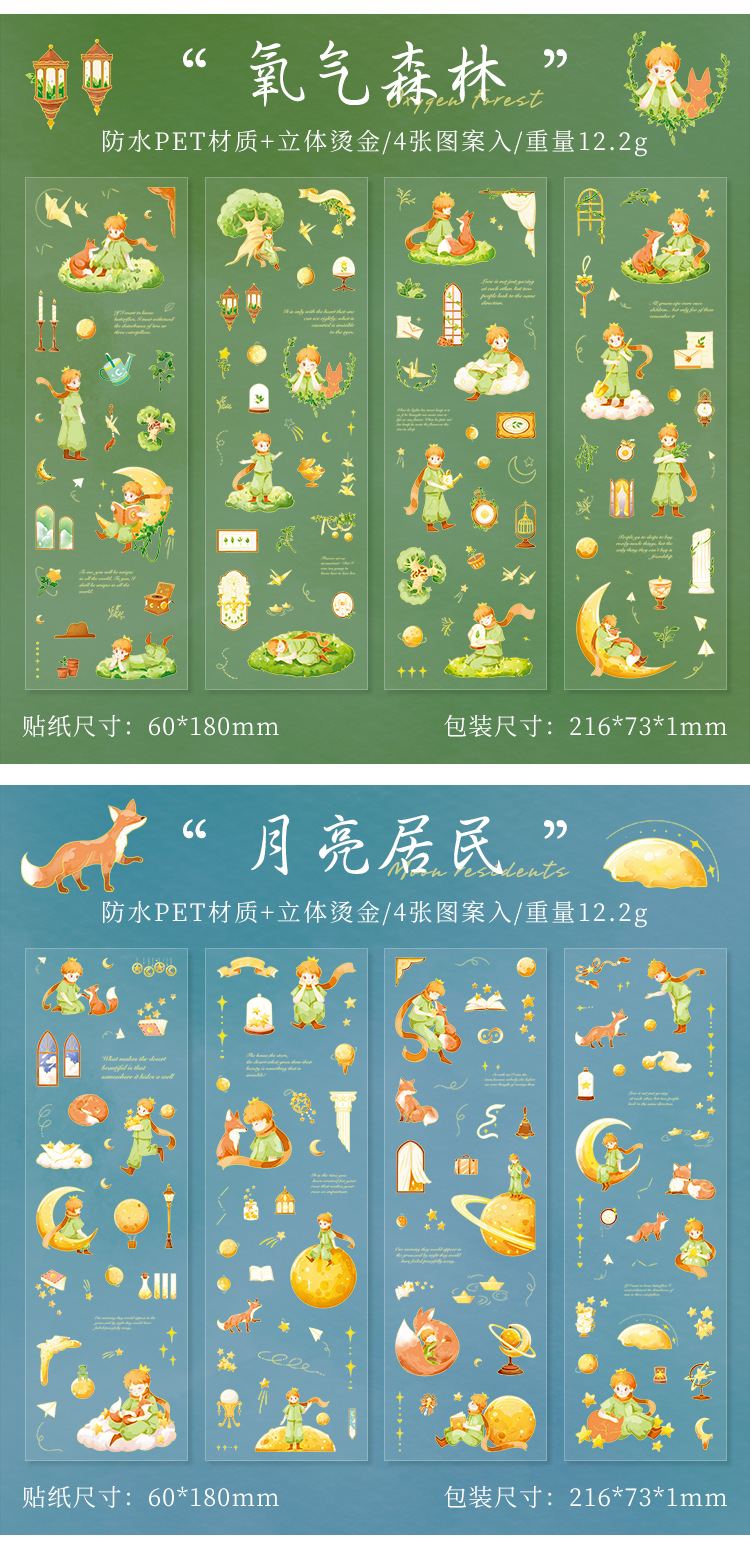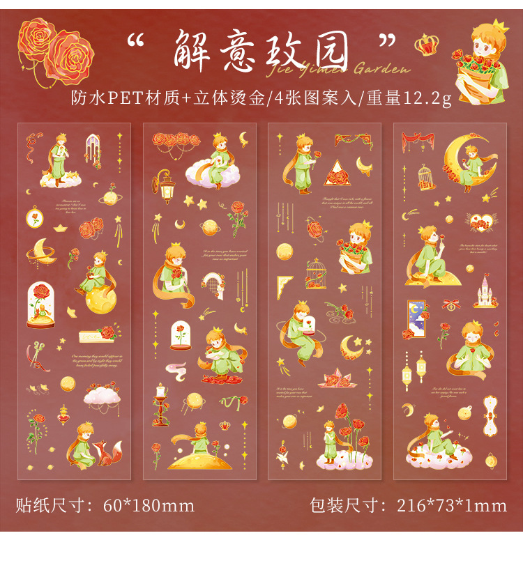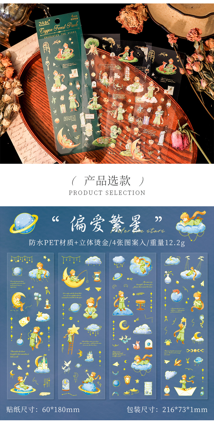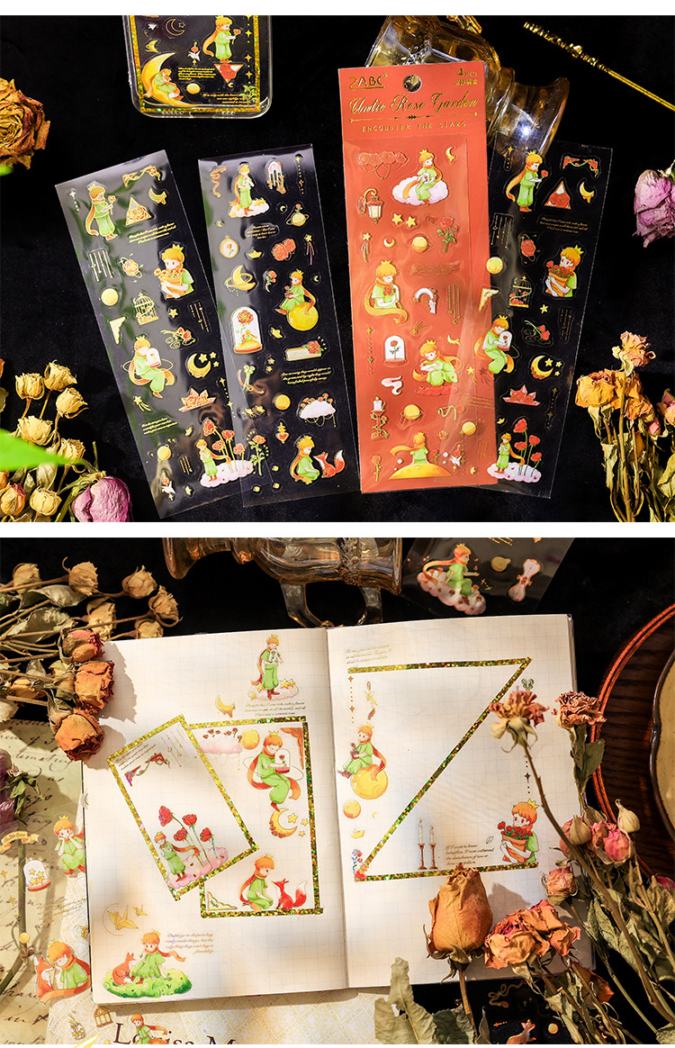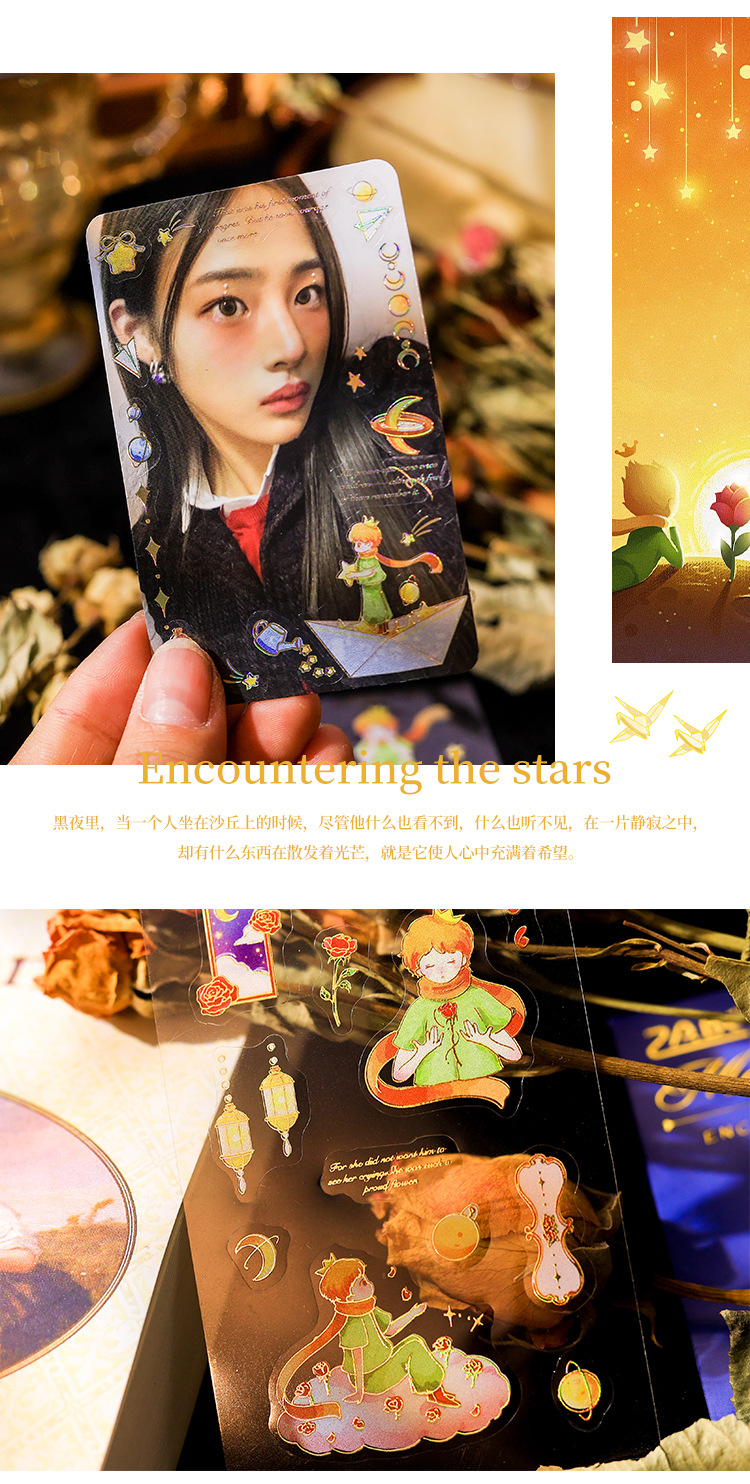 Encuentro con estrellas Pegatinas planas El principito estampado en caliente tridimensional Personaje de cuento de hadas Cuenta de mano Material de base Pegatinas 4 estilos