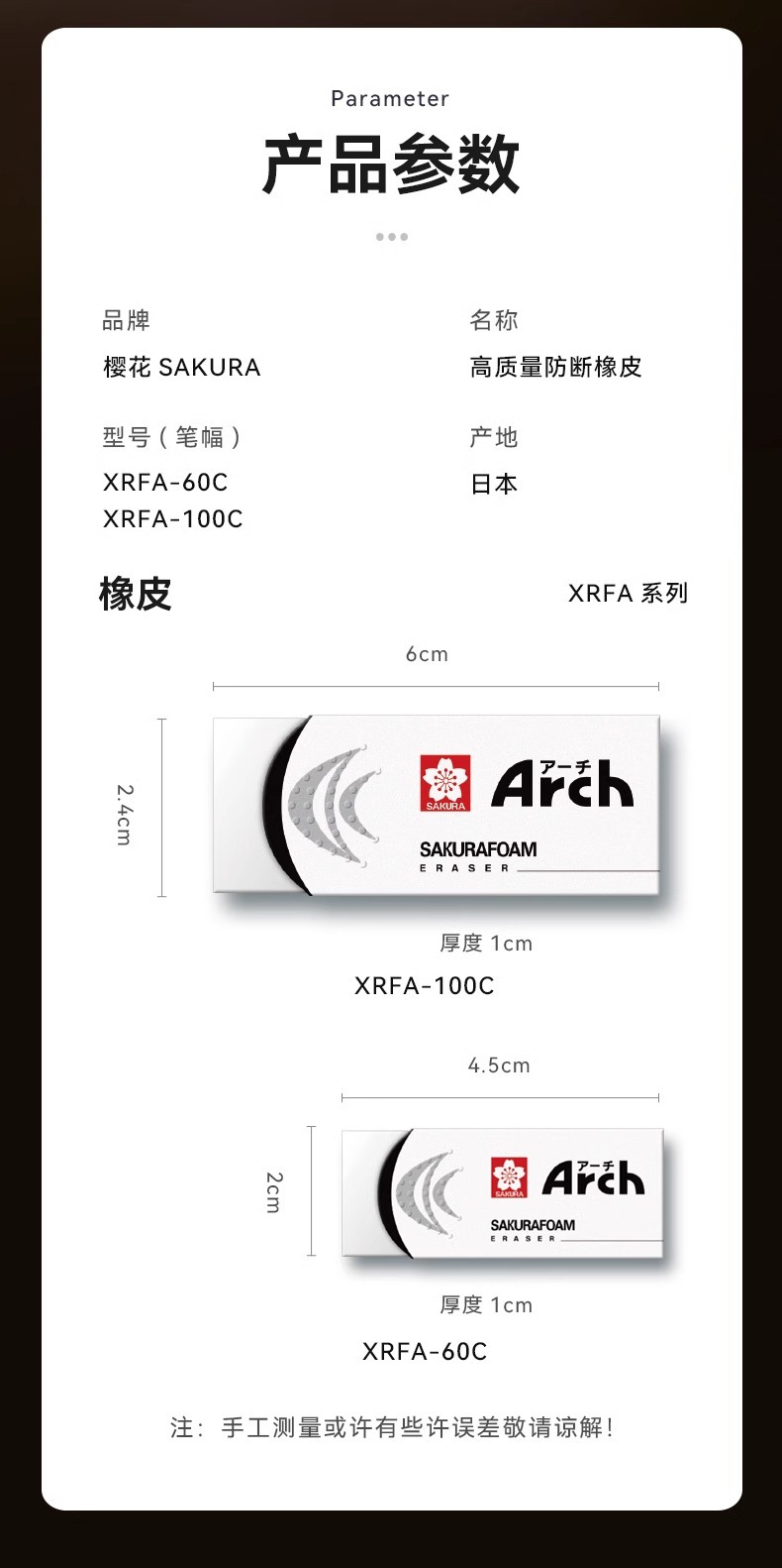 Sakura goma de alta calidad Arch goma XRFA - 100C / 60C menos residuos fácil de limpiar