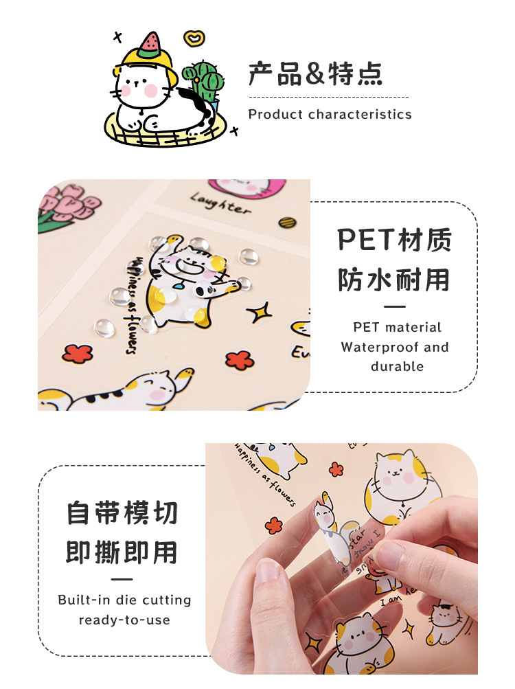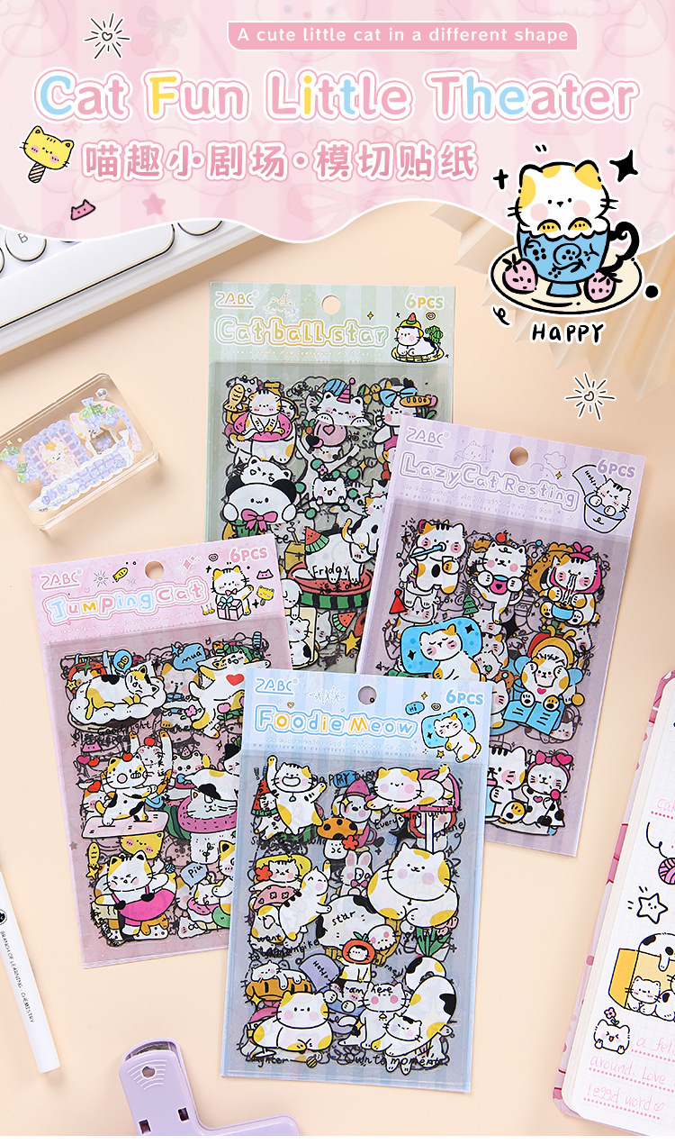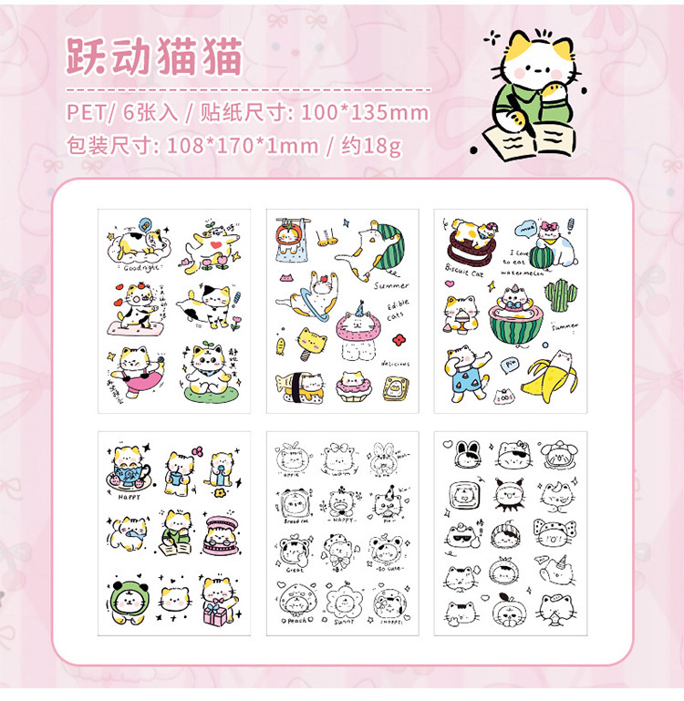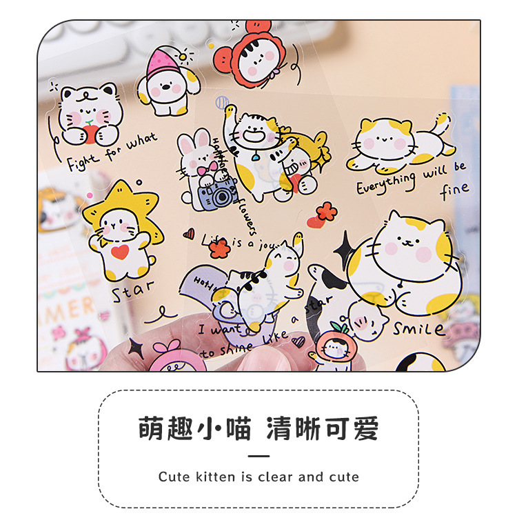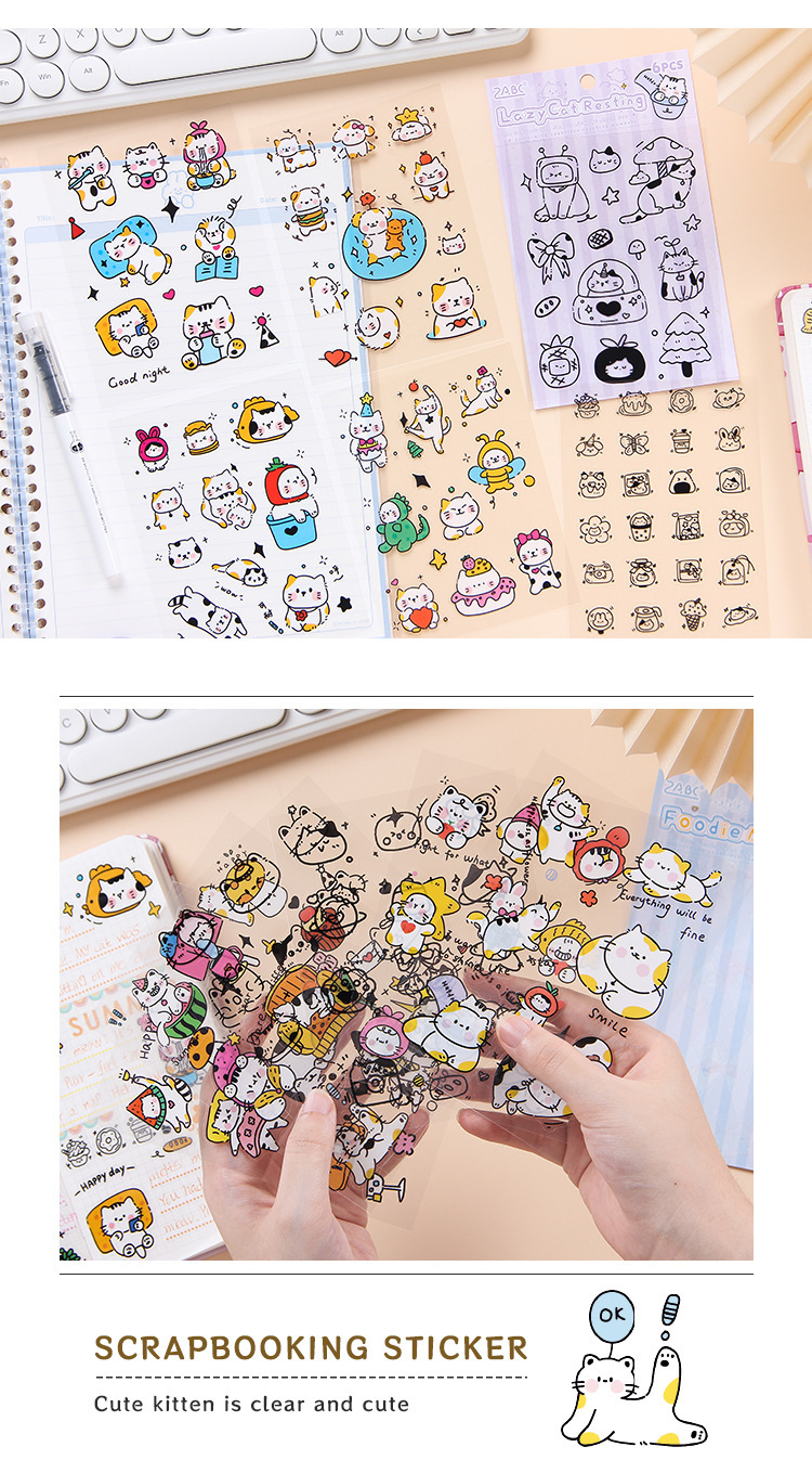 Pequeño teatro transparente pegatinas de mascotas impermeables DIY pegatinas de diario pegatinas de libro de mano adorable gato pegatinas de libro de mano animal