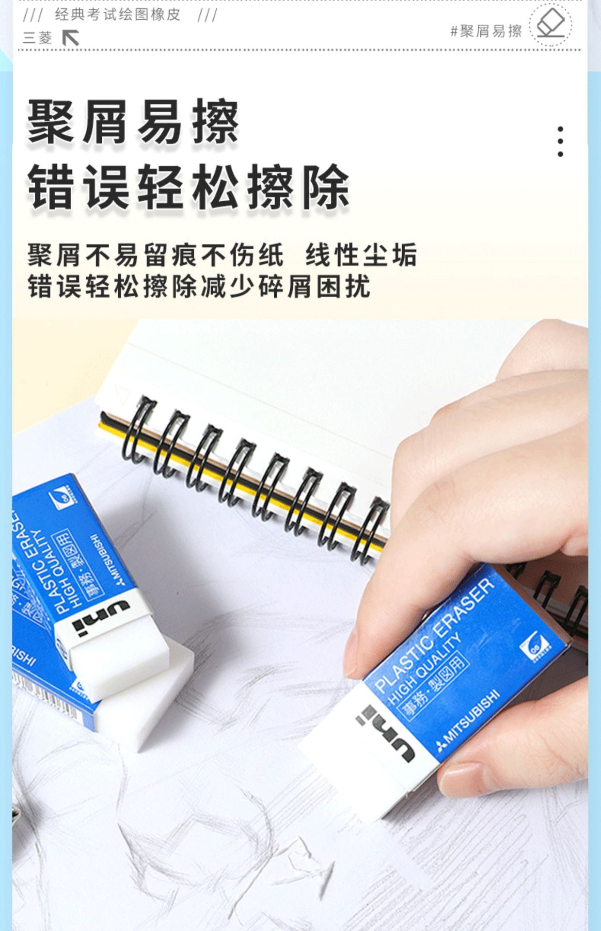Japón UNI tres borradores de goma borradora estudiantes con dibujo limpio menos caspa no es fácil de dejar marcas EP - 60 / 105