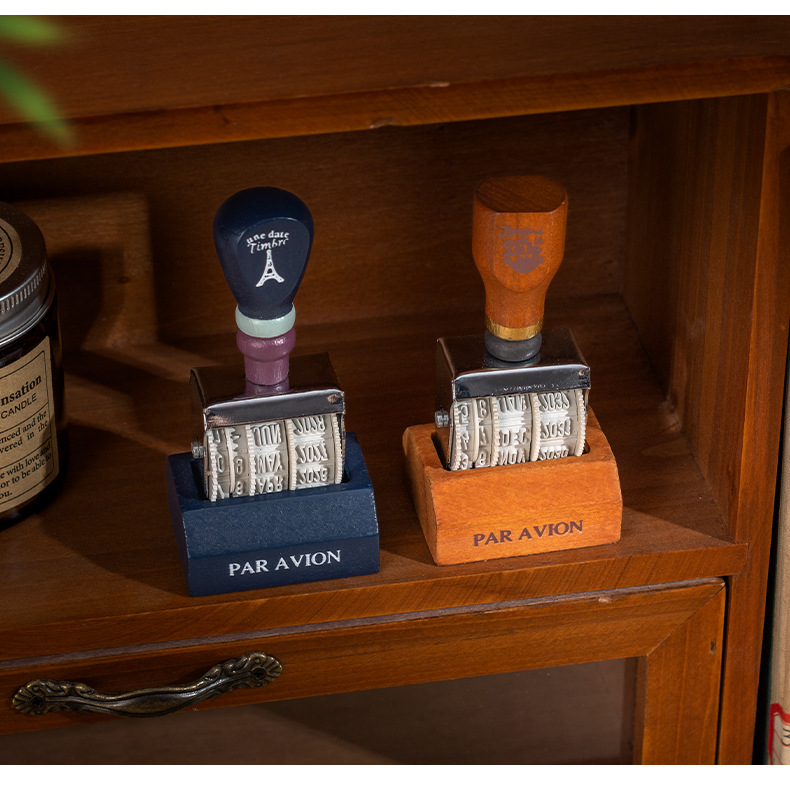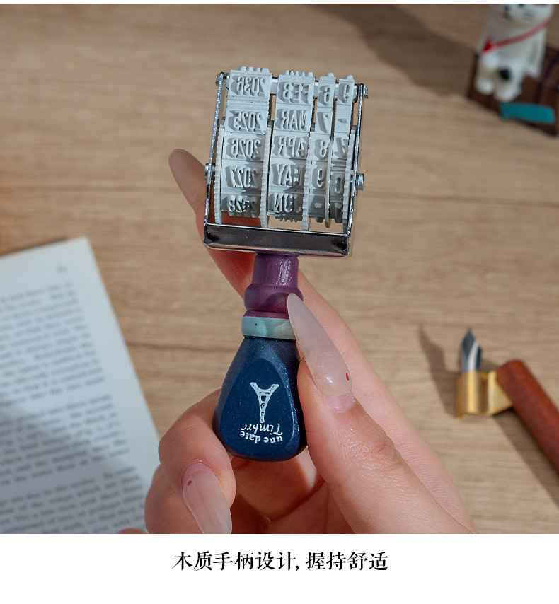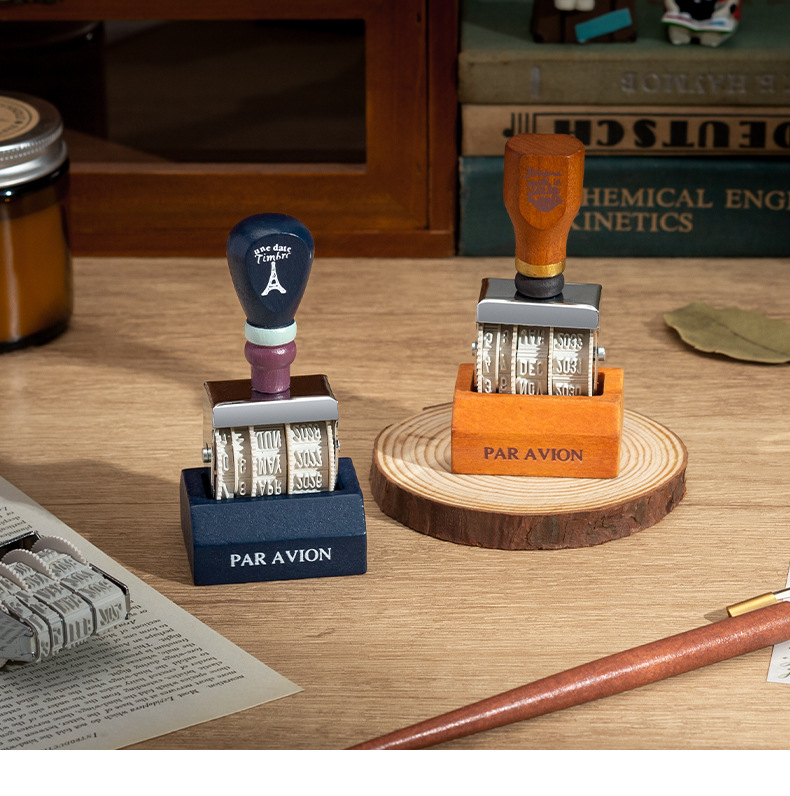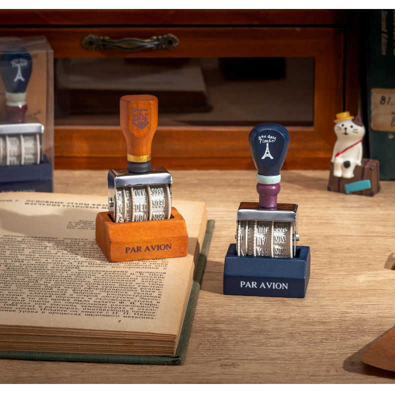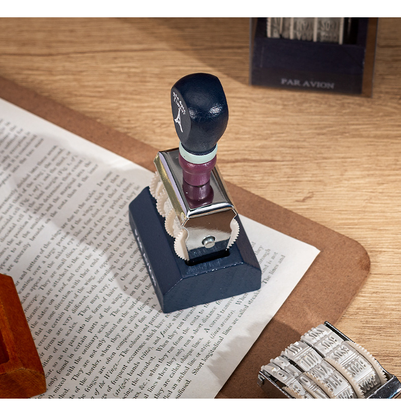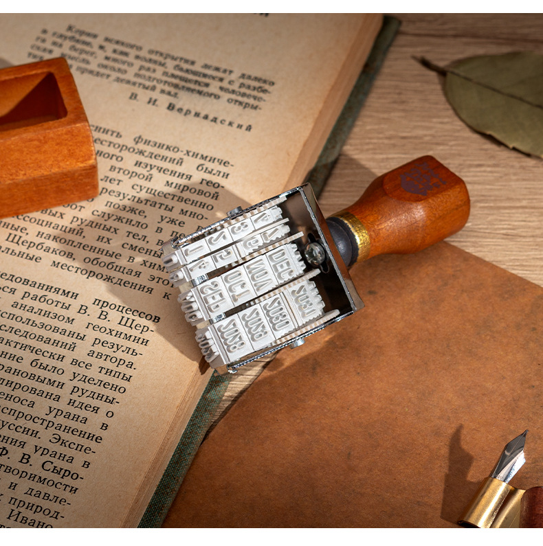 Lleno de energía sello de fecha retro libro de mano de bricolaje año, mes, día sello de rodillo sello de fecha transfronteriza