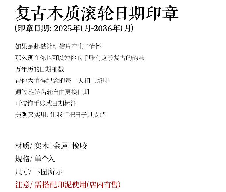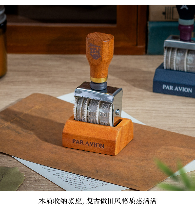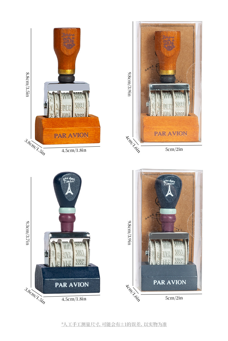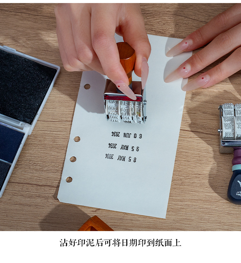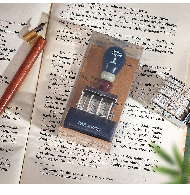 Lleno de energía sello de fecha retro libro de mano de bricolaje año, mes, día sello de rodillo sello de fecha transfronteriza