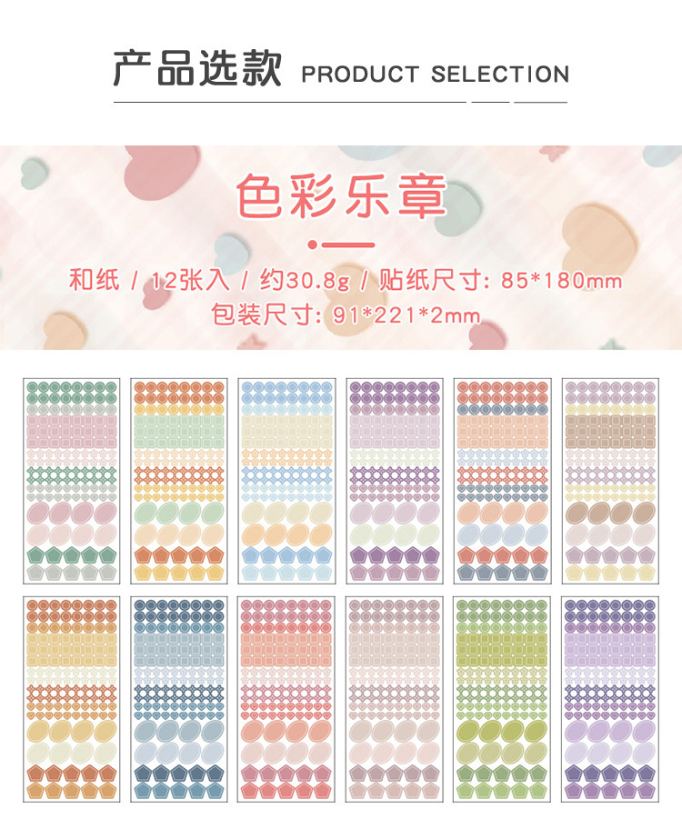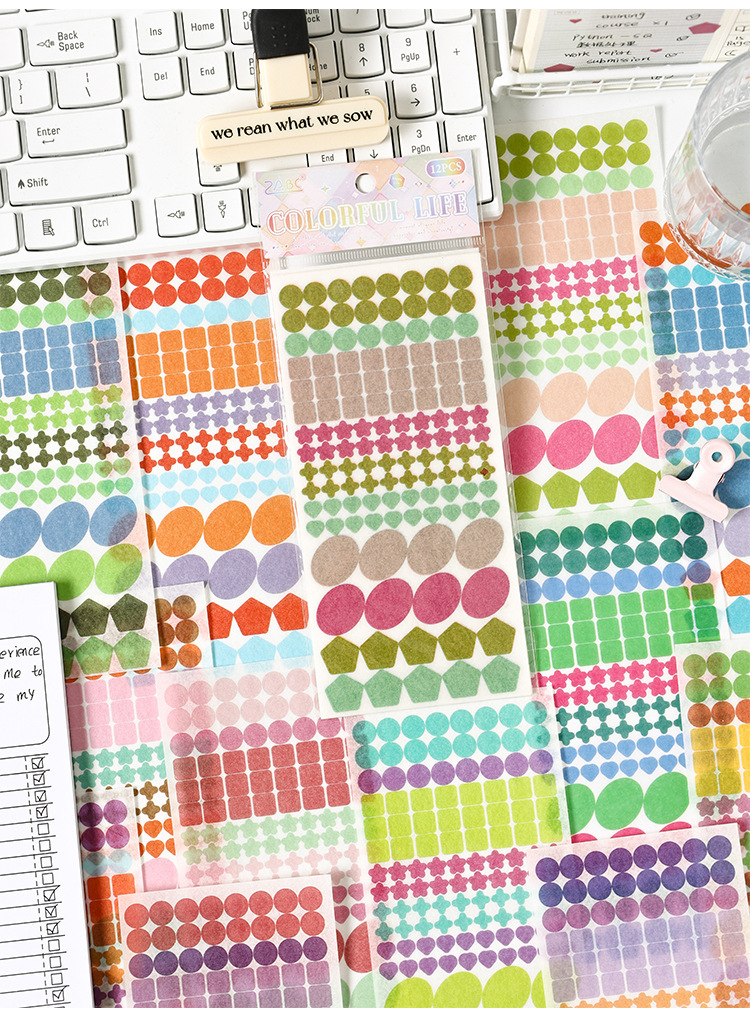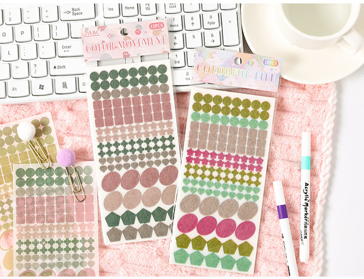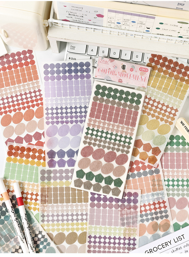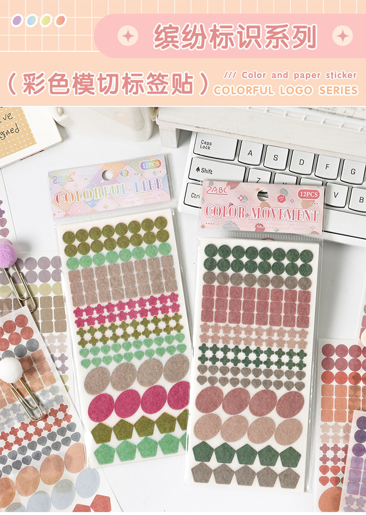 Logotipo colorido y pegatinas de papel diy diario diario de mano pegatinas gráficas geométricas pegatinas de sello de color Morandi pegatinas