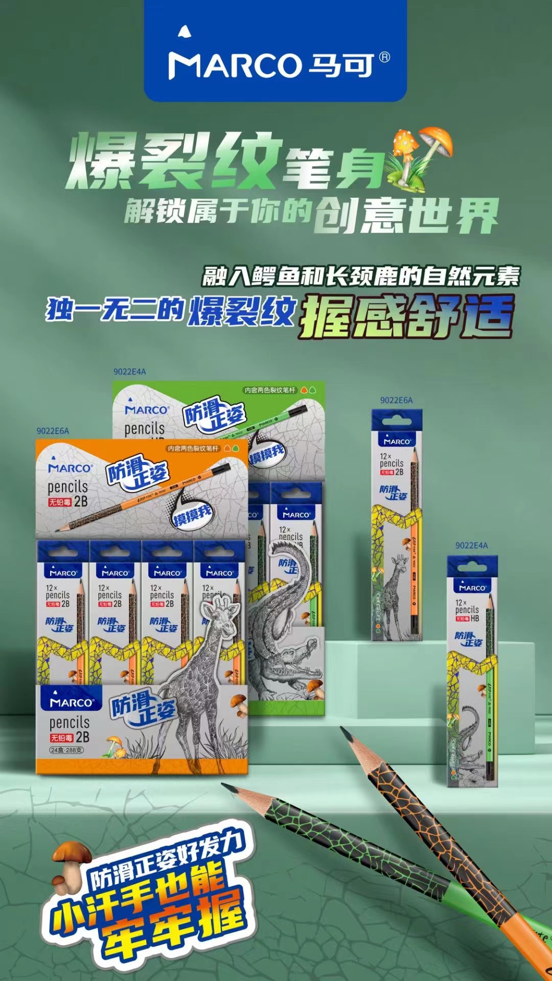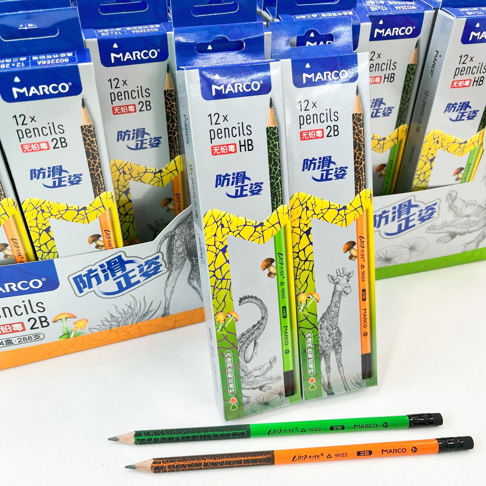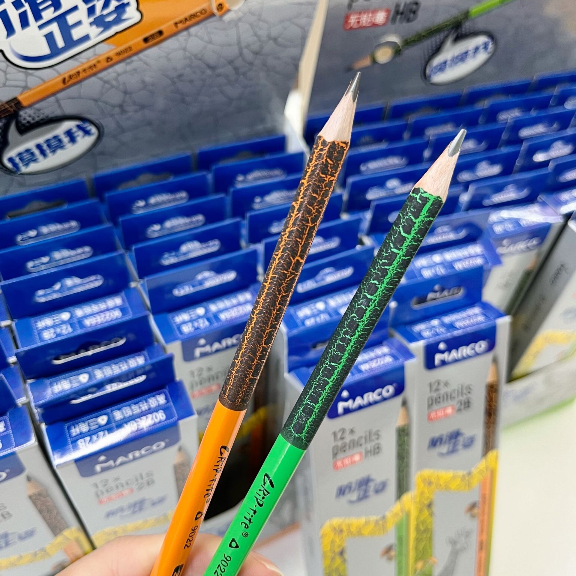 MARCO Marco explosión agrietamiento lápiz HB triángulo cabeza de cuero postura 2B lápiz de estudiante 9022E