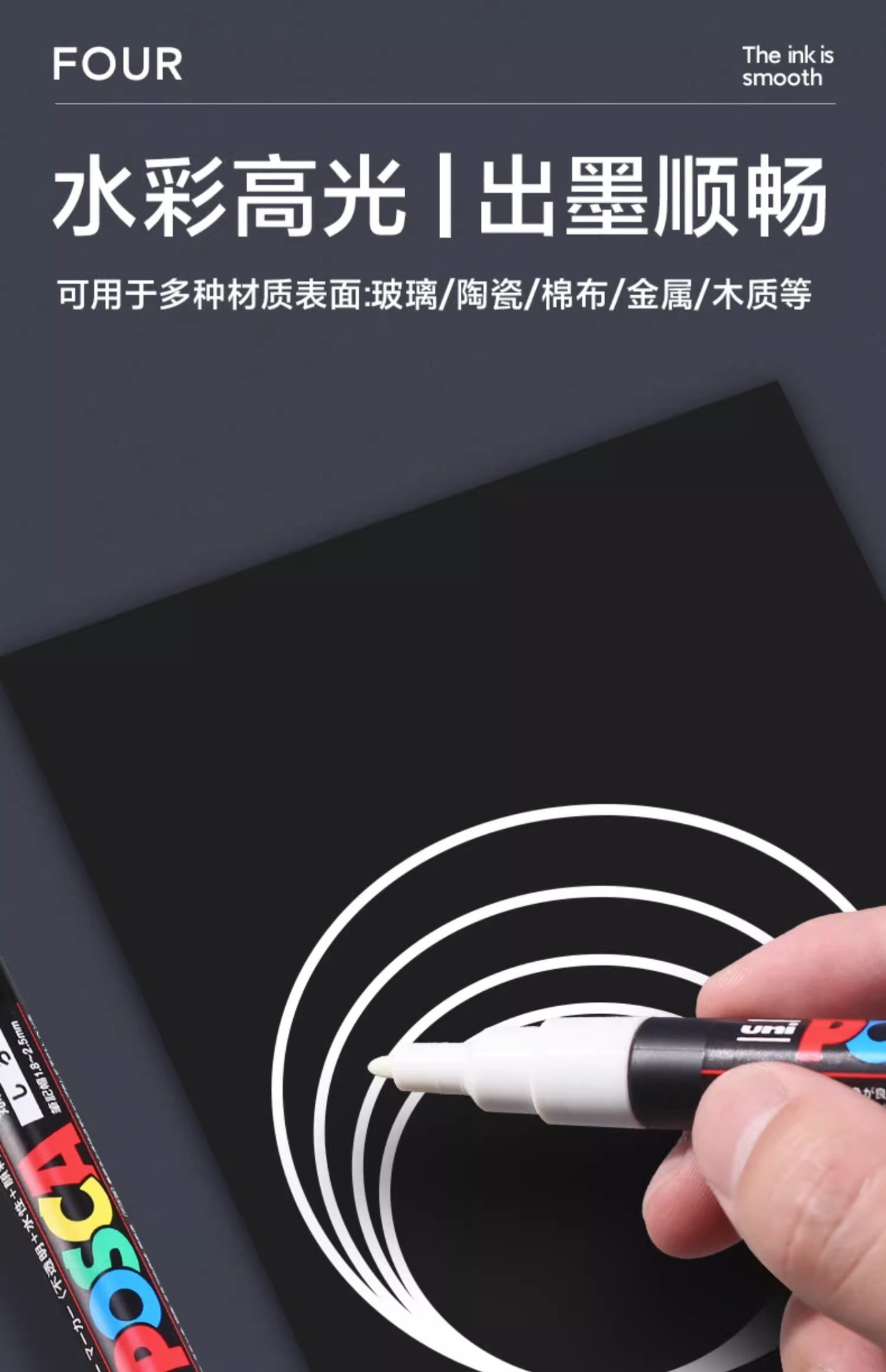 Japón uni Mitsubishi blanco marcador de acrílico dibujado a mano di-acrílico pintura tarjeta negra marcador blanco