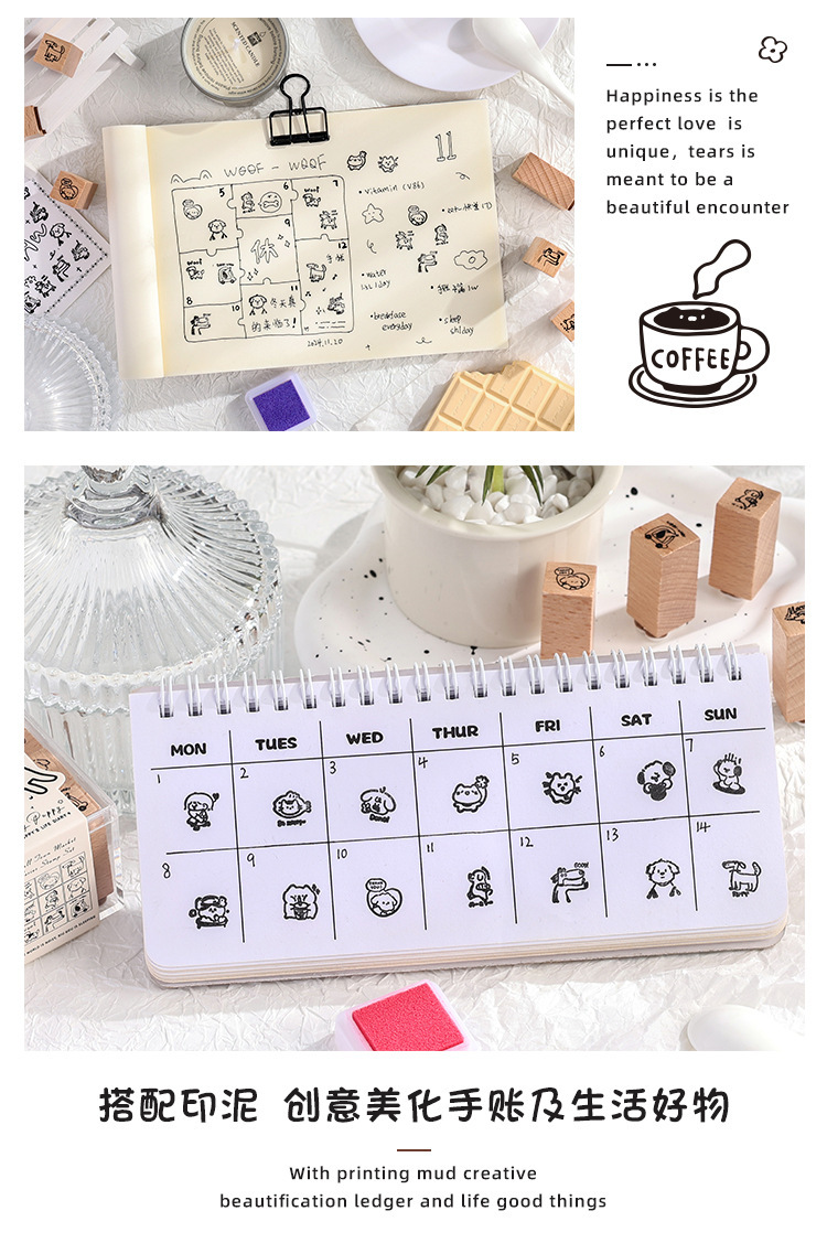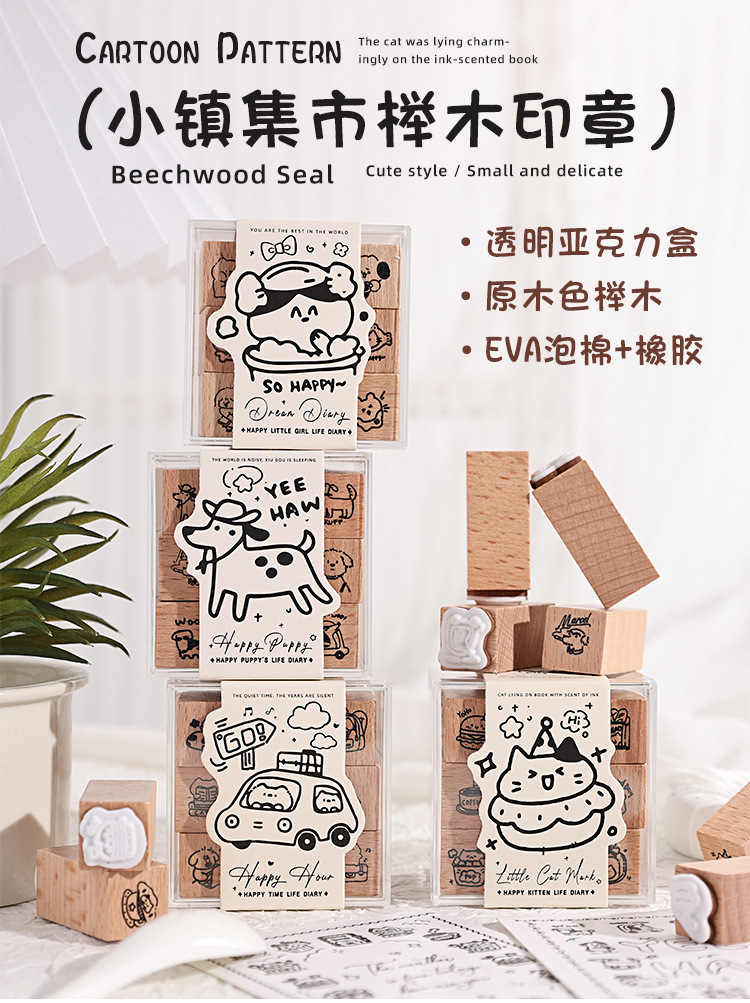 Boja de sello de dibujos animados de madera de la ciudad adorable animal diario sello de decoración sello de haya transfronterizo