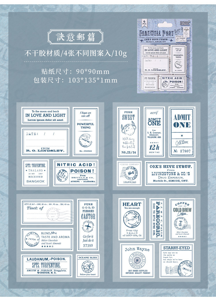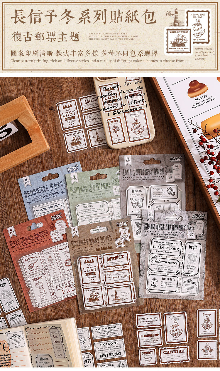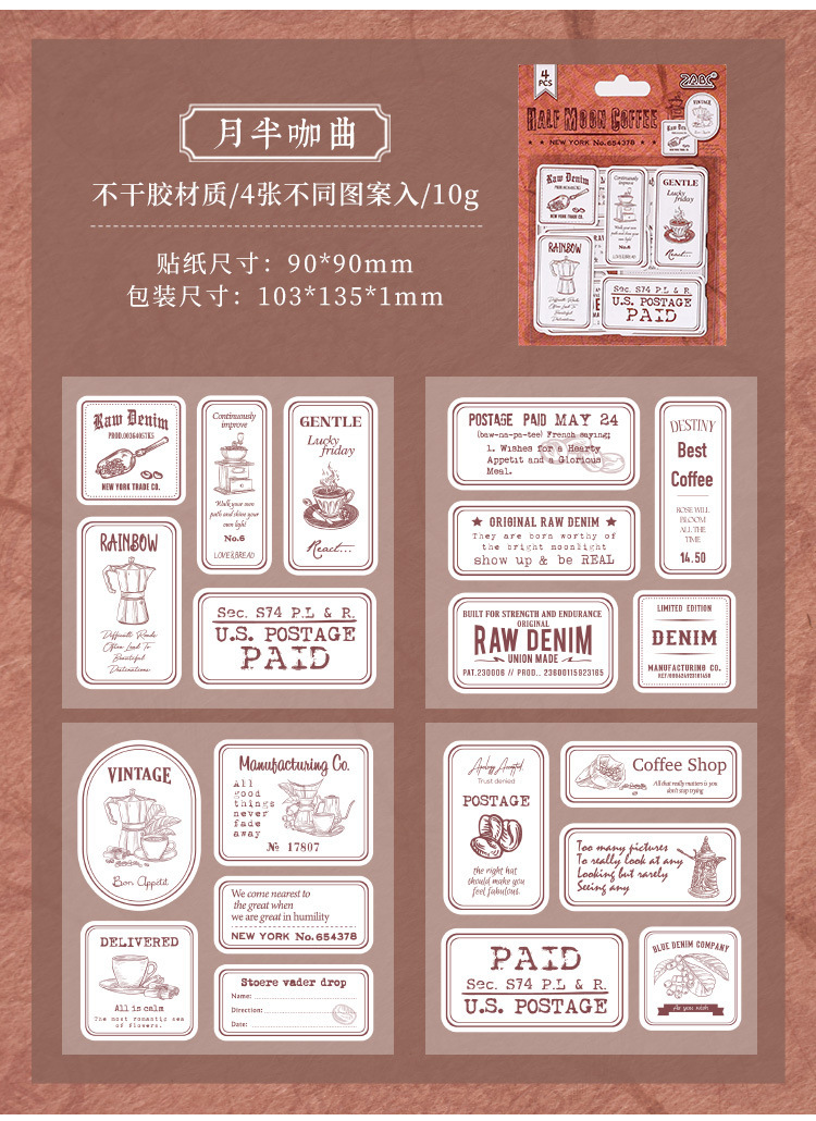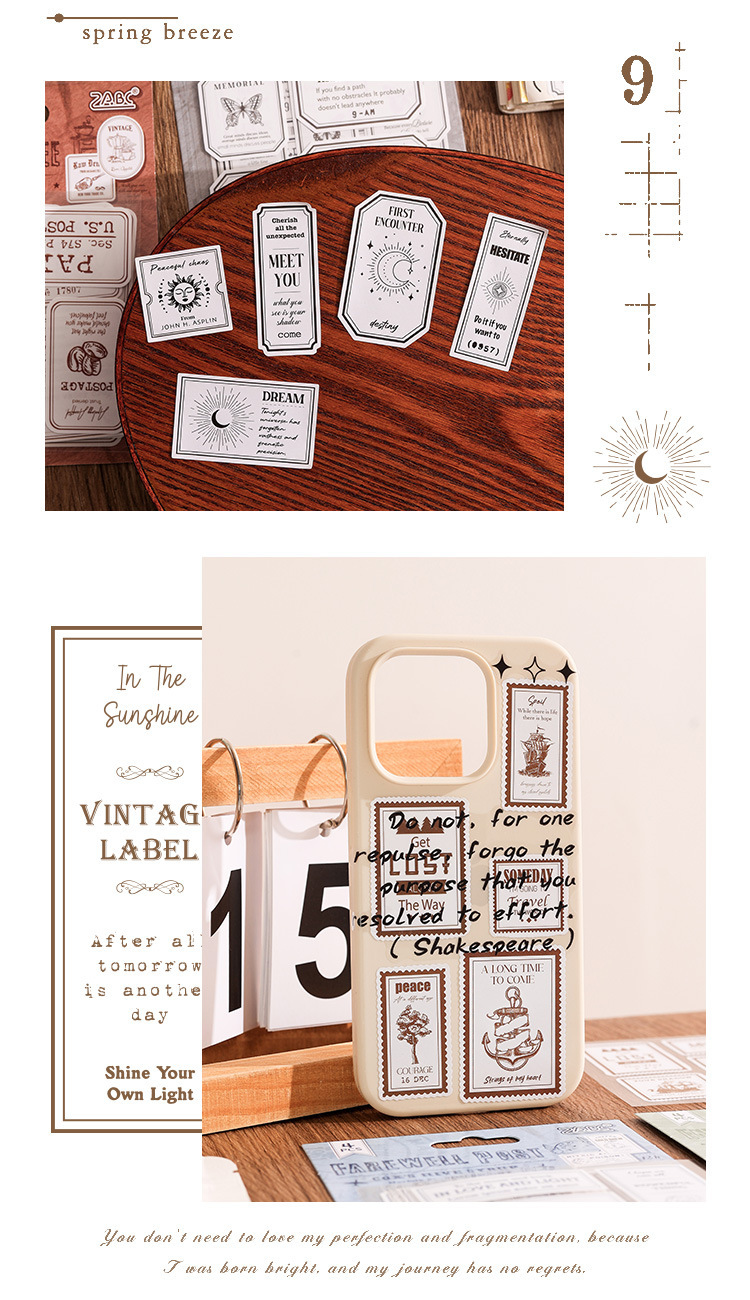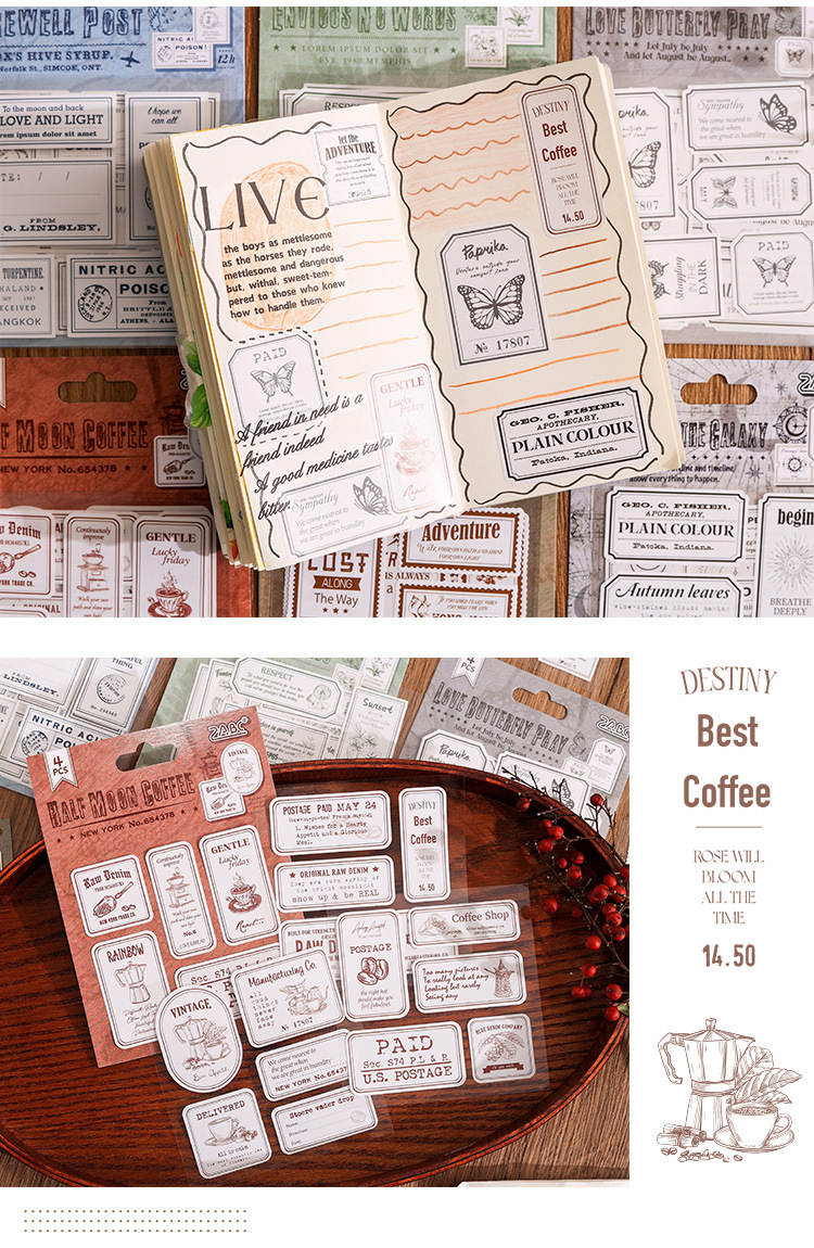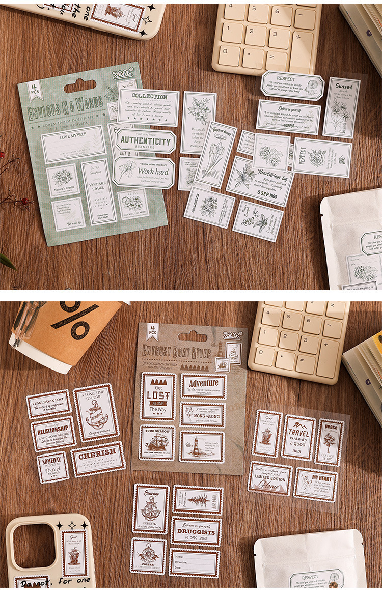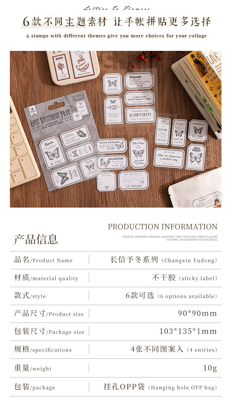 Changxin Yu Dong pegatinas adhesivas diy cuentas diarias pegatinas decorativas sellos retro transfronterizos material pegatinas en inglés