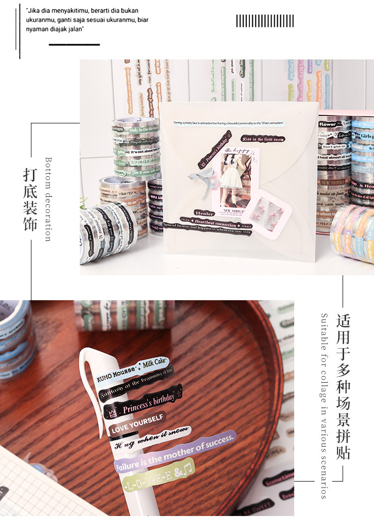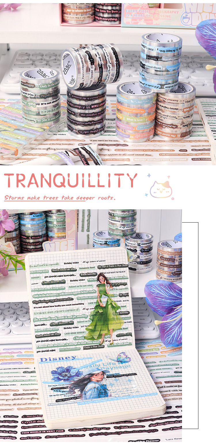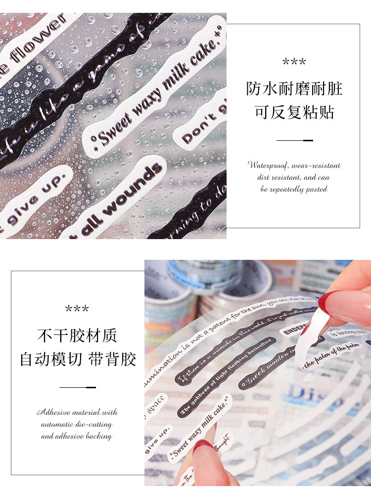 Pegatinas transparentes impermeables de cinta adhesiva pet cubierta caja diy diario pegatinas retro transfronterizas pegatinas inglesas