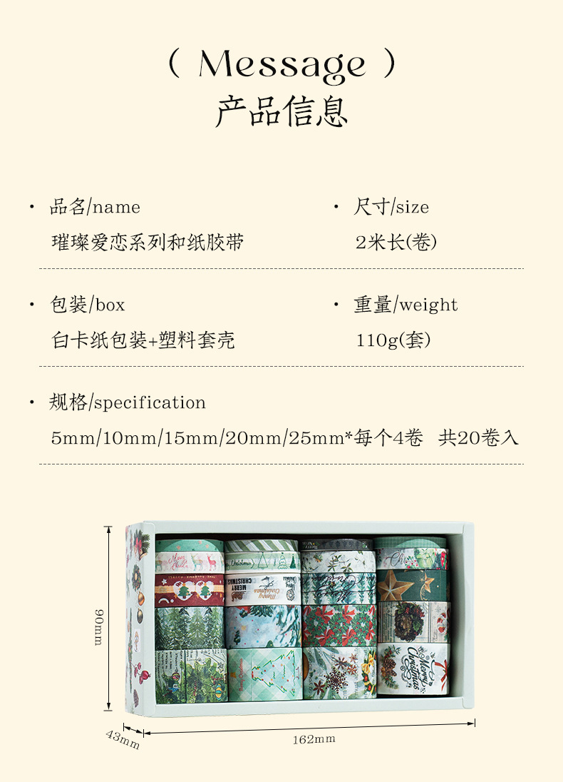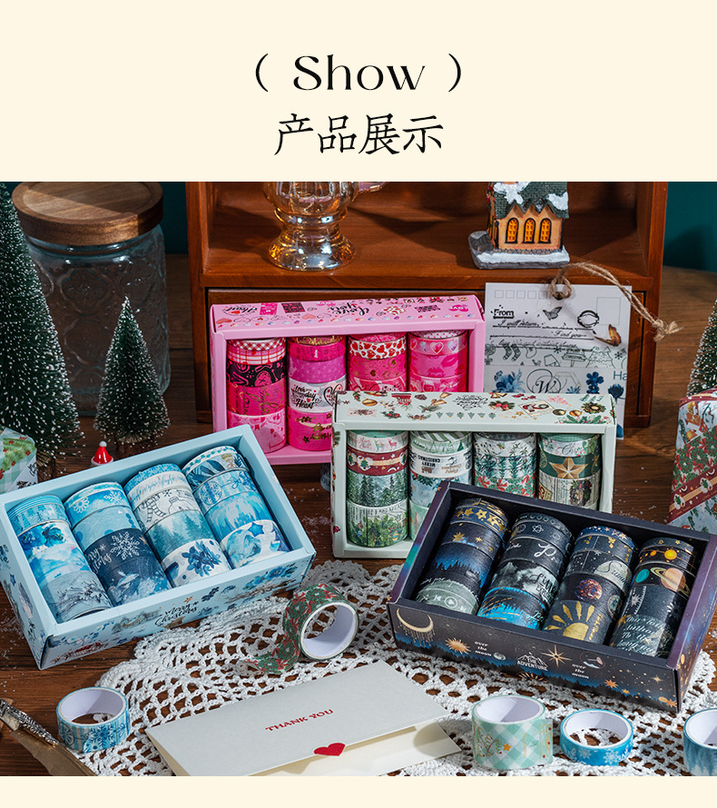 Caja transfronteriza y cinta adhesiva de papel Navidad Día de San Valentín Estrella cinta adhesiva de invierno cinta adhesiva DIY cinta adhesiva estampada
